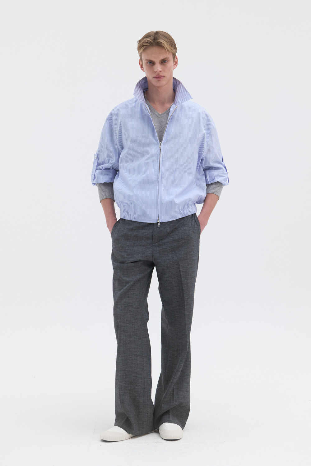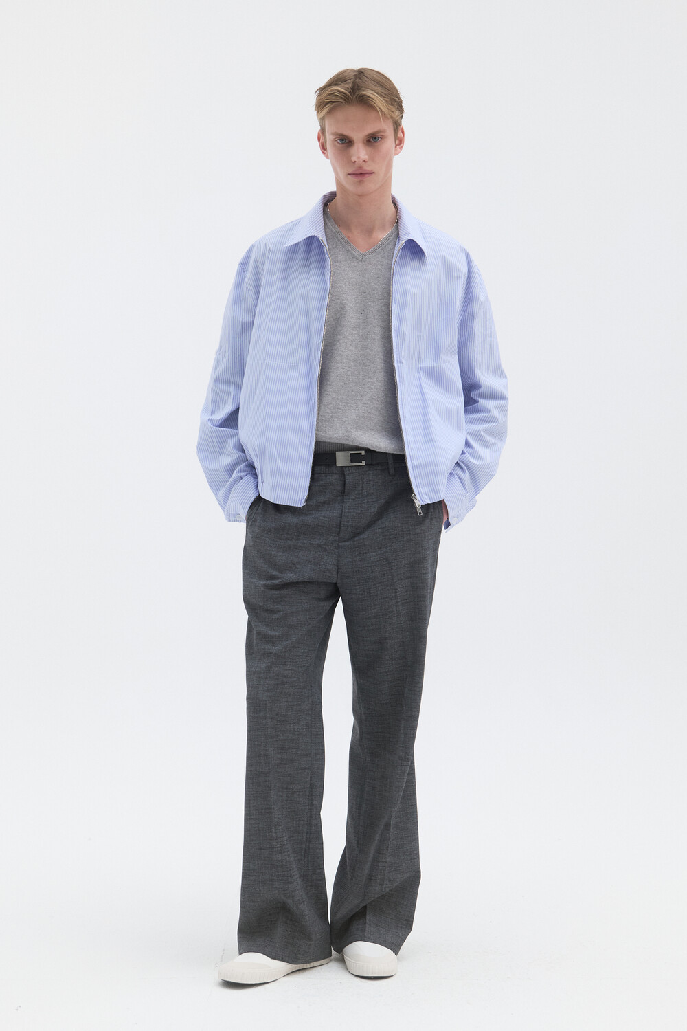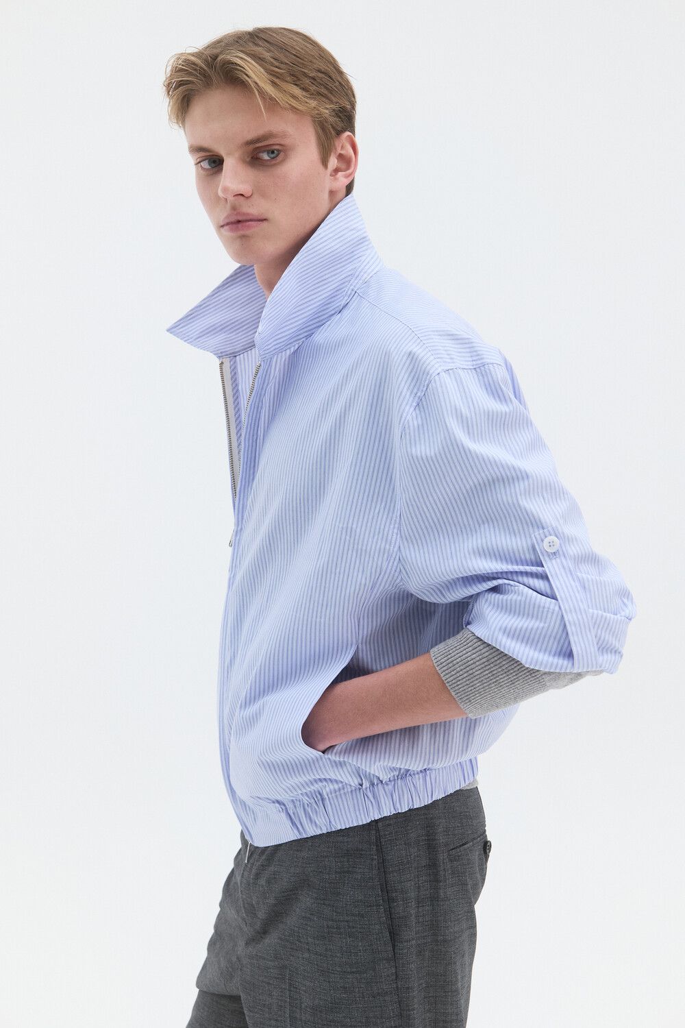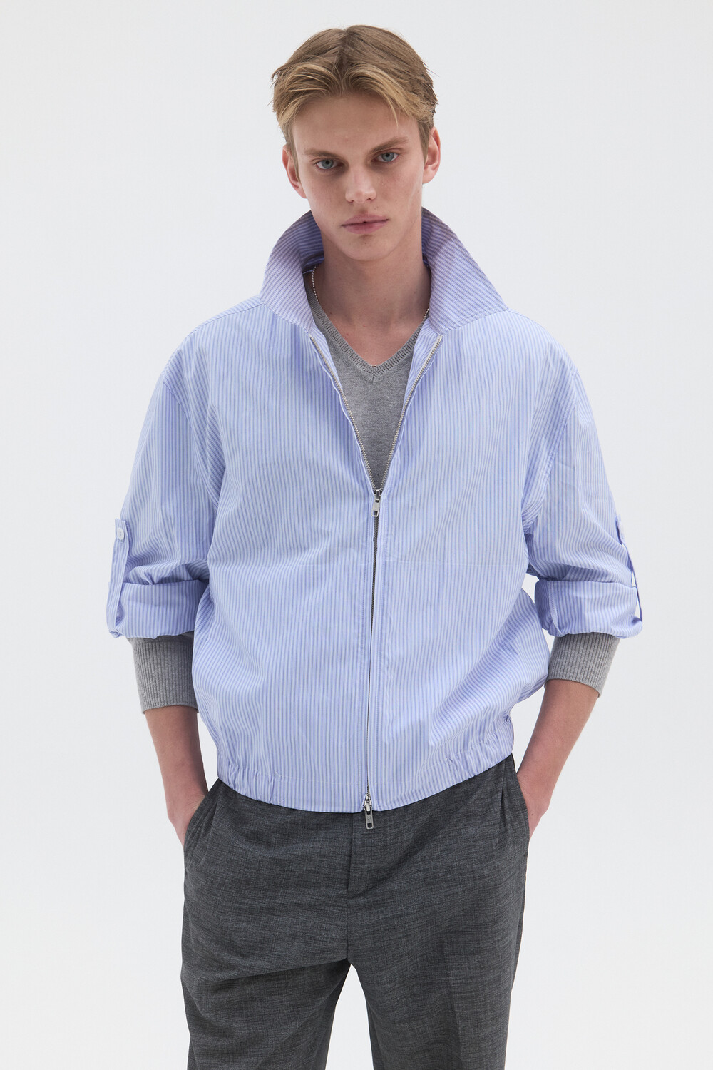 STRIPE SHIRT BLOUSON - LIGHT BLUE