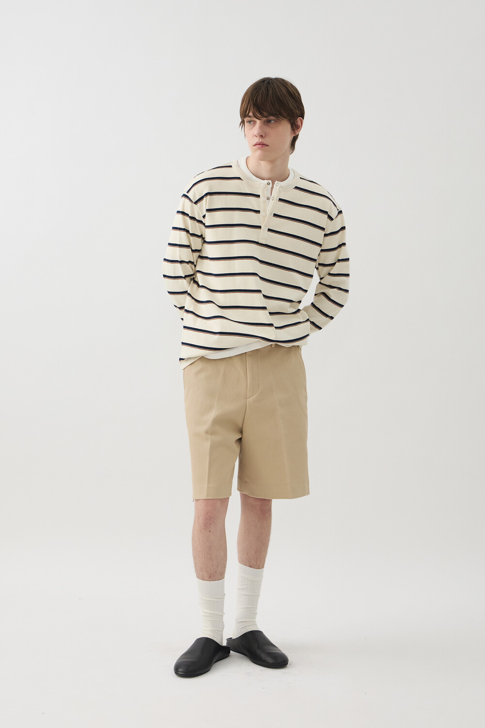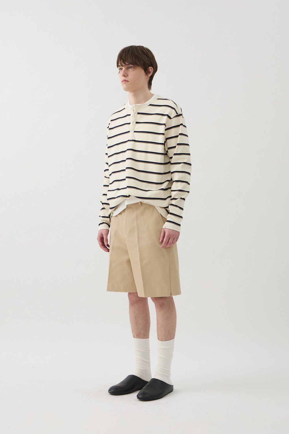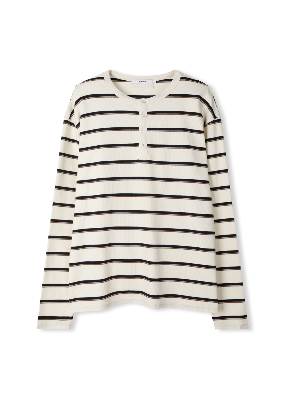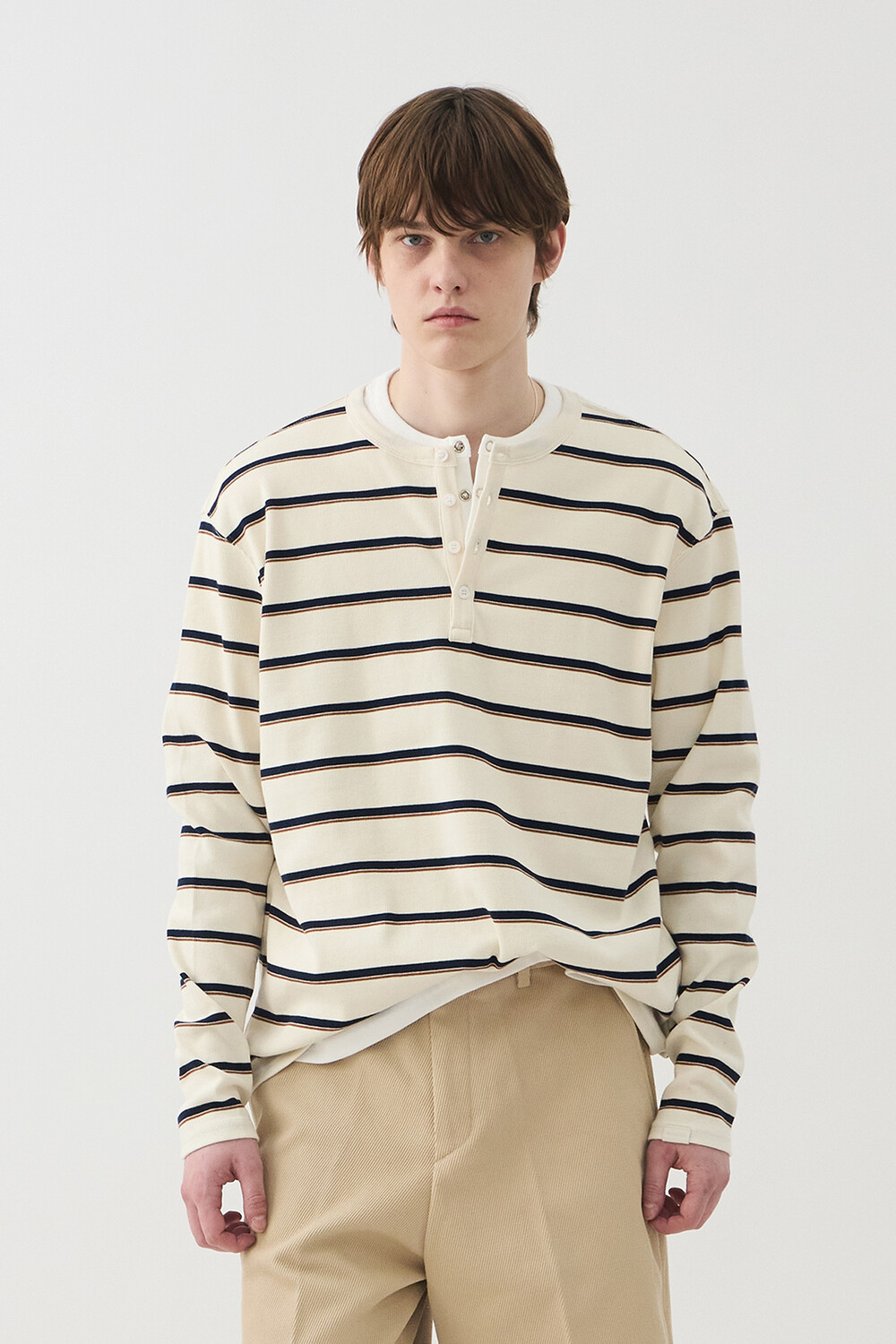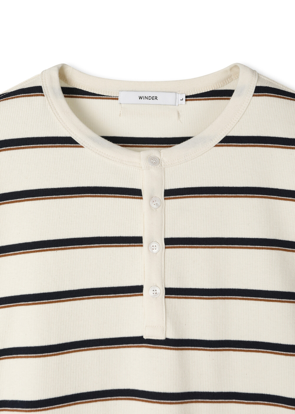 [RESTOCK] STRIPED COTTON HENLEY NECK TOP - NATURAL IVORY