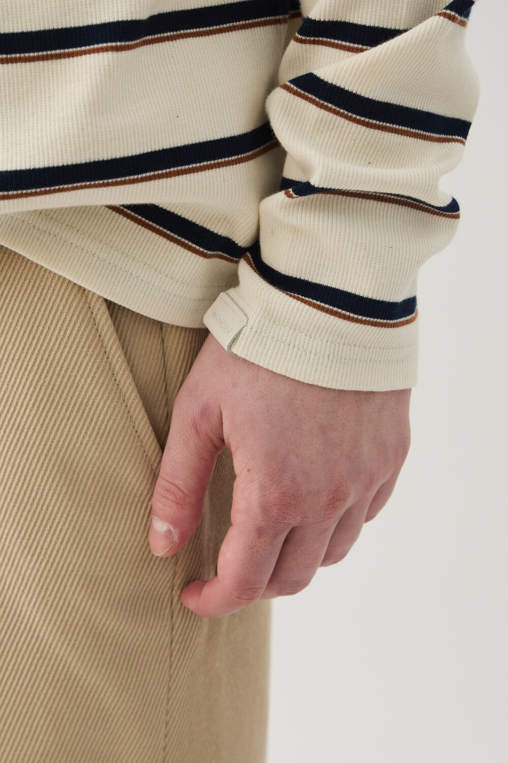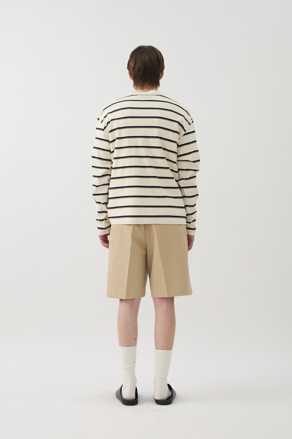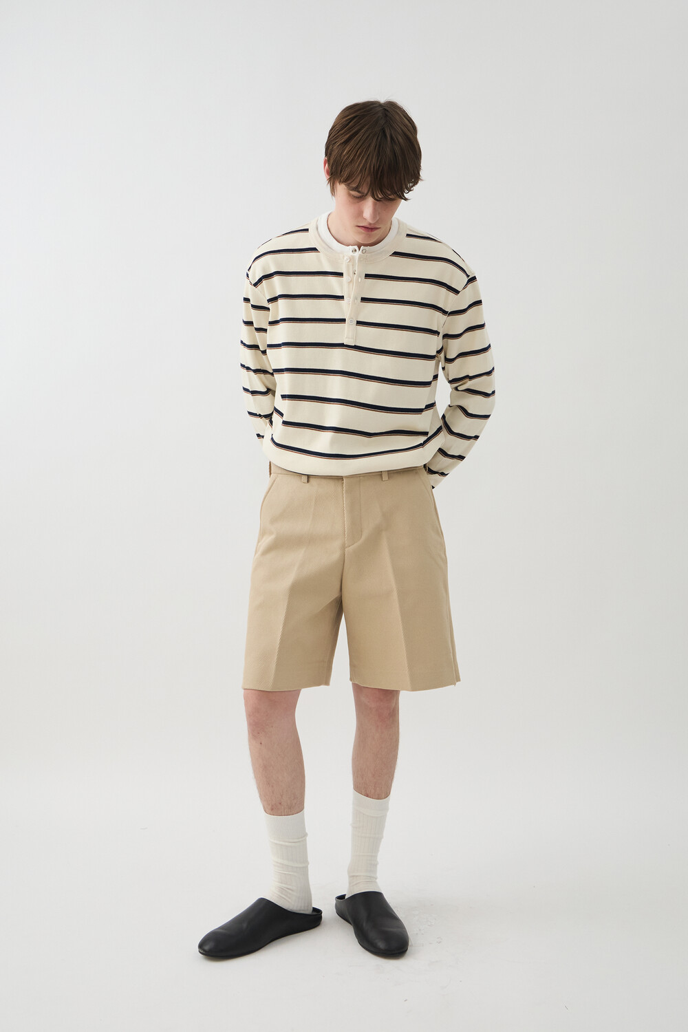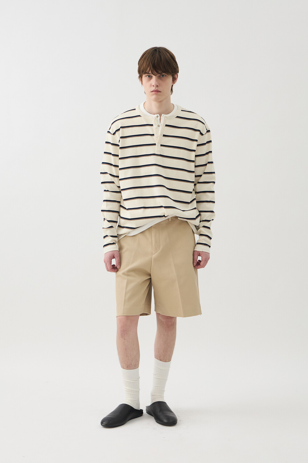 [RESTOCK] STRIPED COTTON HENLEY NECK TOP - NATURAL IVORY