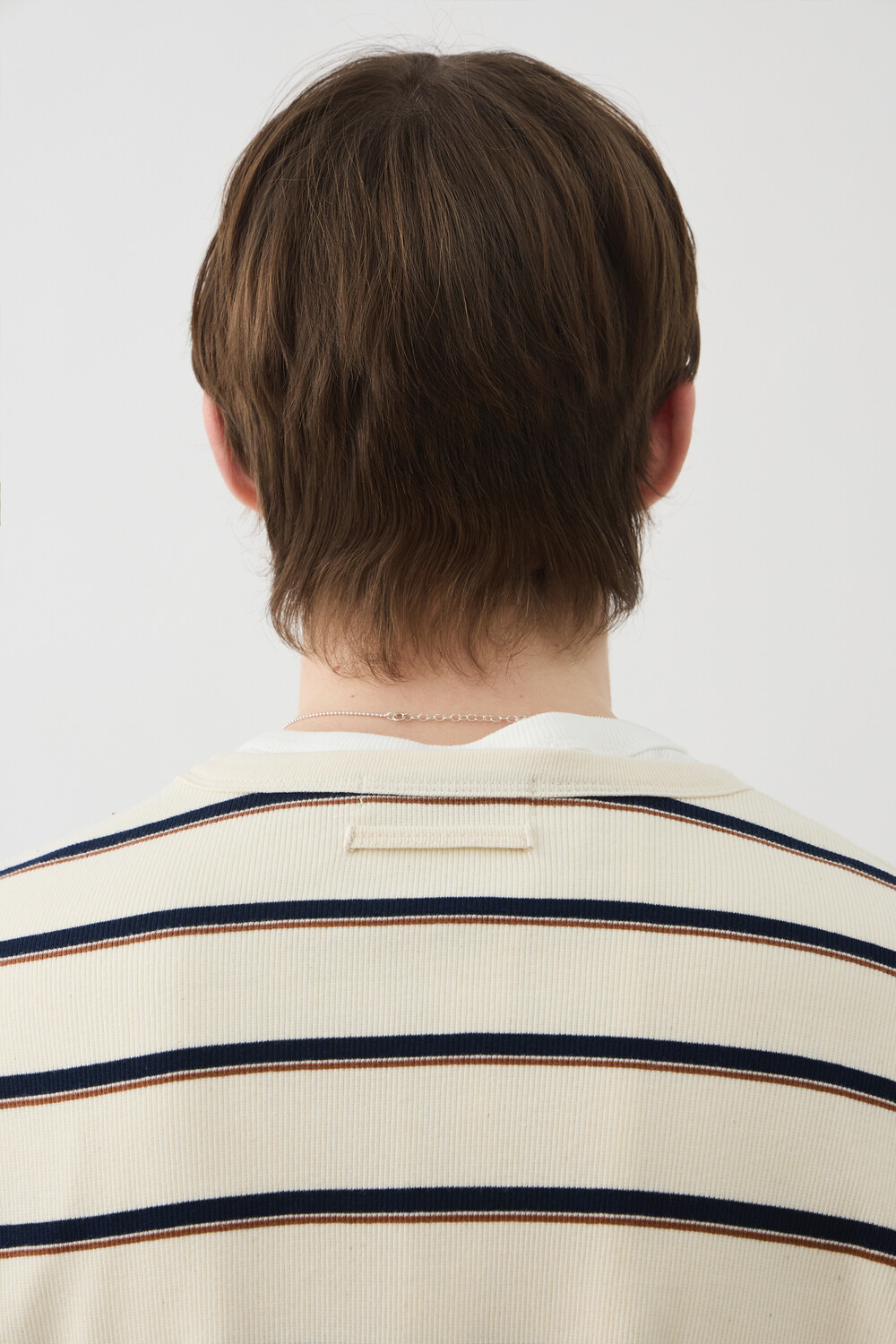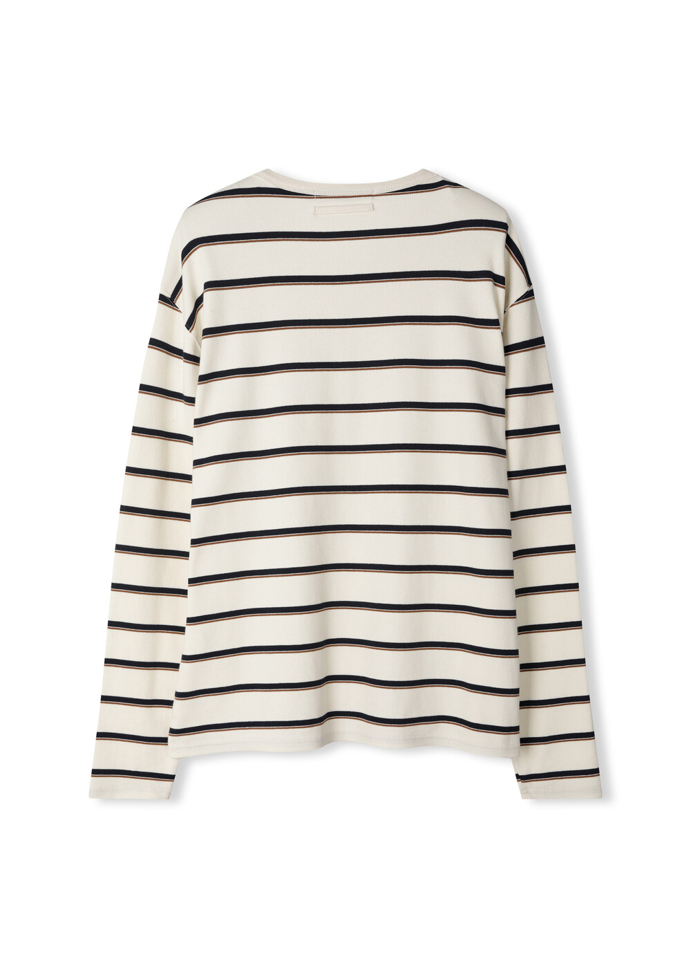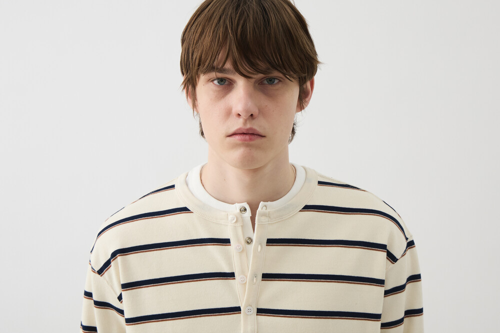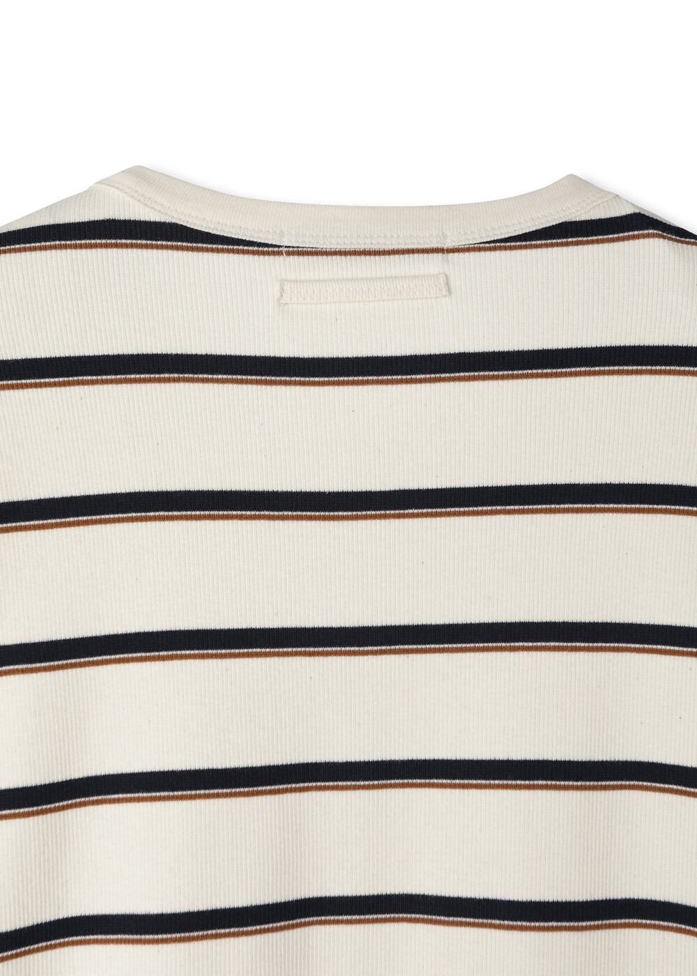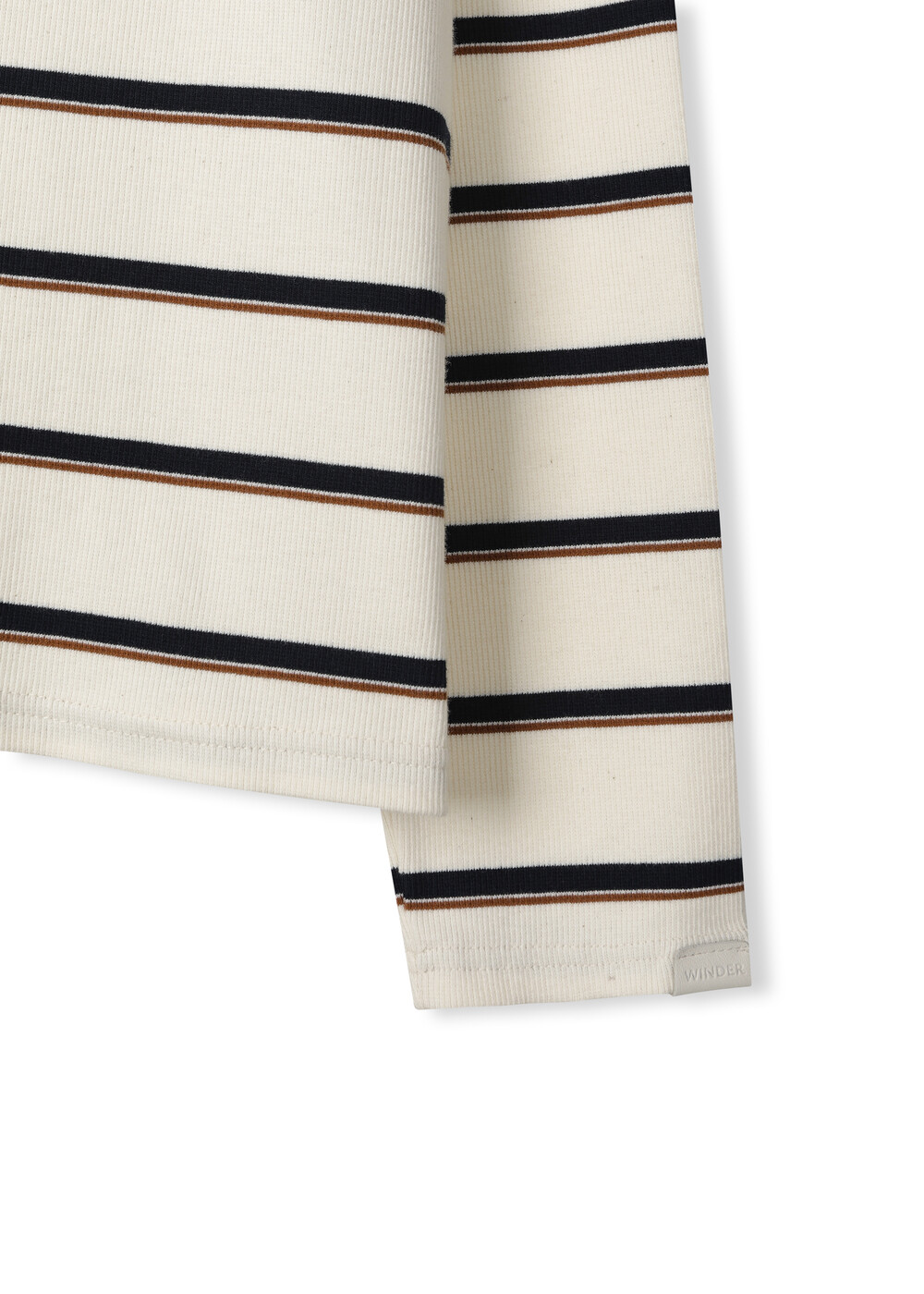 [RESTOCK] STRIPED COTTON HENLEY NECK TOP - NATURAL IVORY