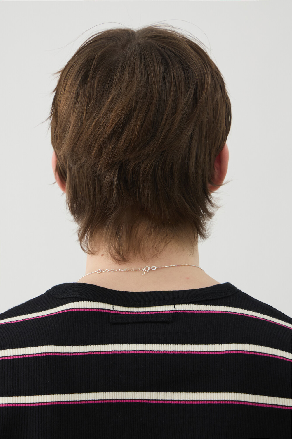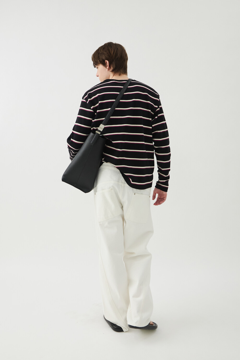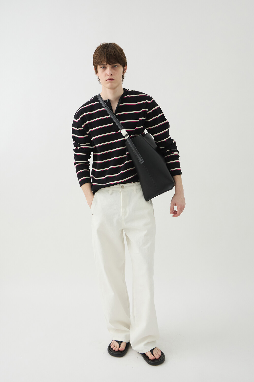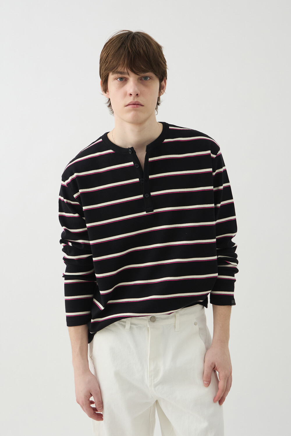 [RESTOCK] STRIPED COTTON HENLEY NECK TOP - BLACK