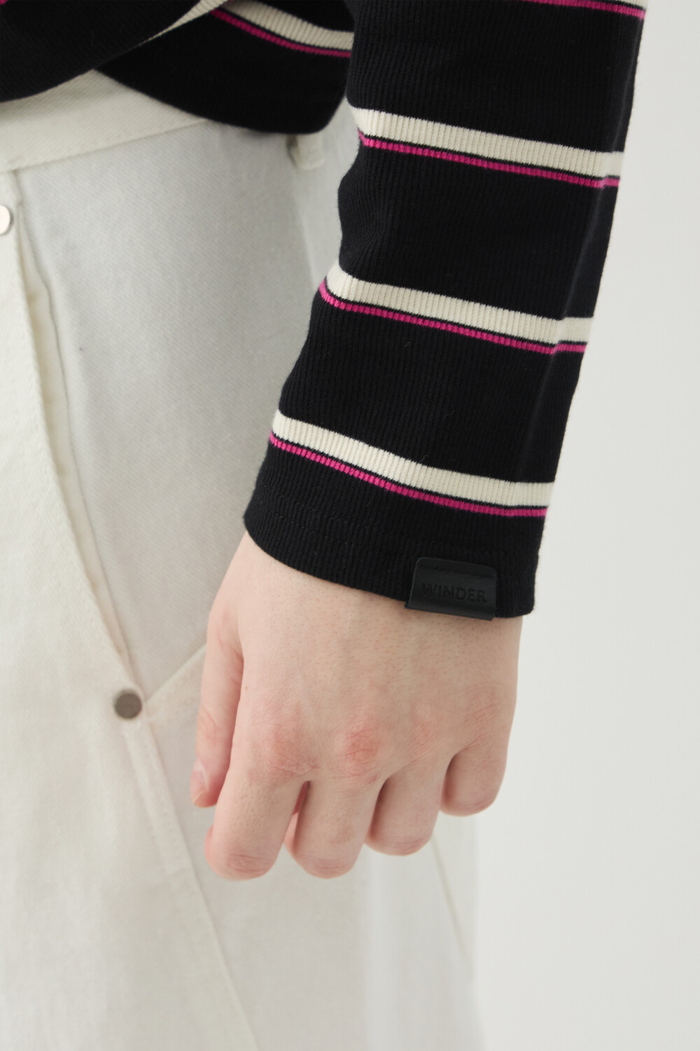 -안정감 있는 스트라이프 소재로 제작된 클래식 헨리넥 져지 탑