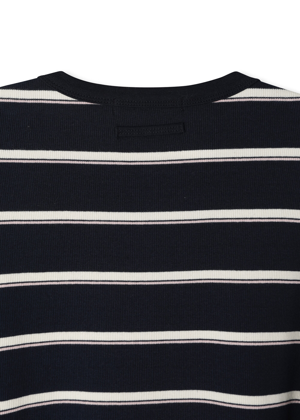 STRIPED COTTON HENLEY NECK TOP - NAVY