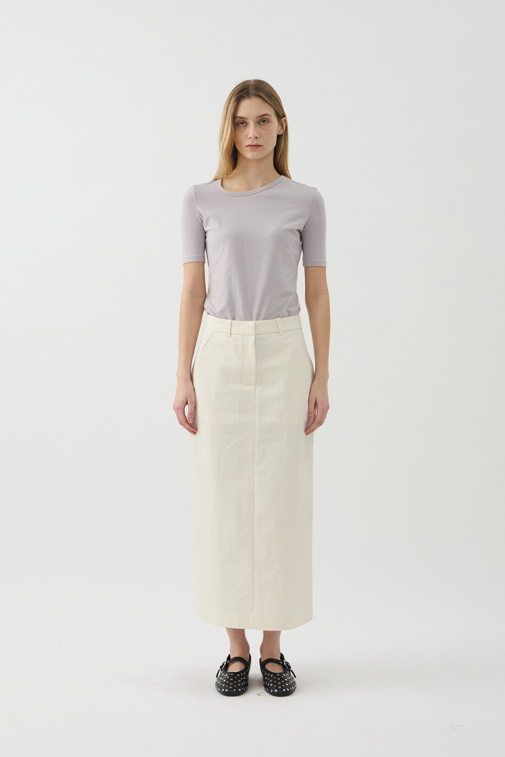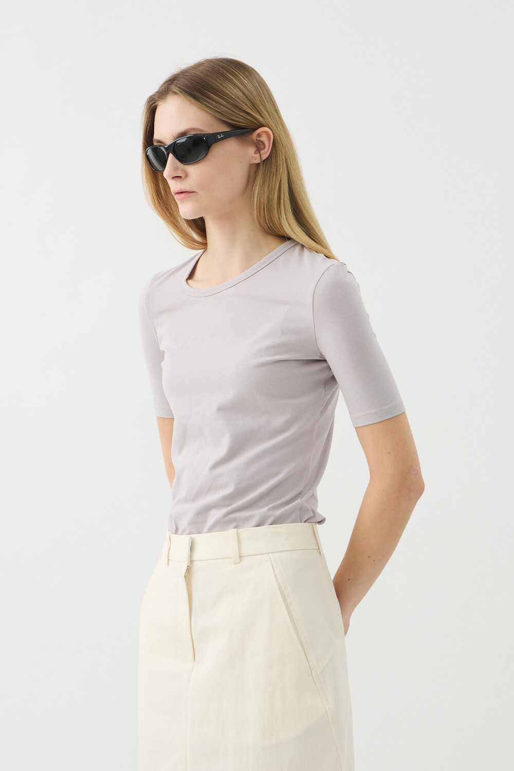 UNBALANCED NECK FITTED SHORT TOP - LIGHT GREY (W)