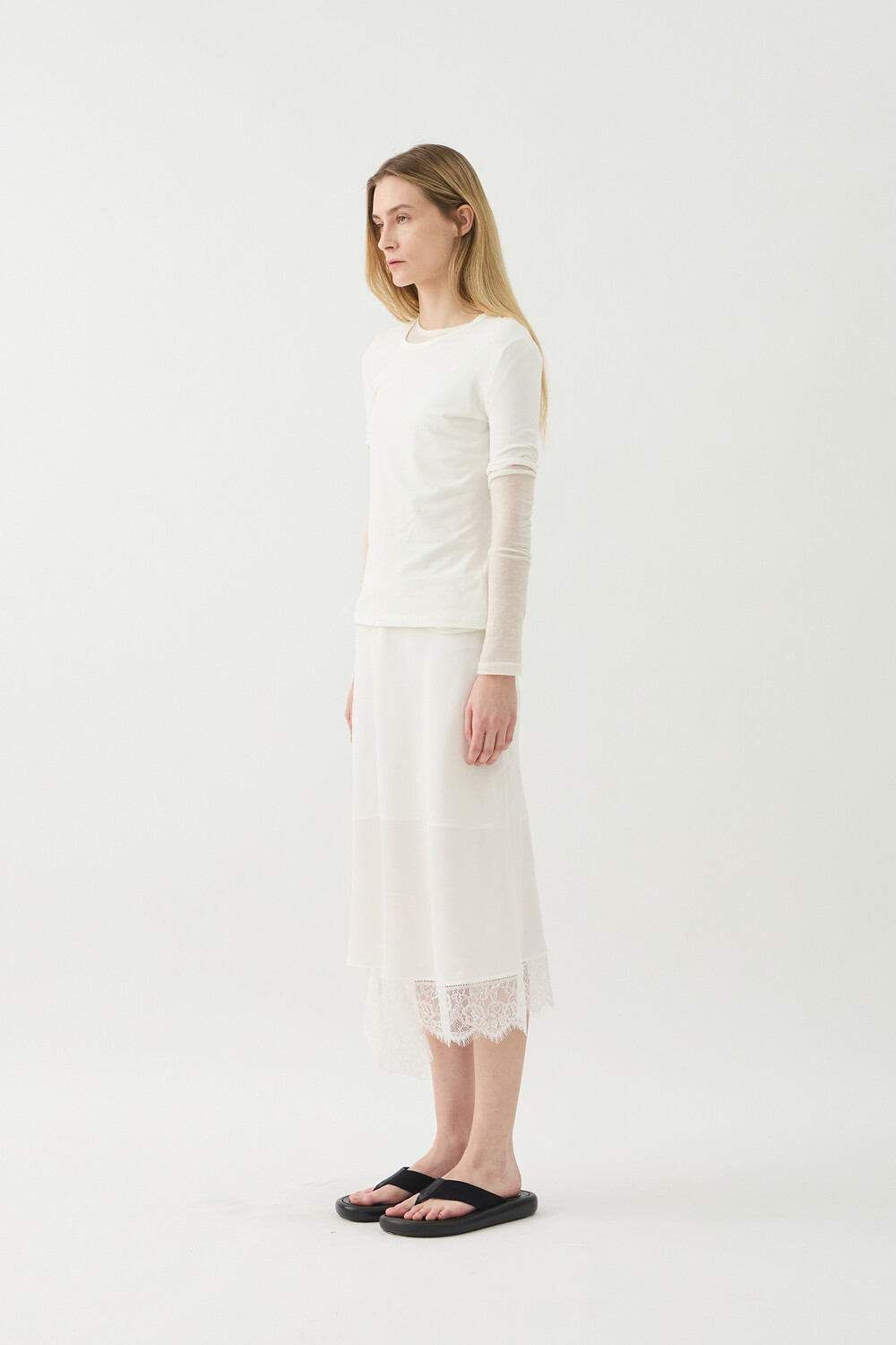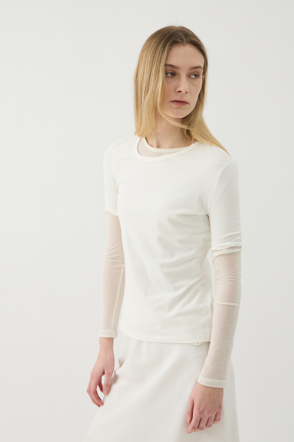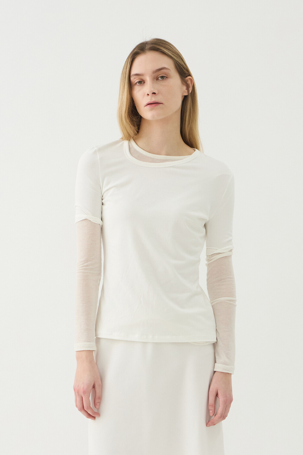 UNBALANCED NECK FITTED SHORT TOP - OFF WHITE (W)