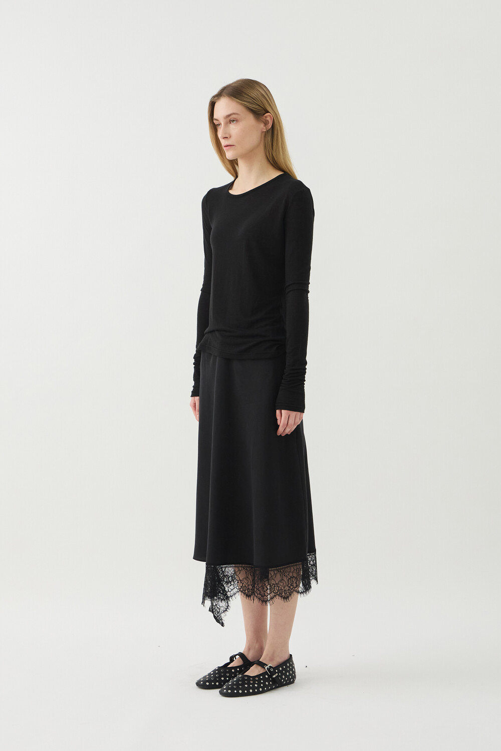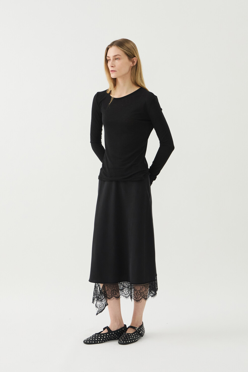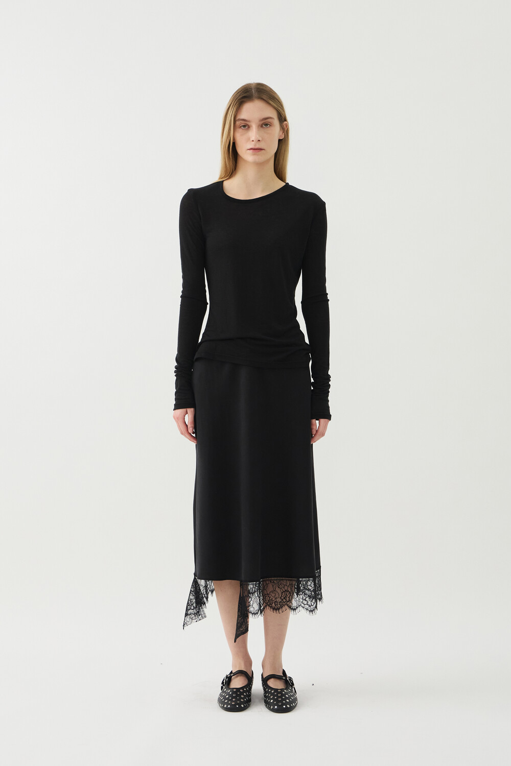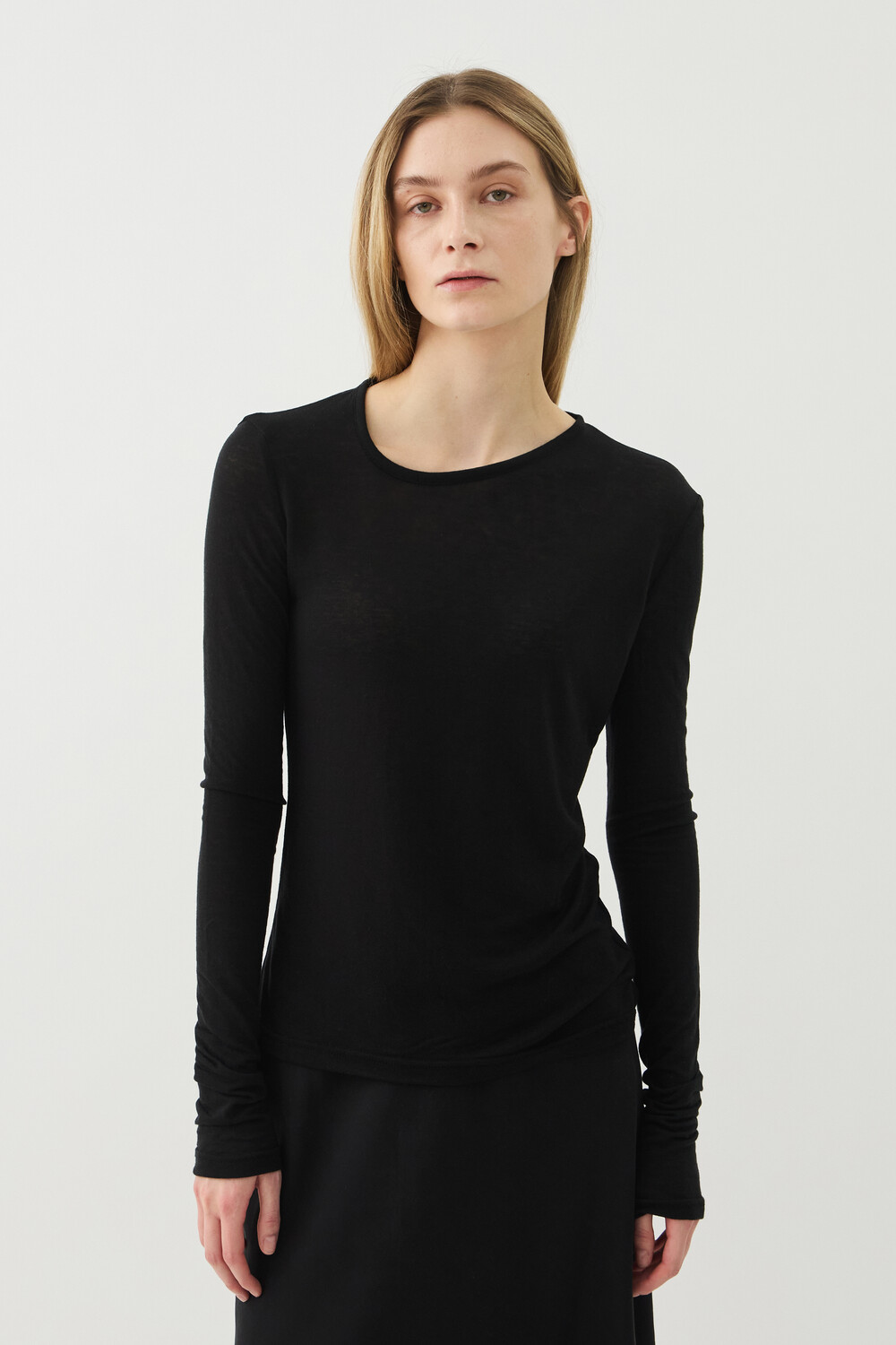 UNBALANCED NECK SHEER TOP - BLACK (W)