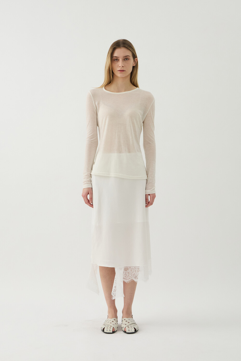 UNBALANCED NECK SHEER TOP - IVORY (W)