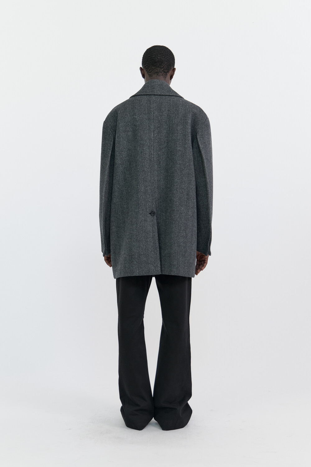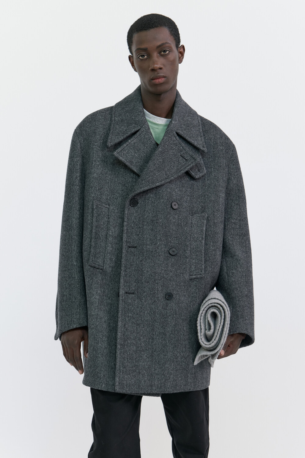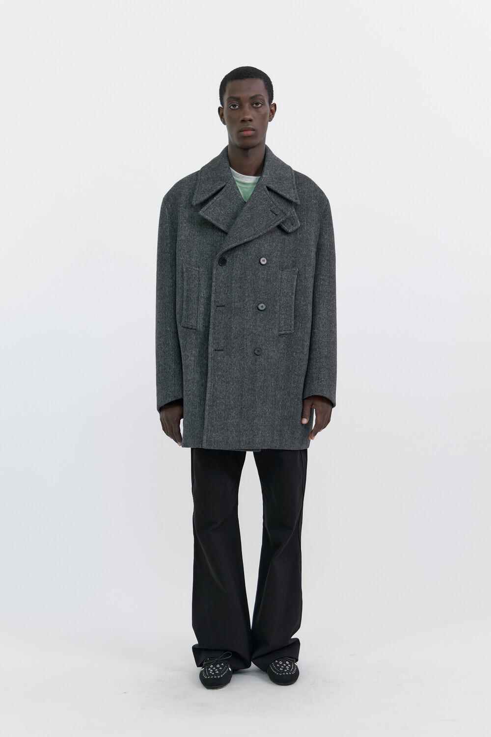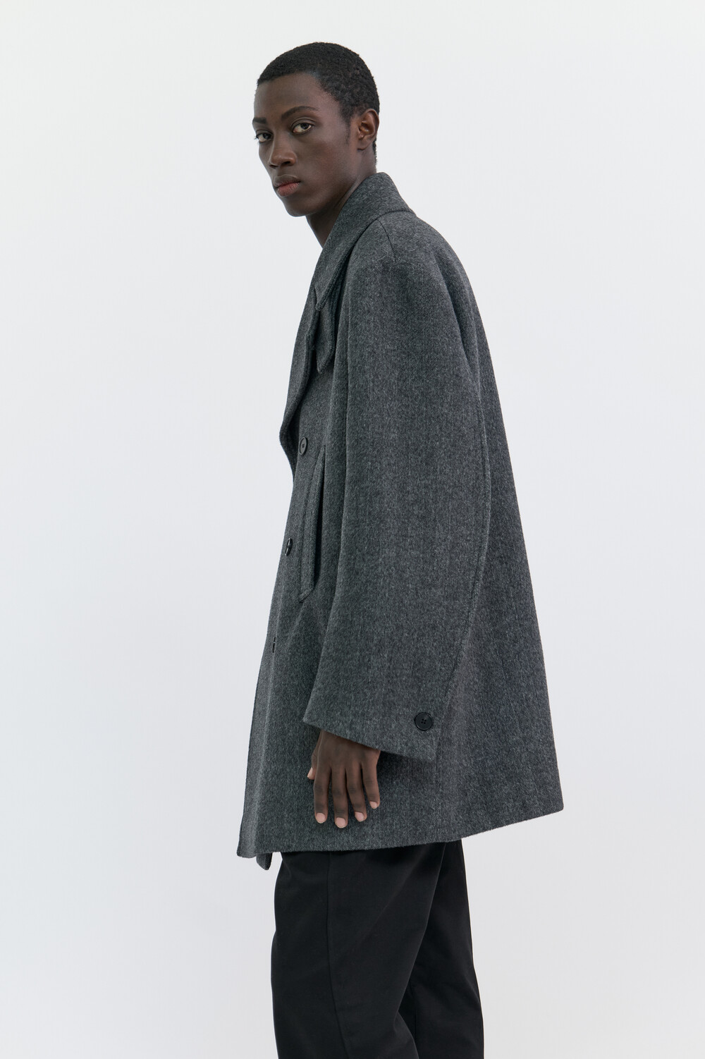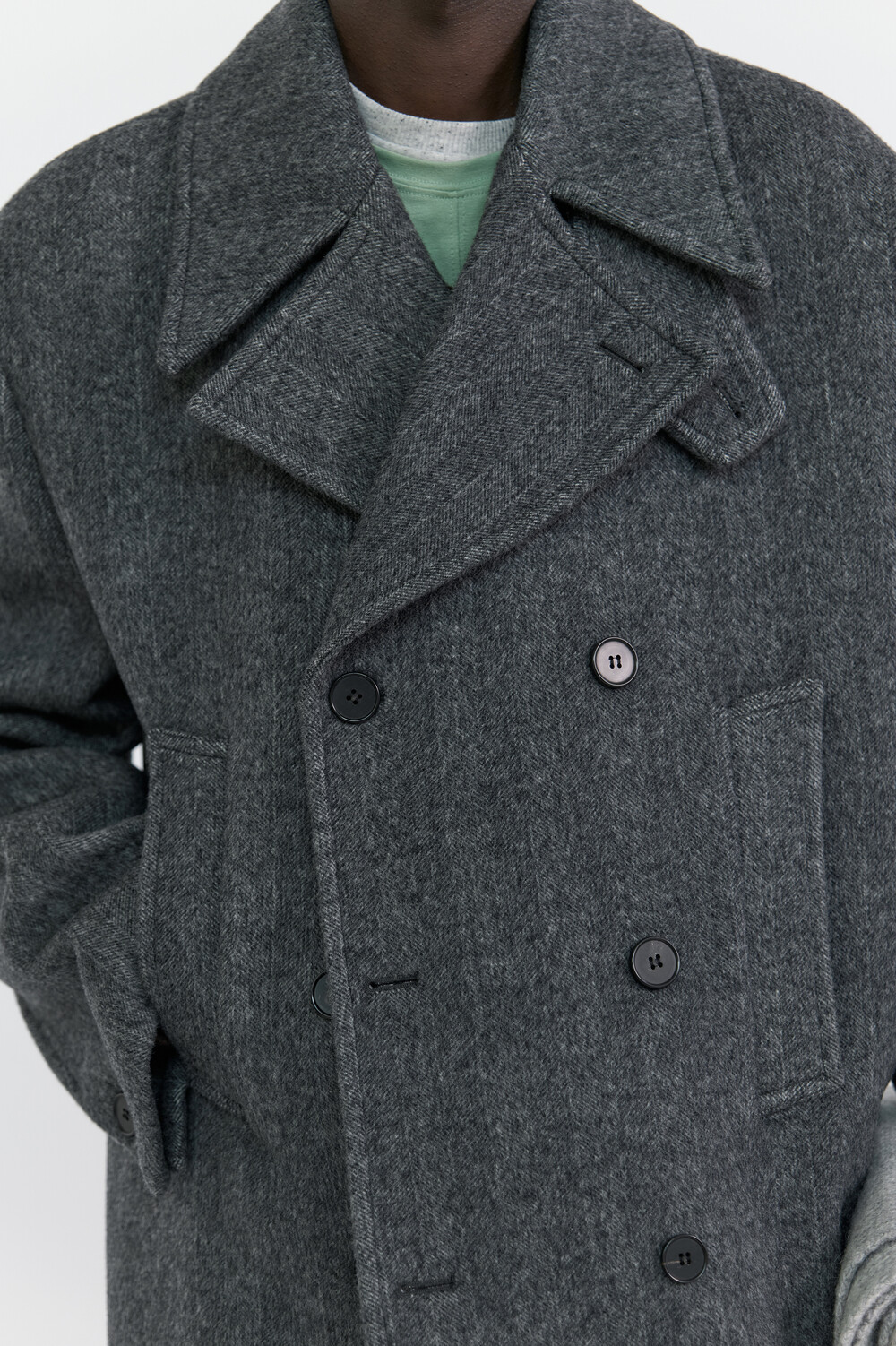 BONDED WOOL PEACOAT - HARRINGBONE GREY