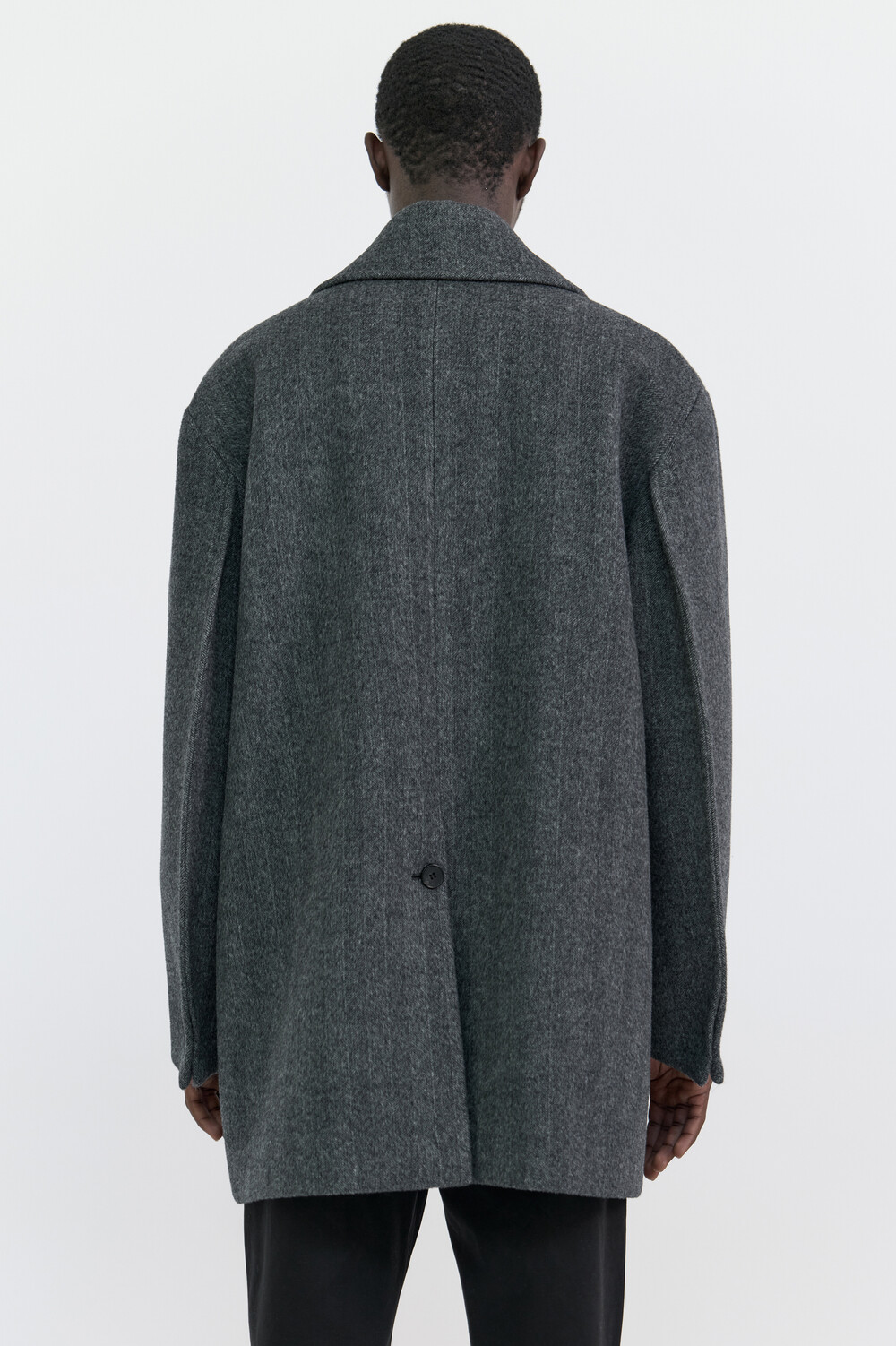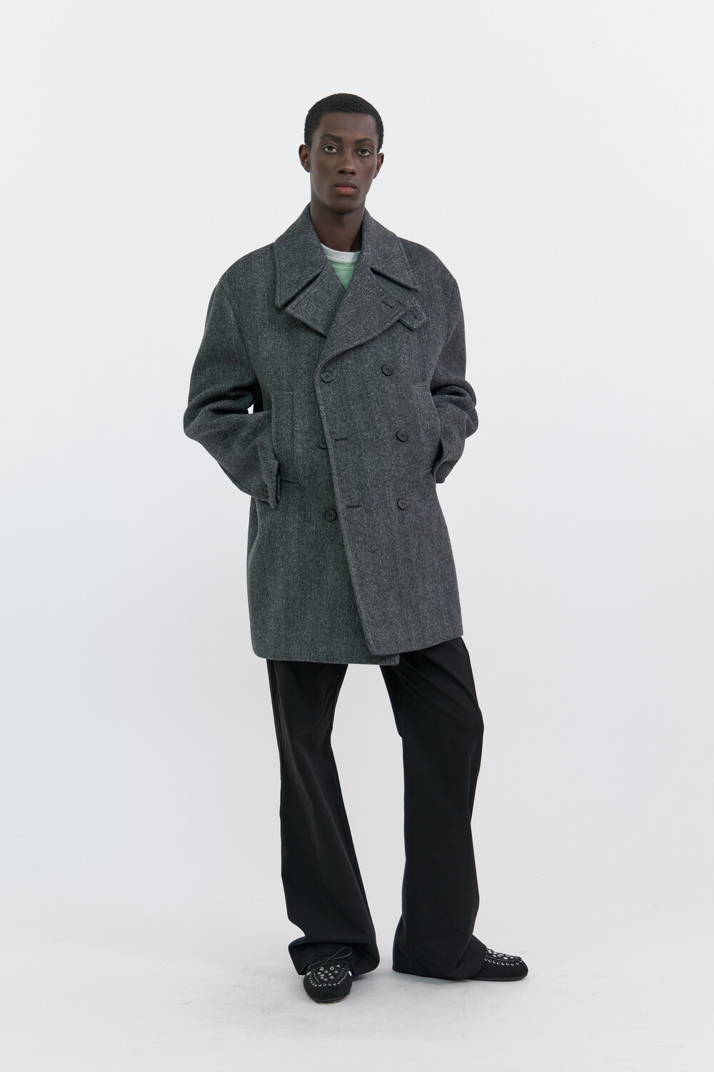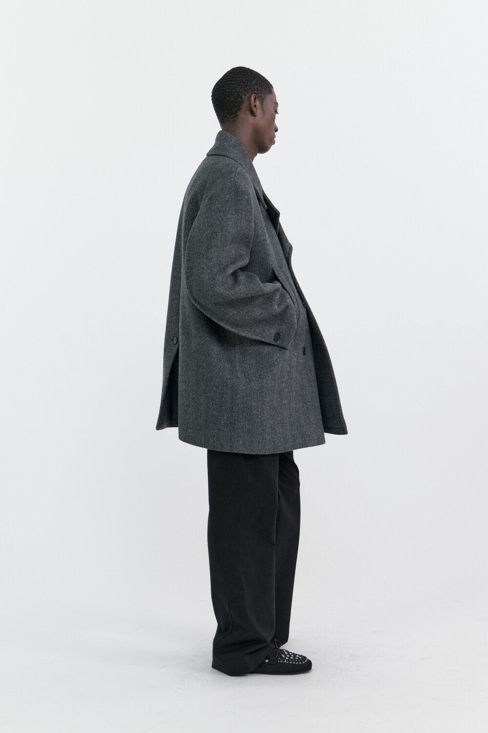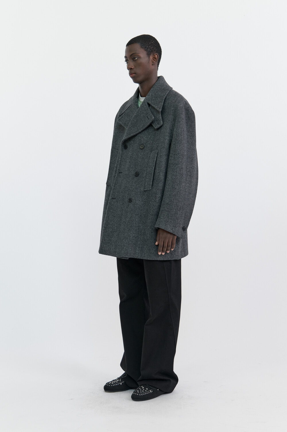 BONDED WOOL PEACOAT - HARRINGBONE GREY