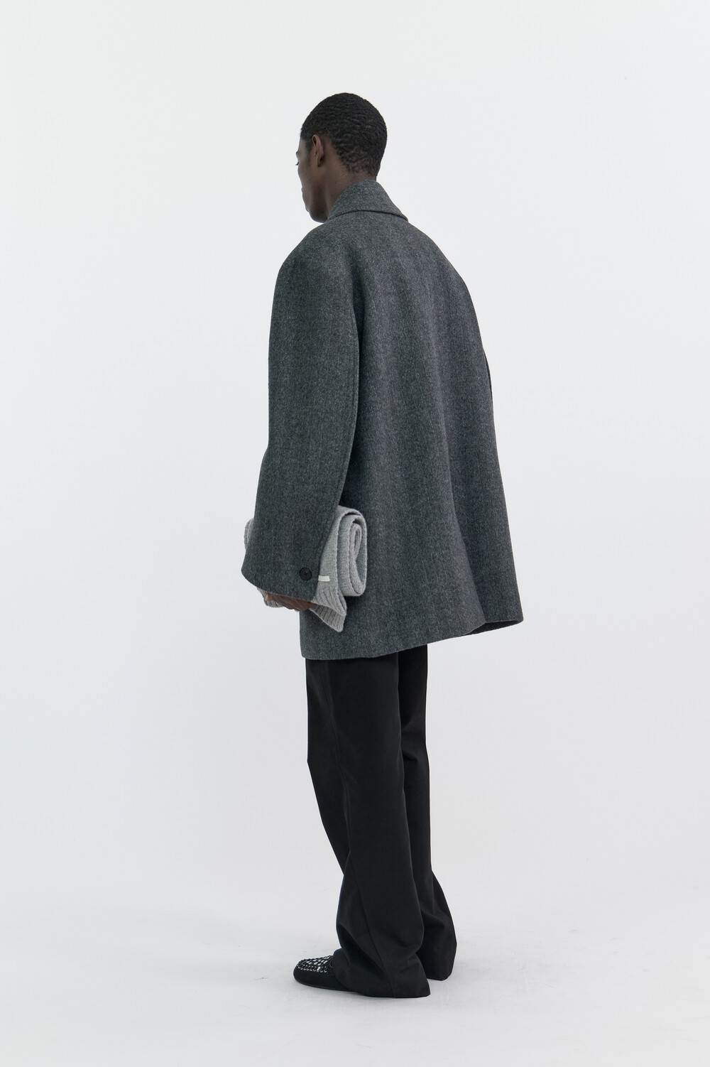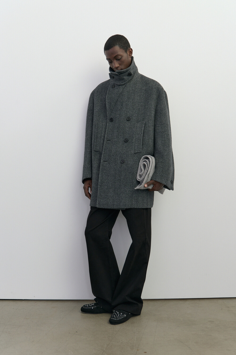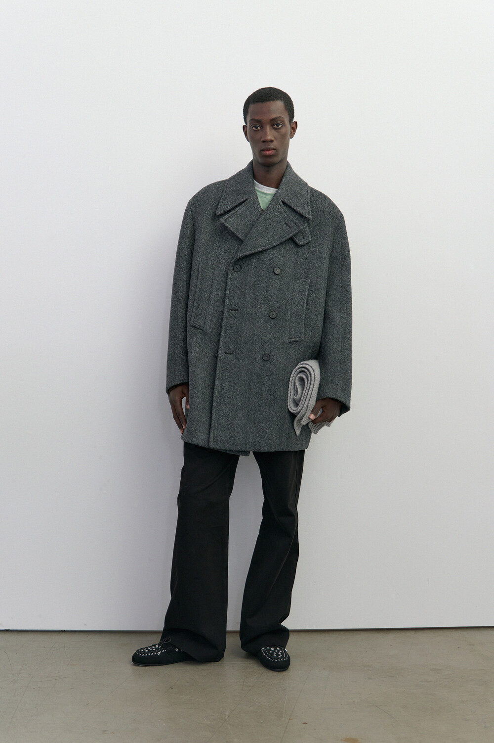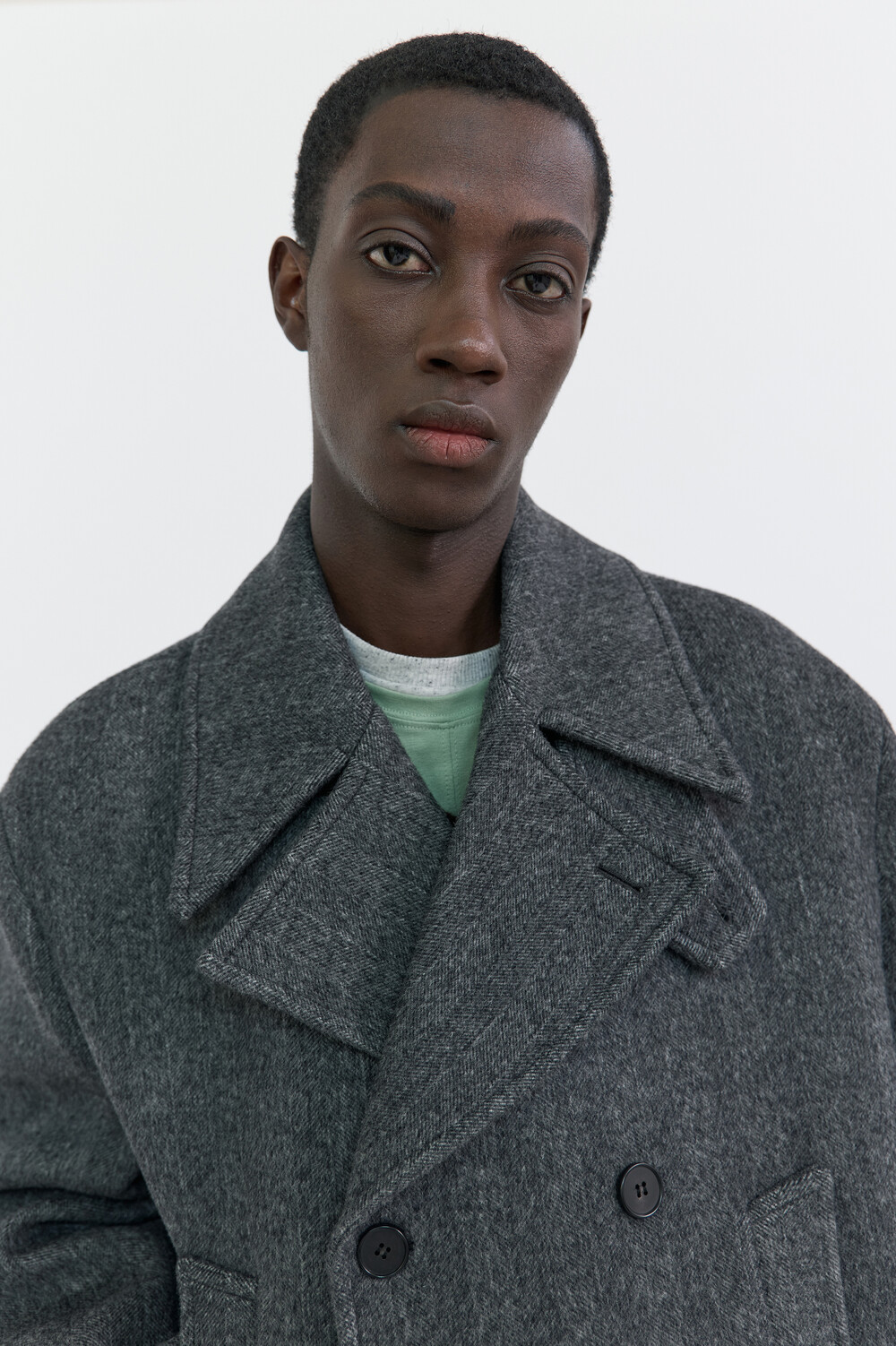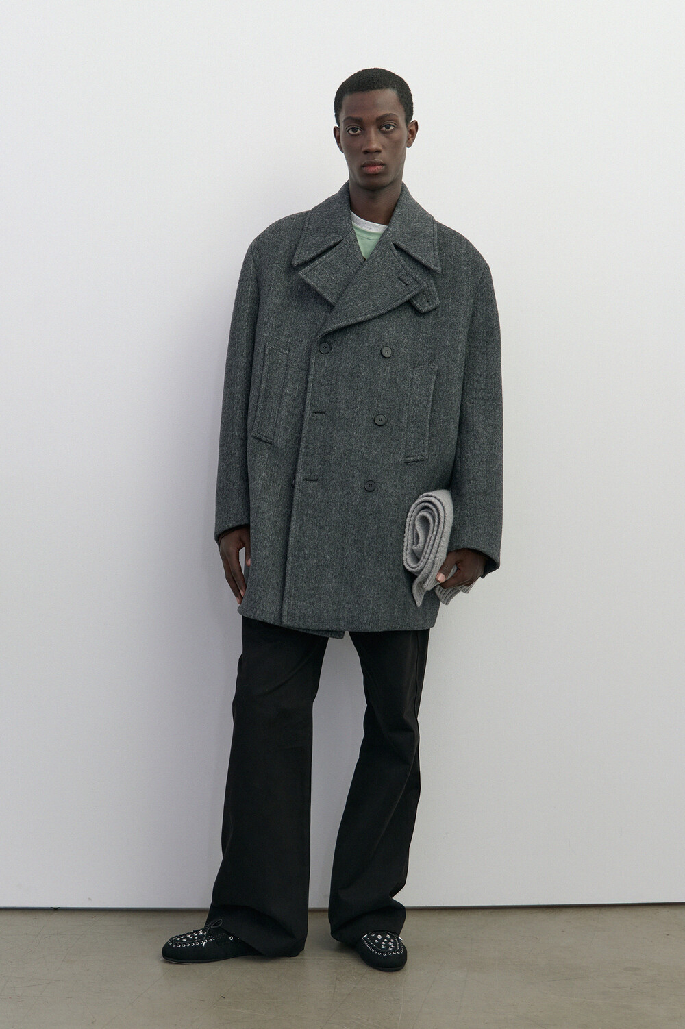BONDED WOOL PEACOAT - HARRINGBONE GREY