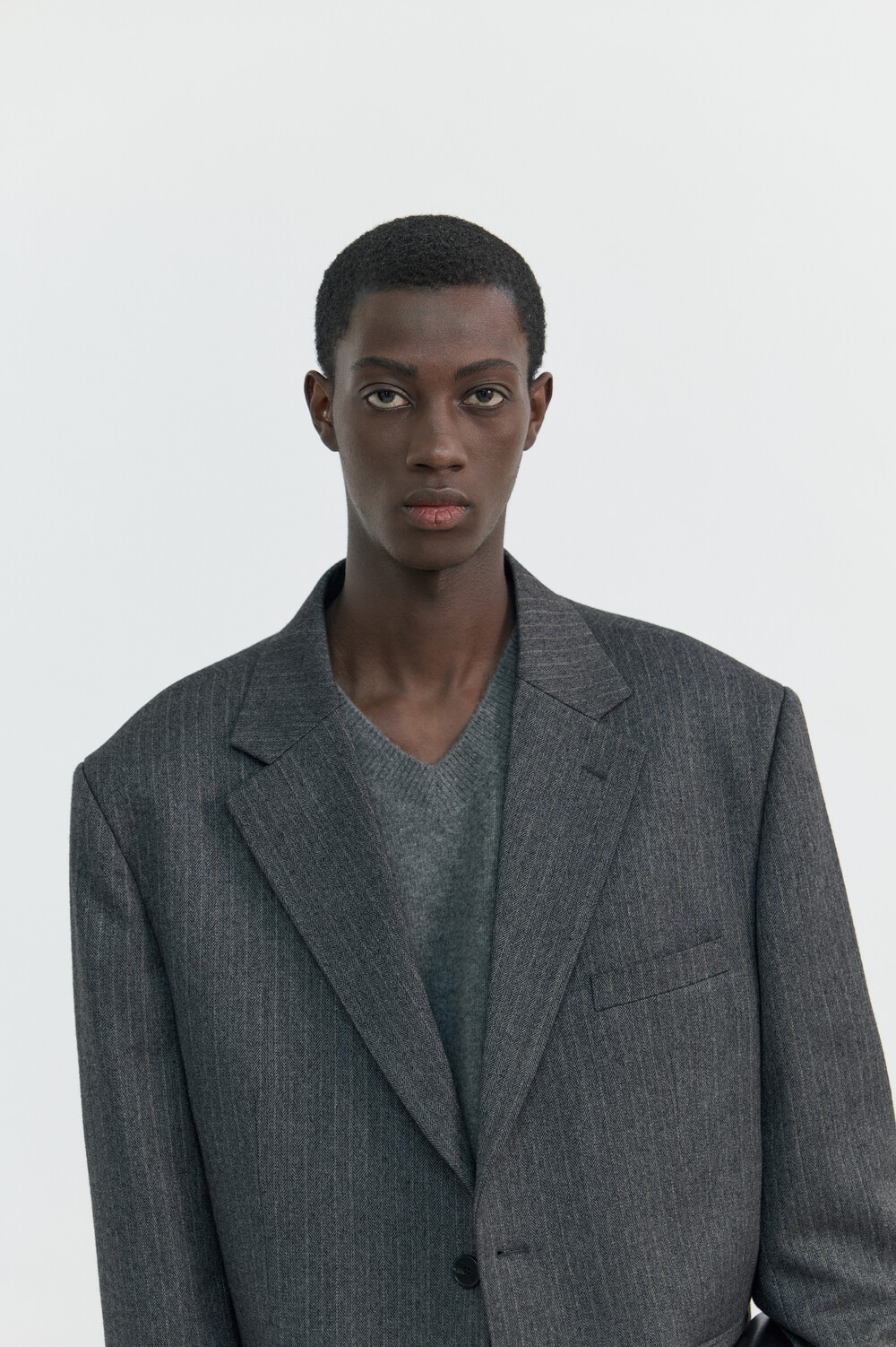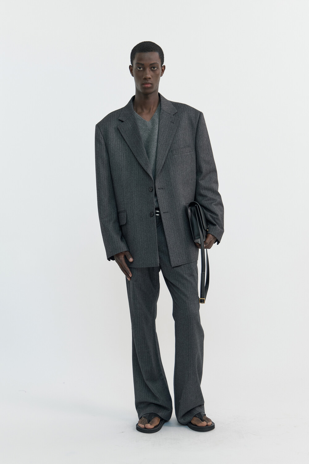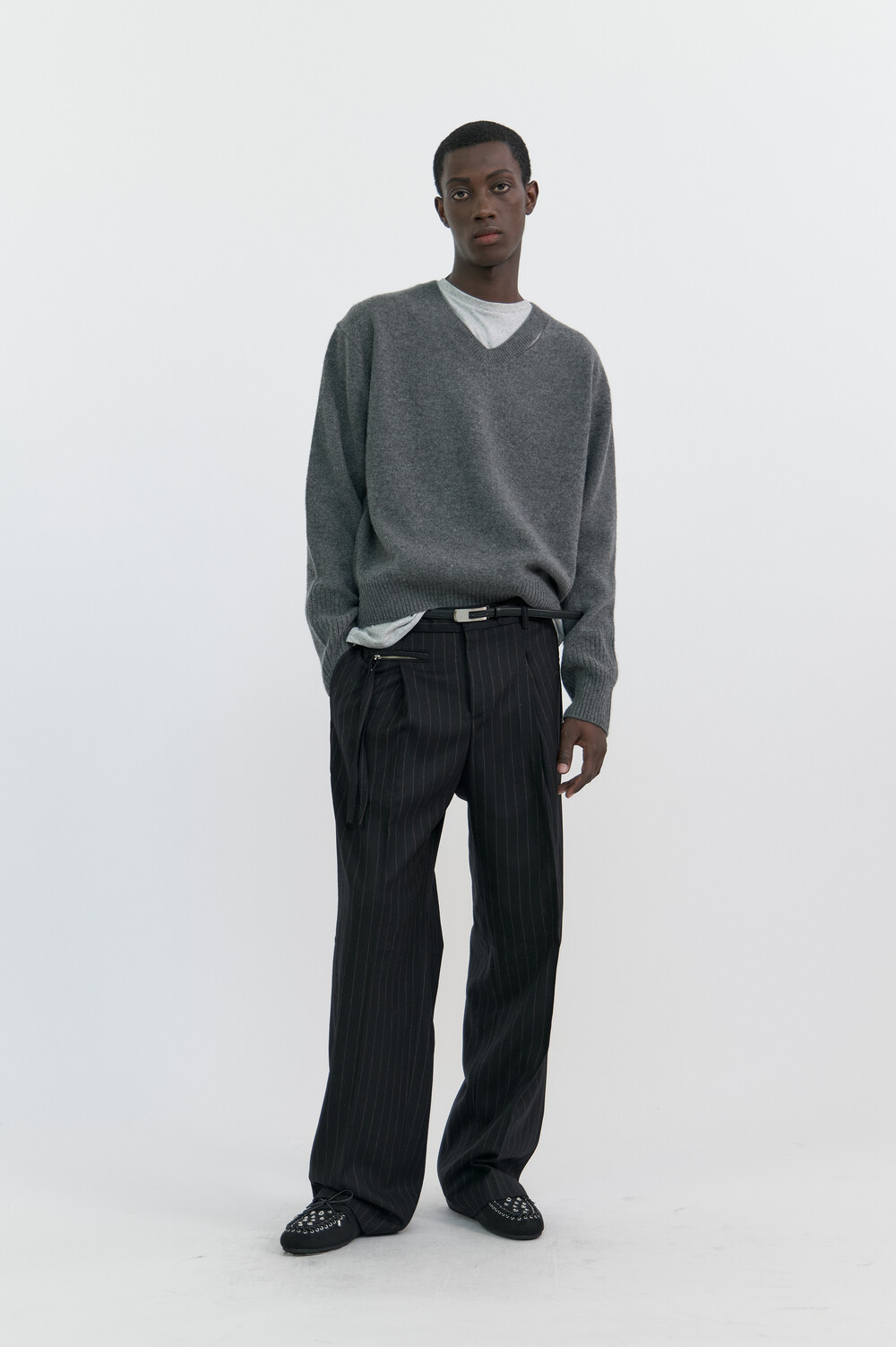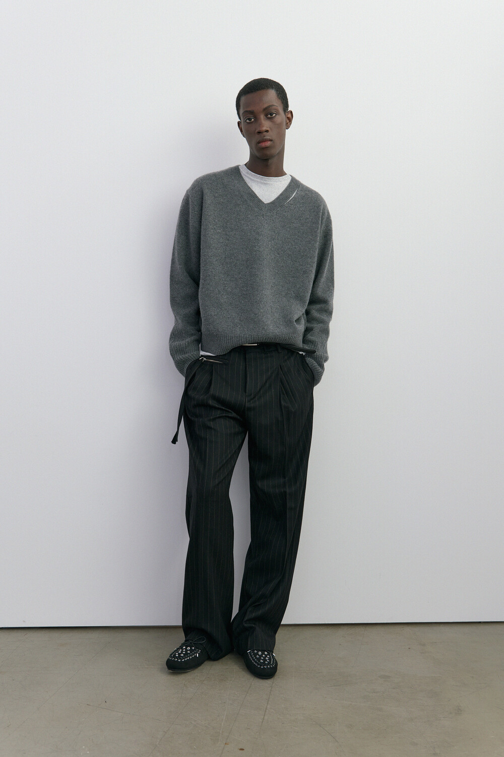SLIT MERINO WOOL V-NECK SWEATER - MELANGE GREY