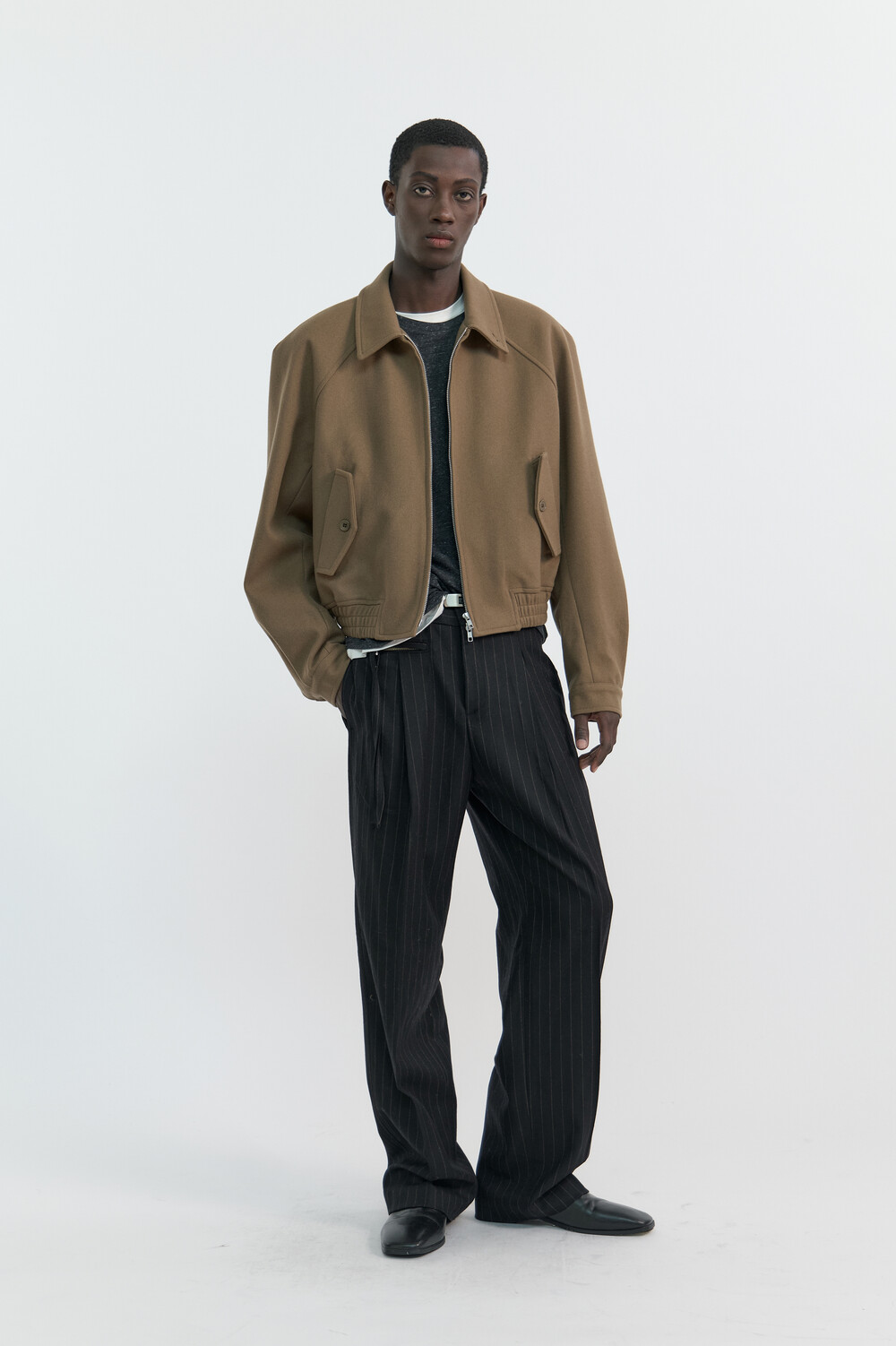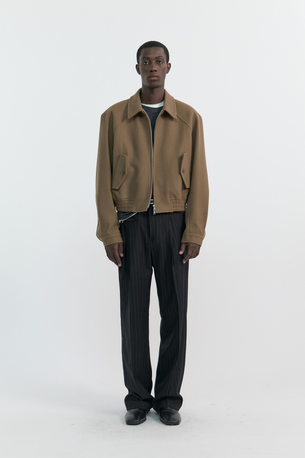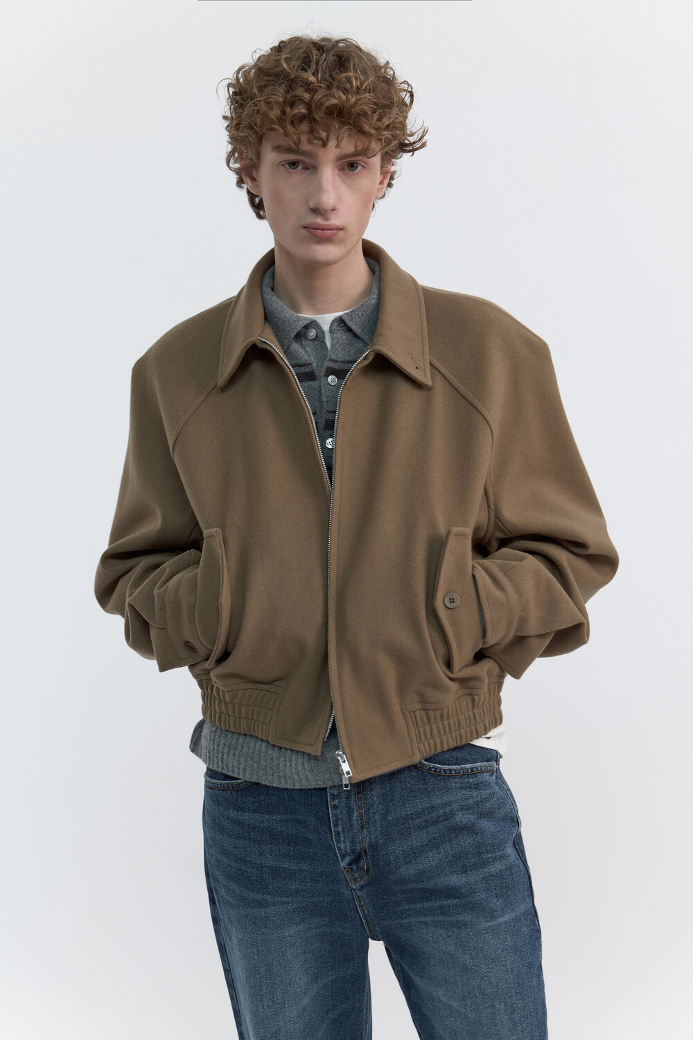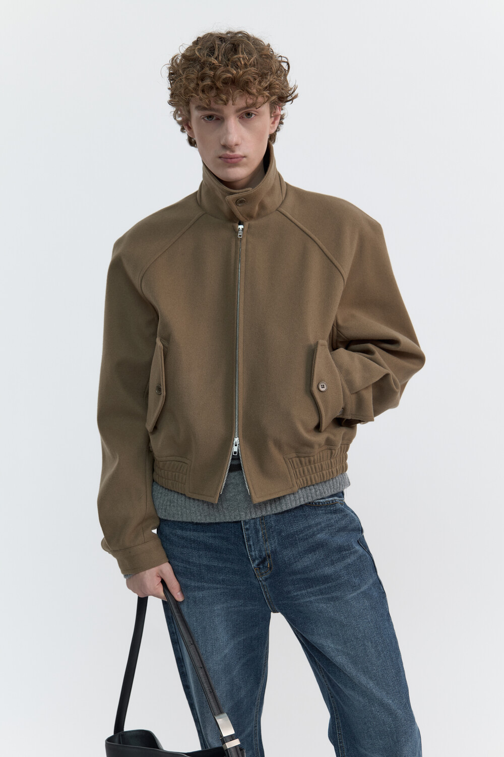 RAGLAN WOOL CROP BLOUSON - TAN BROWN