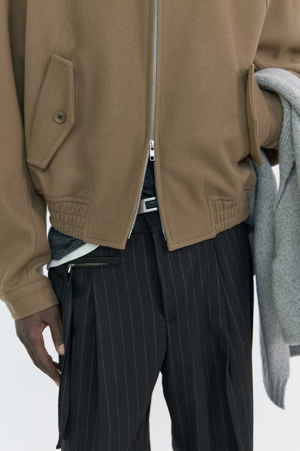 - 코트의 뒤트임과 주머니에 가봉 처리된 실을 제거하거한 경우