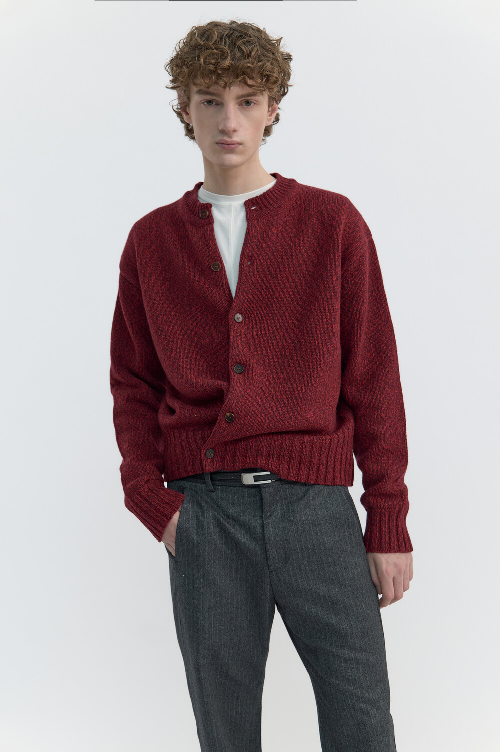 MIX YARN WOOL CARDIGAN - MELANGE RED