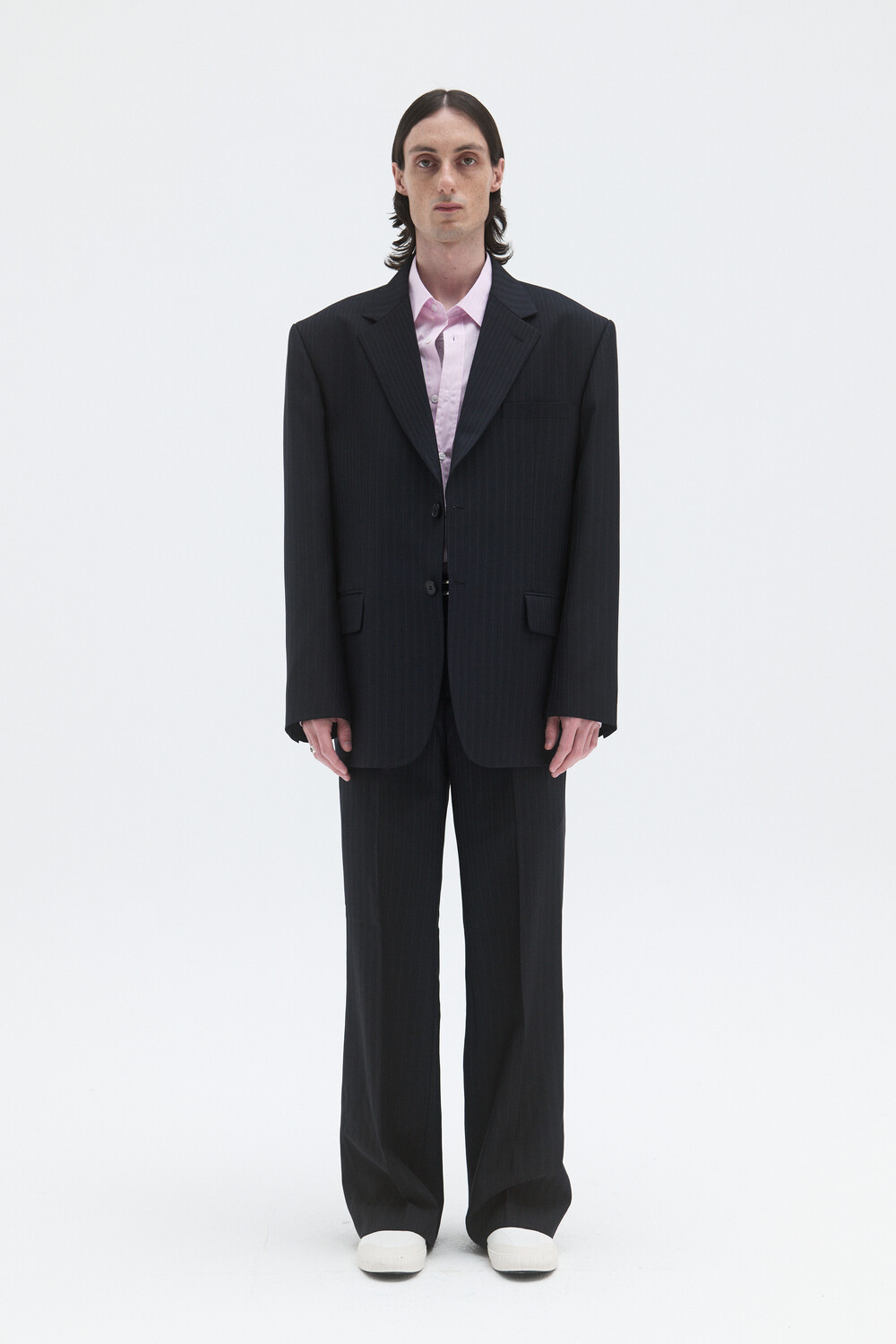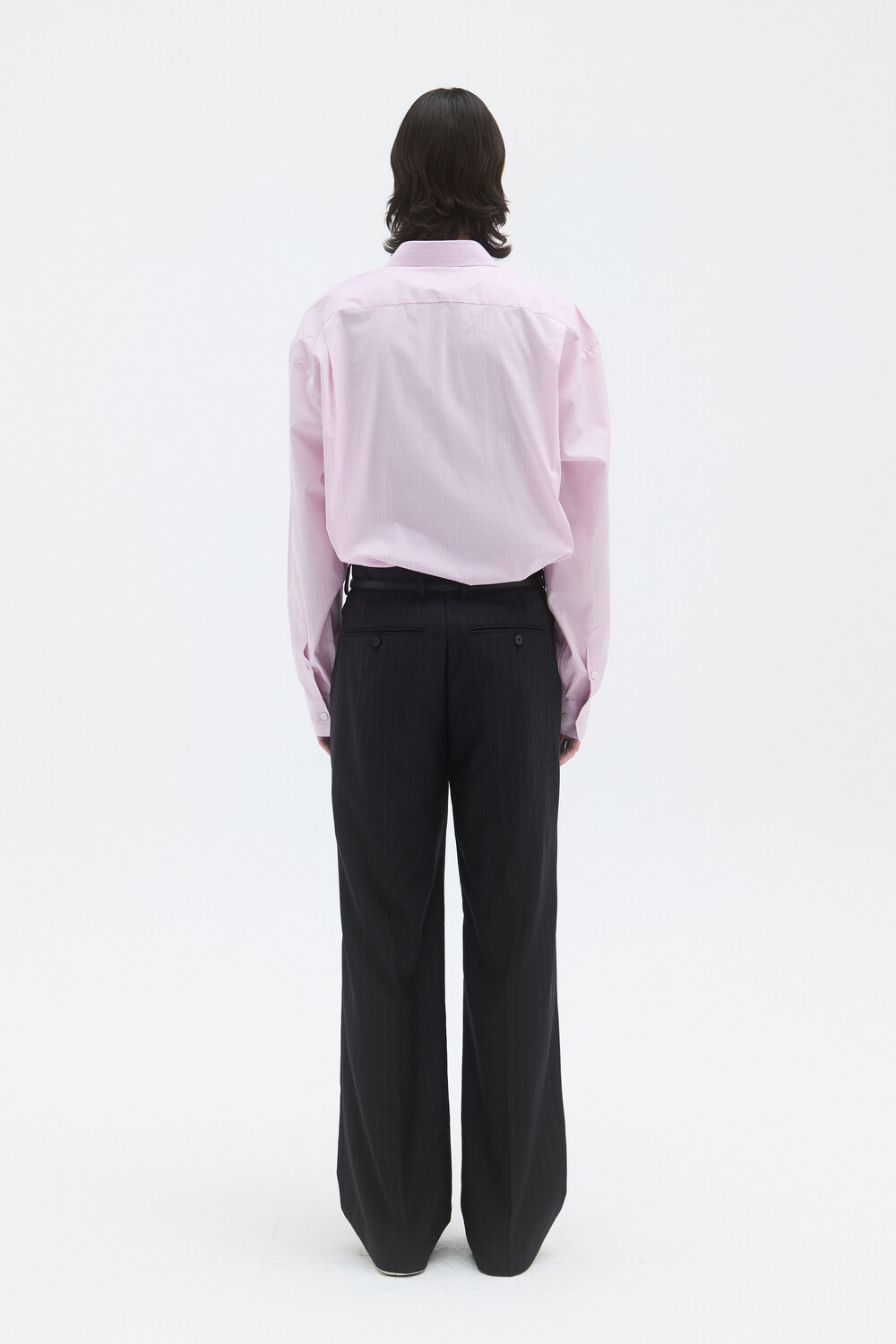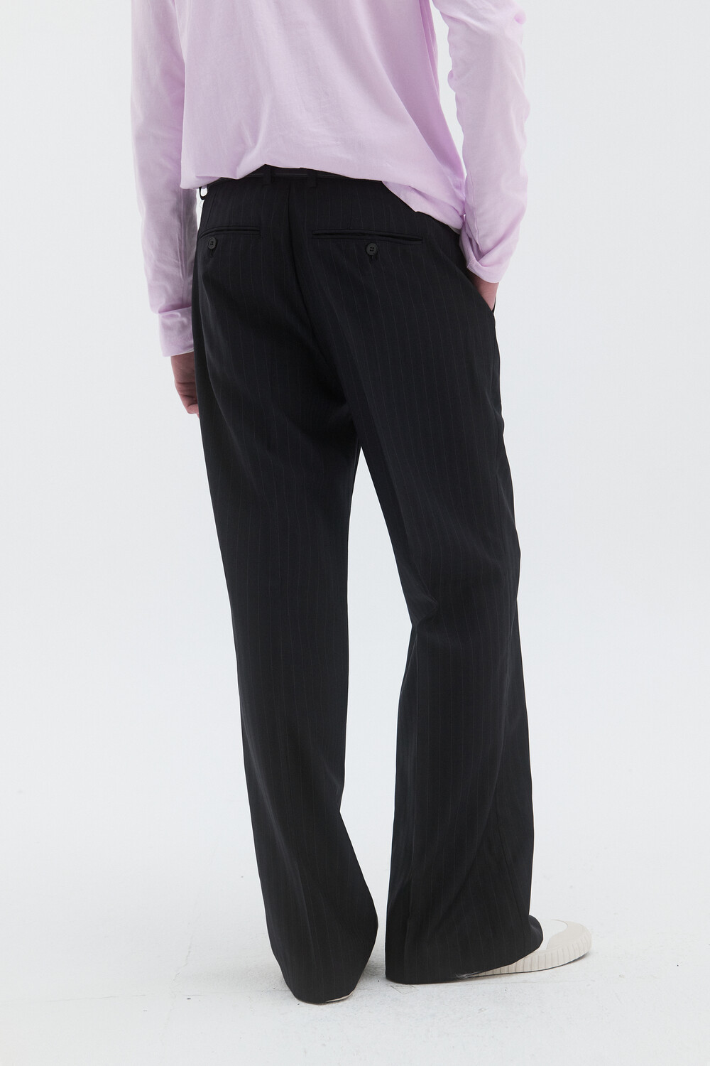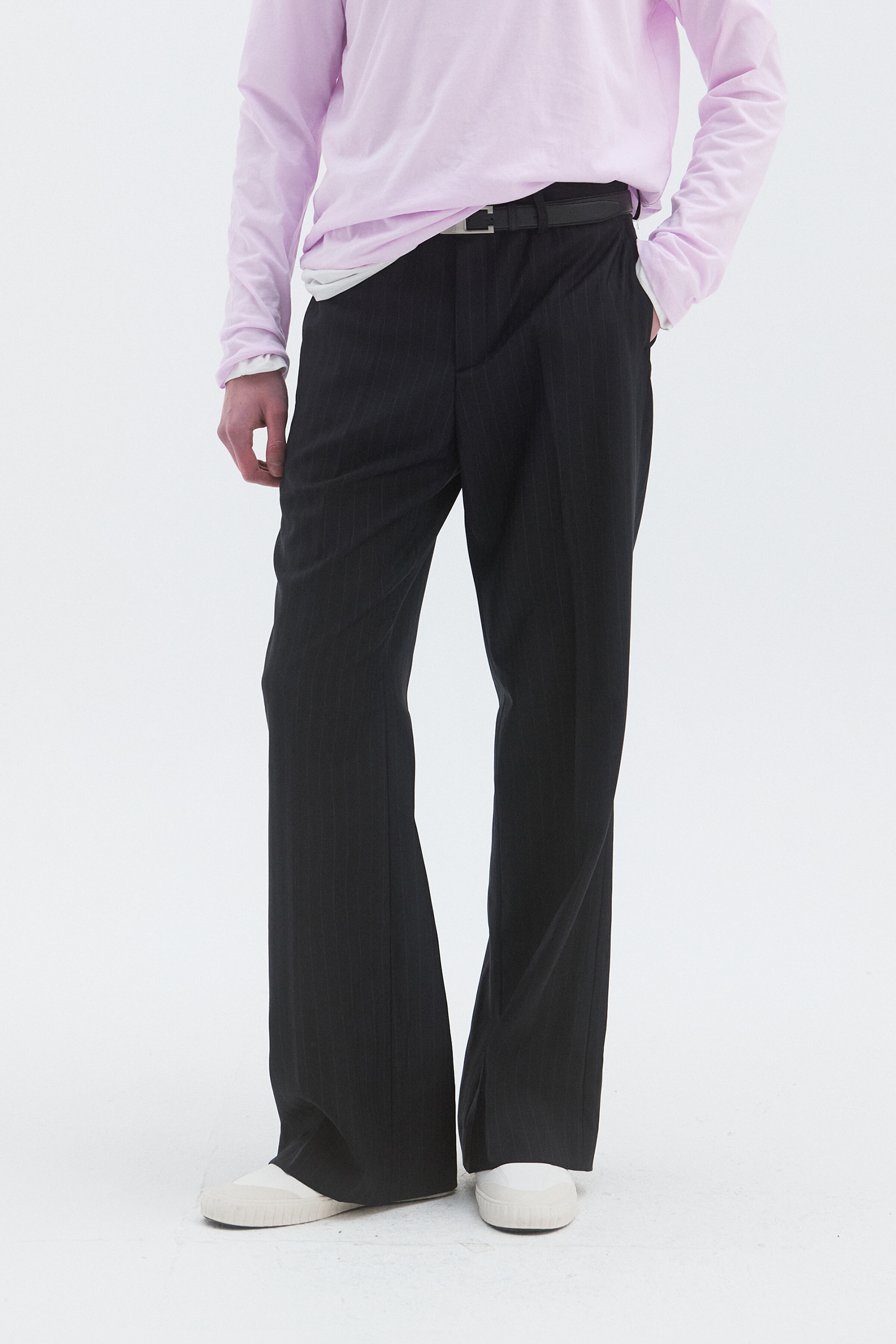 CORE WOOL SEMI-FLARED TROUSERS - STRIPE DEEP NAVY