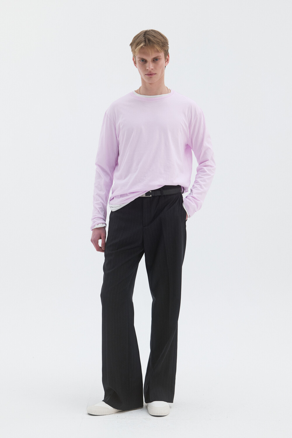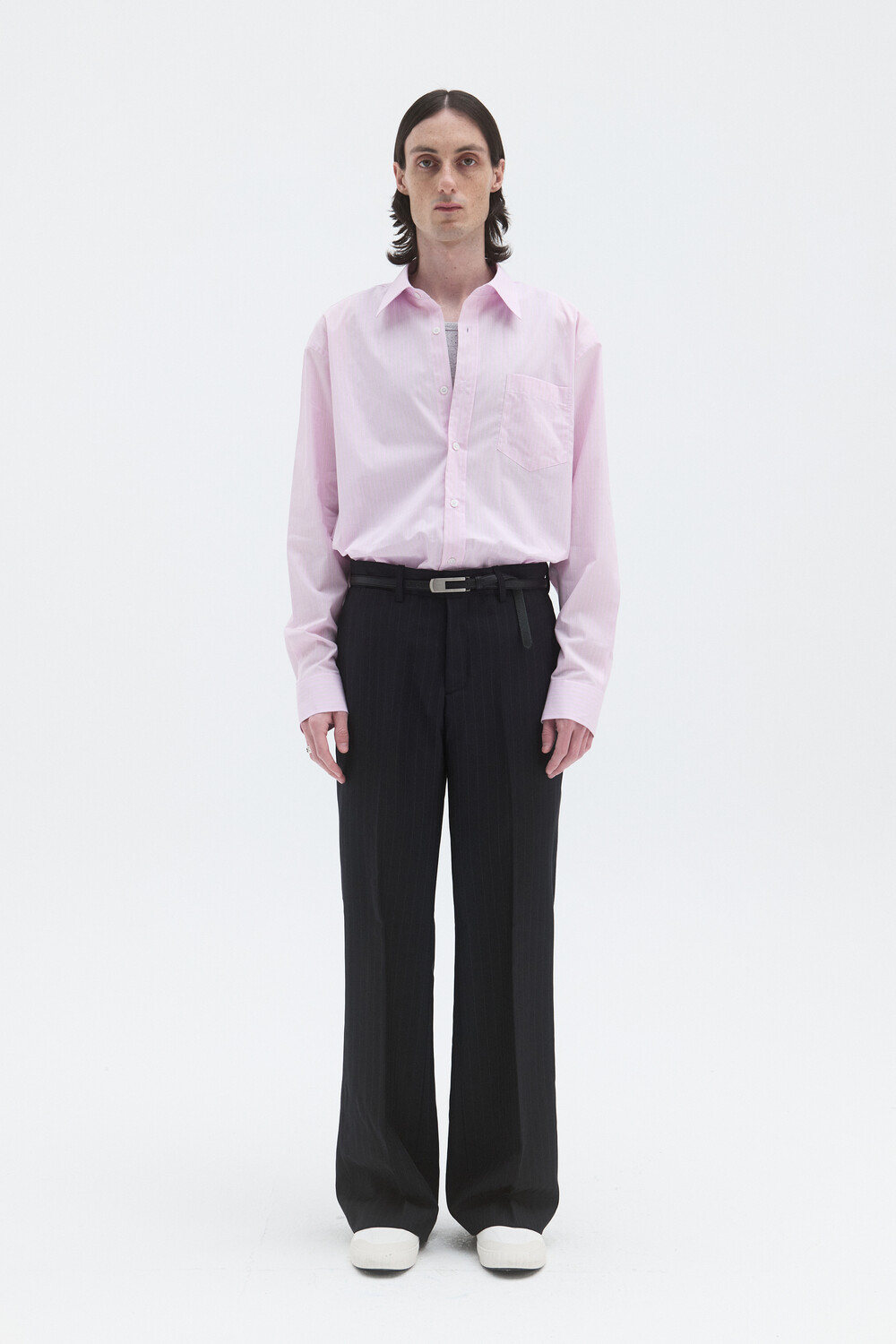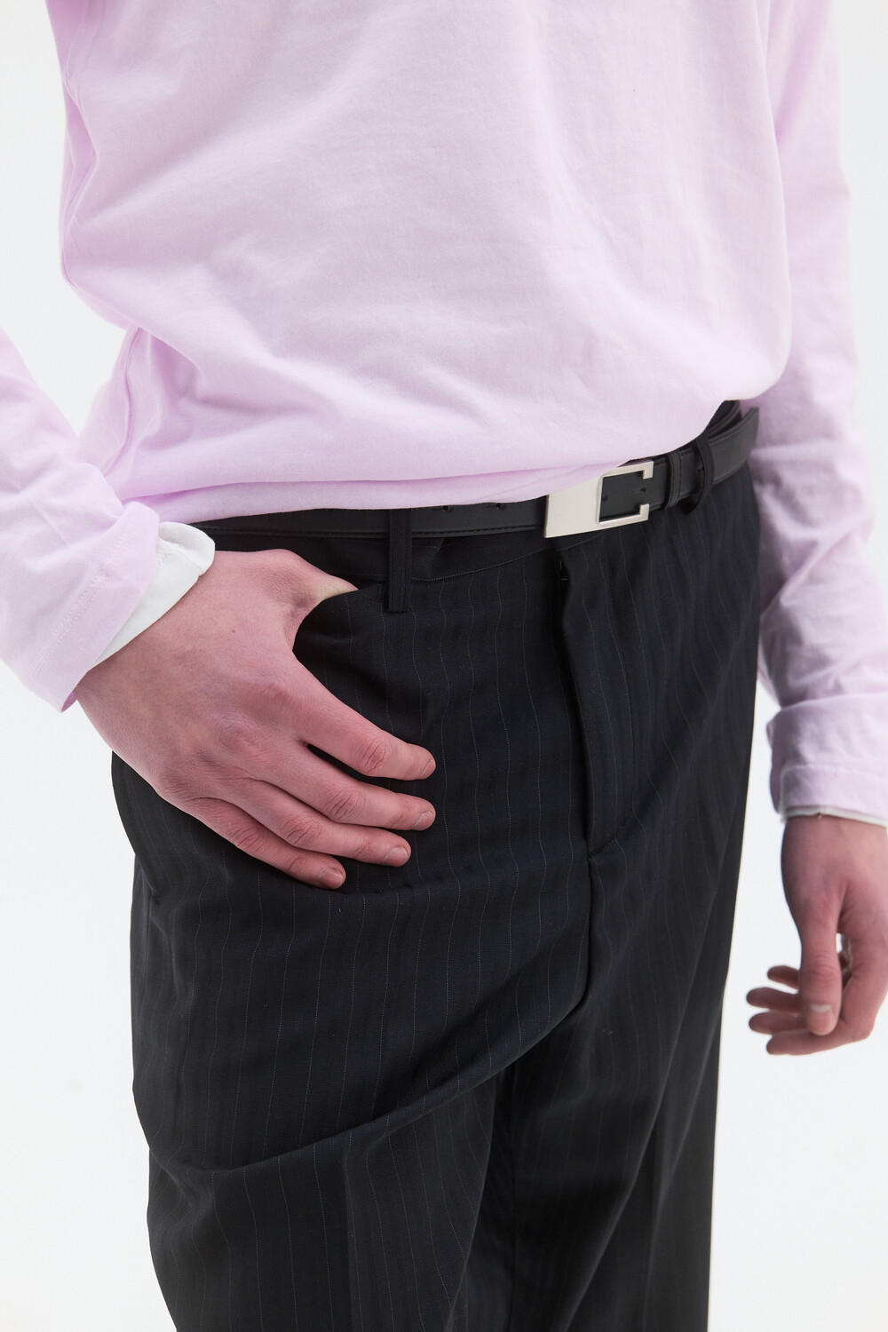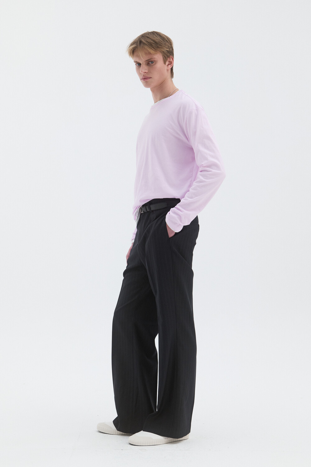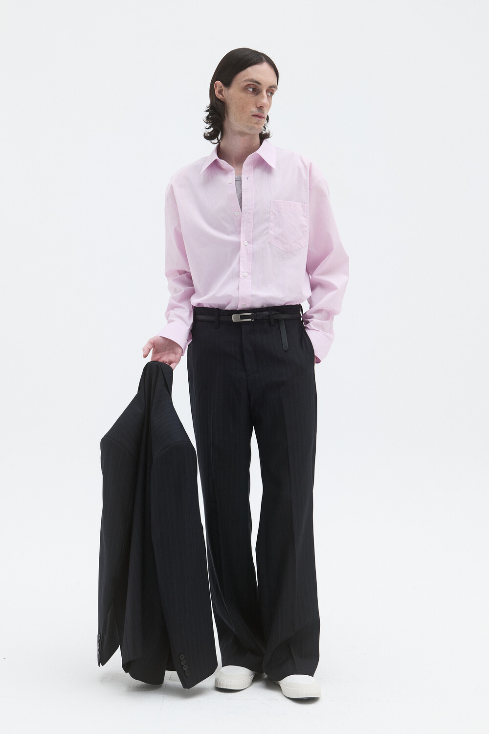 CORE WOOL SEMI-FLARED TROUSERS - STRIPE DEEP NAVY