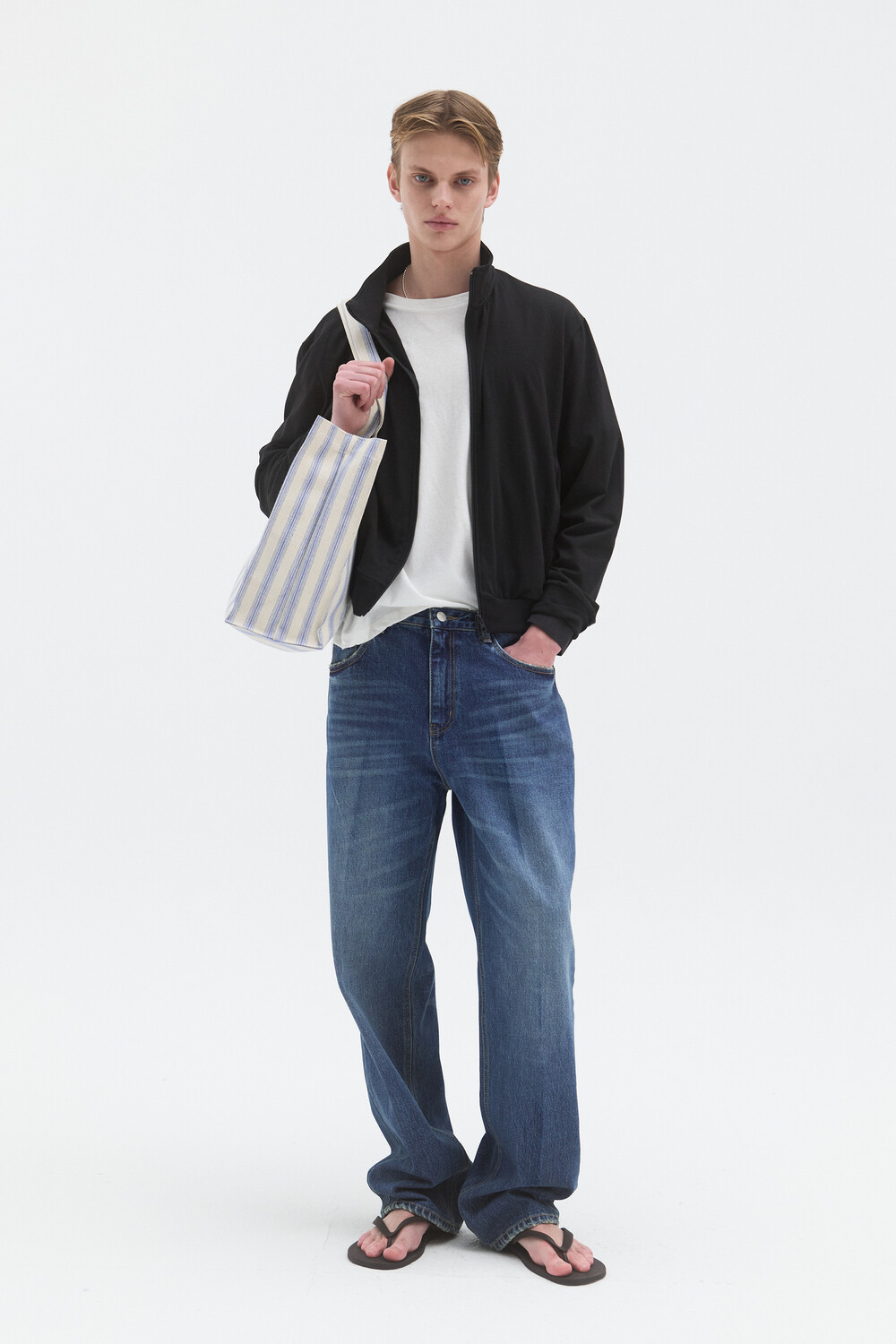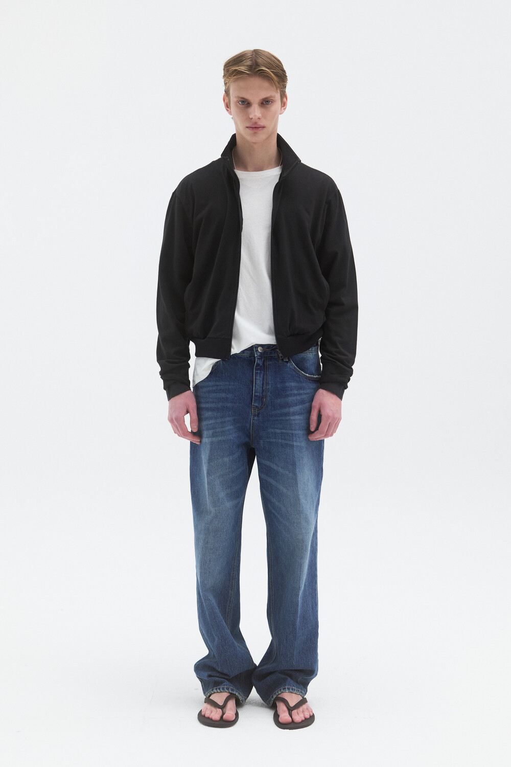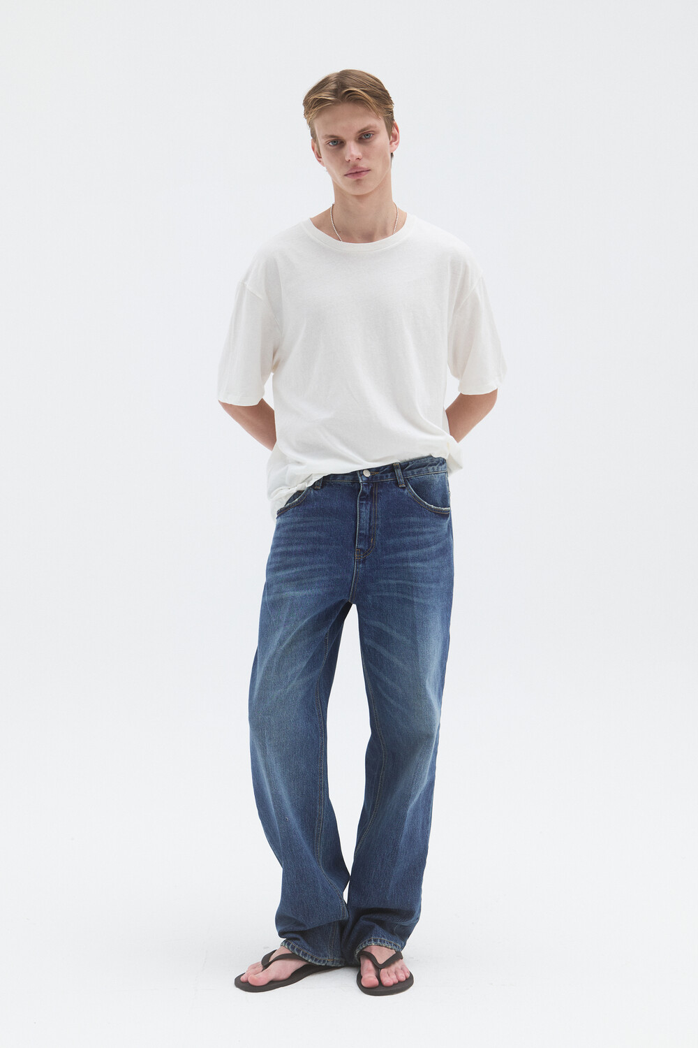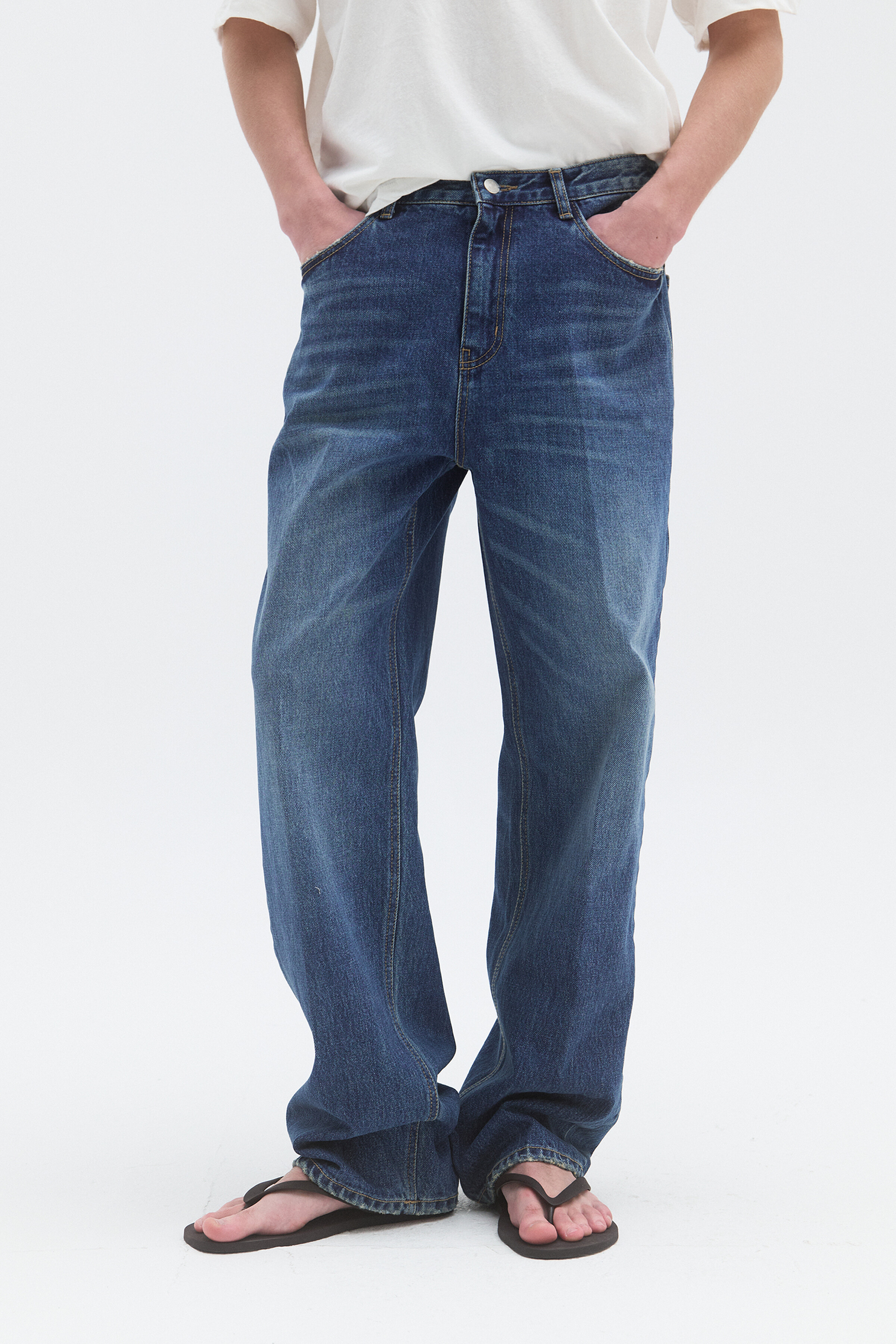 -모던하게 연출 가능한 프레스 데님 팬츠