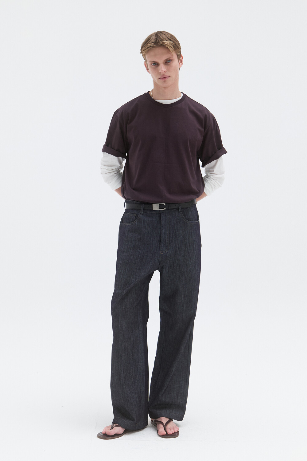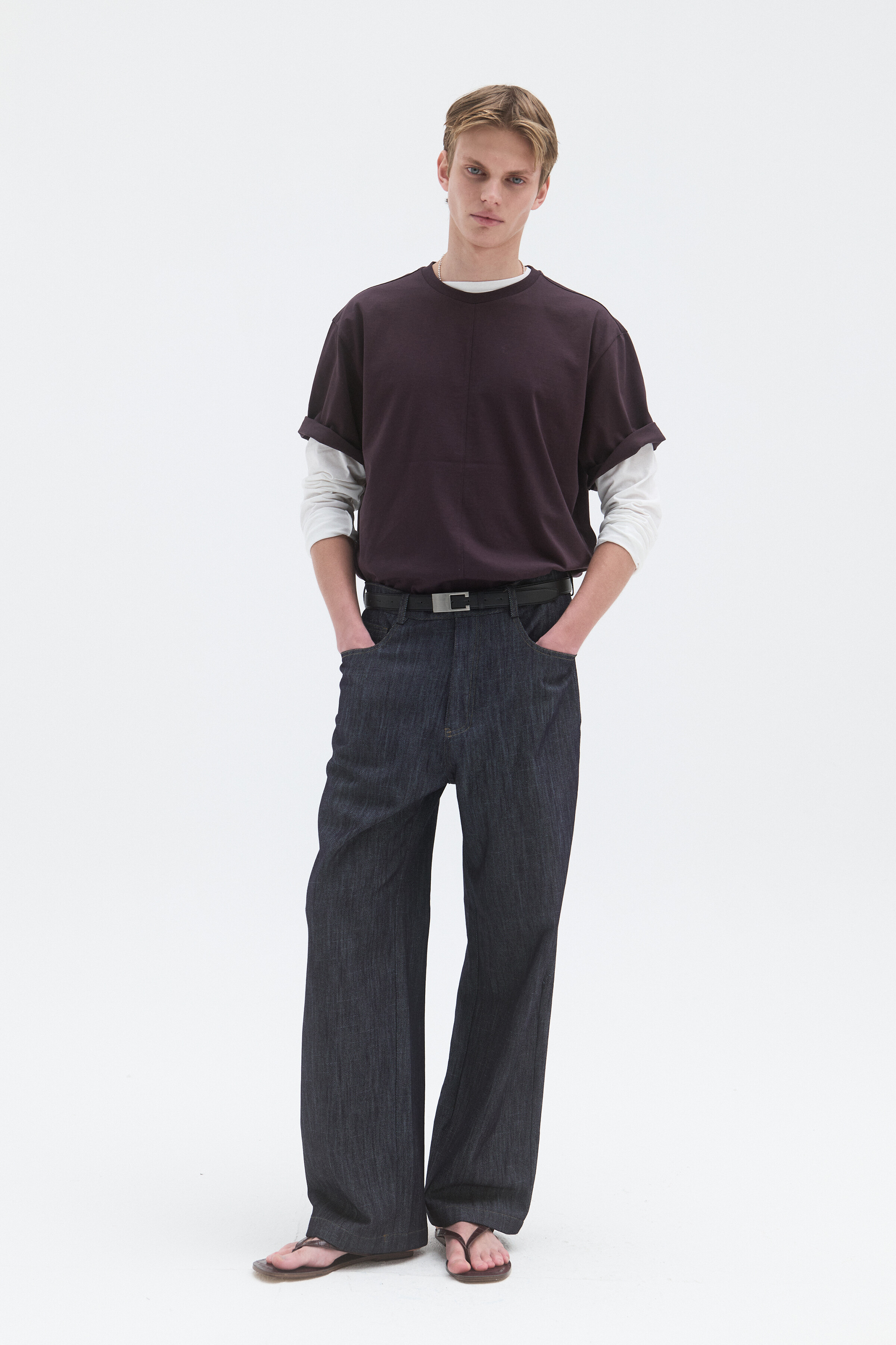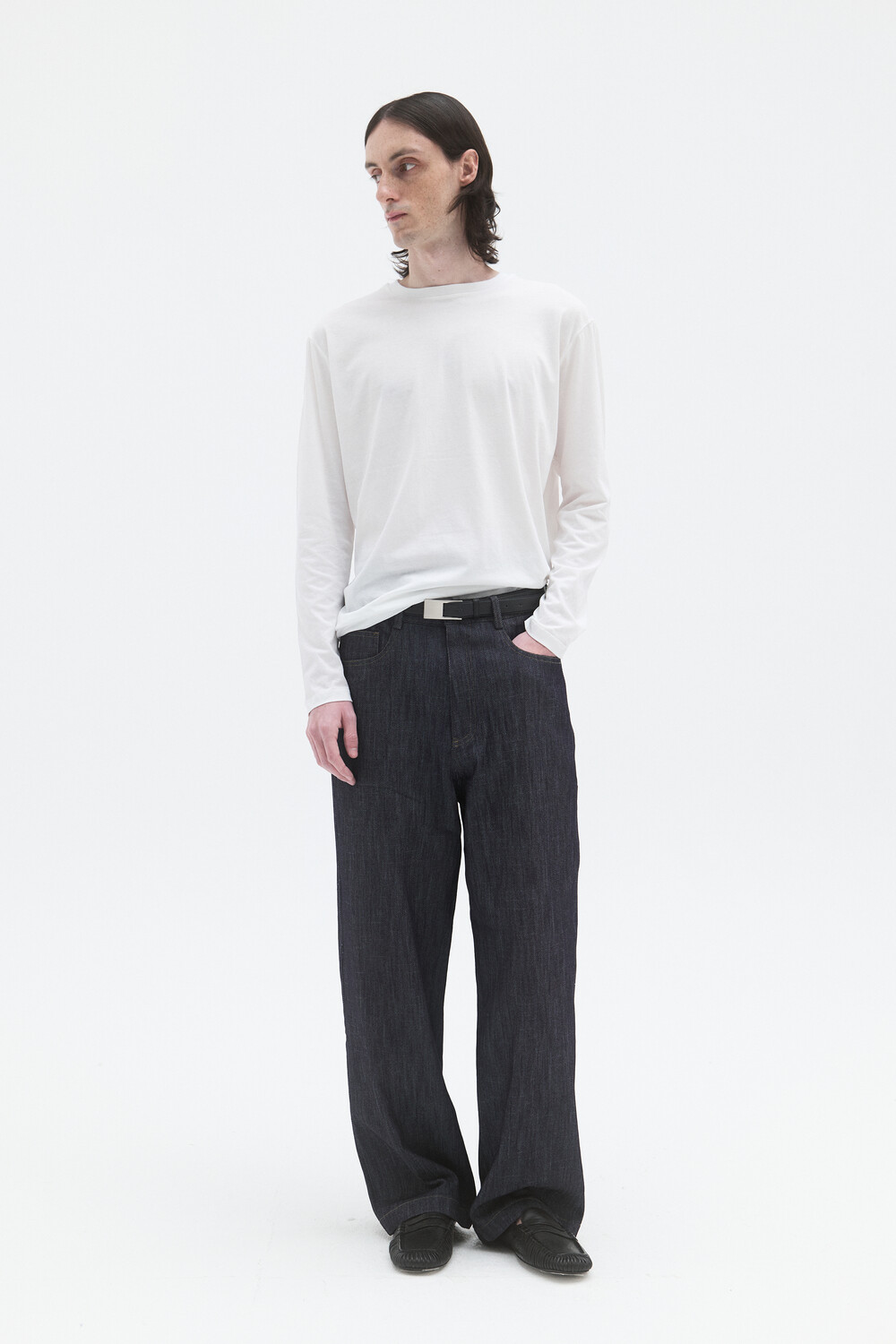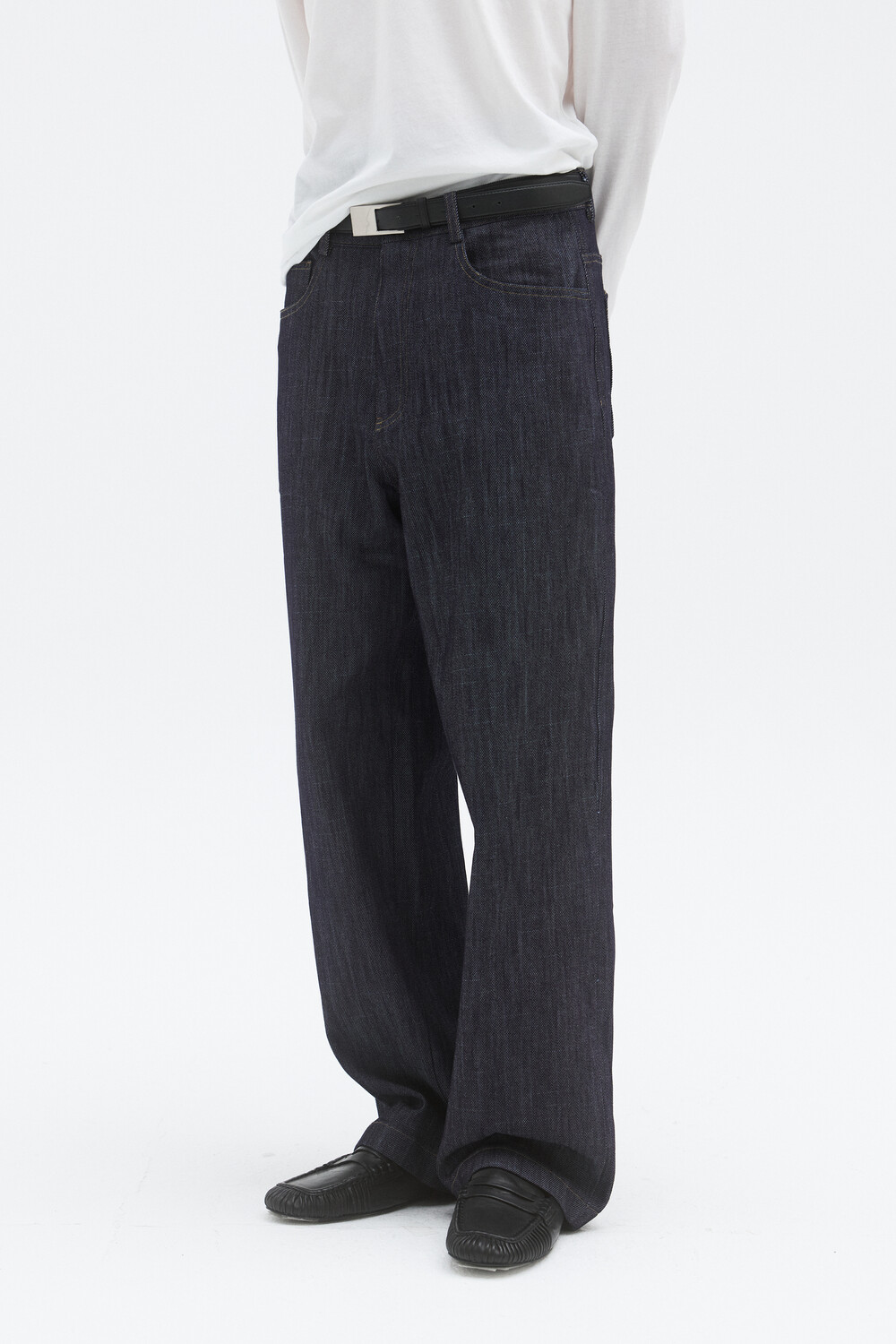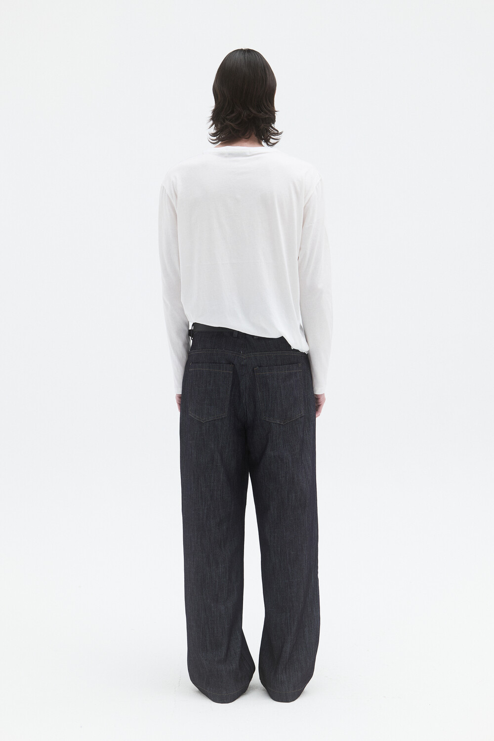 LIGHTWEIGHT DRAPERY DENIM TROUSERS - RAW INDIGO