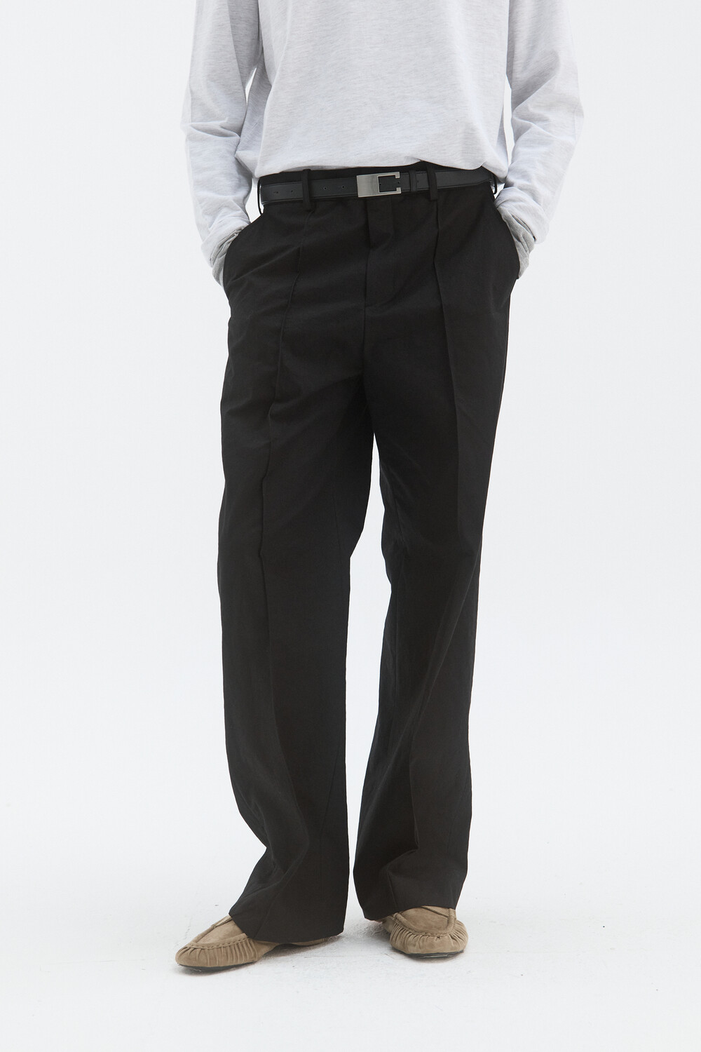 -브러쉬텍스쳐 가공을 한 버클로 제작된 벨트