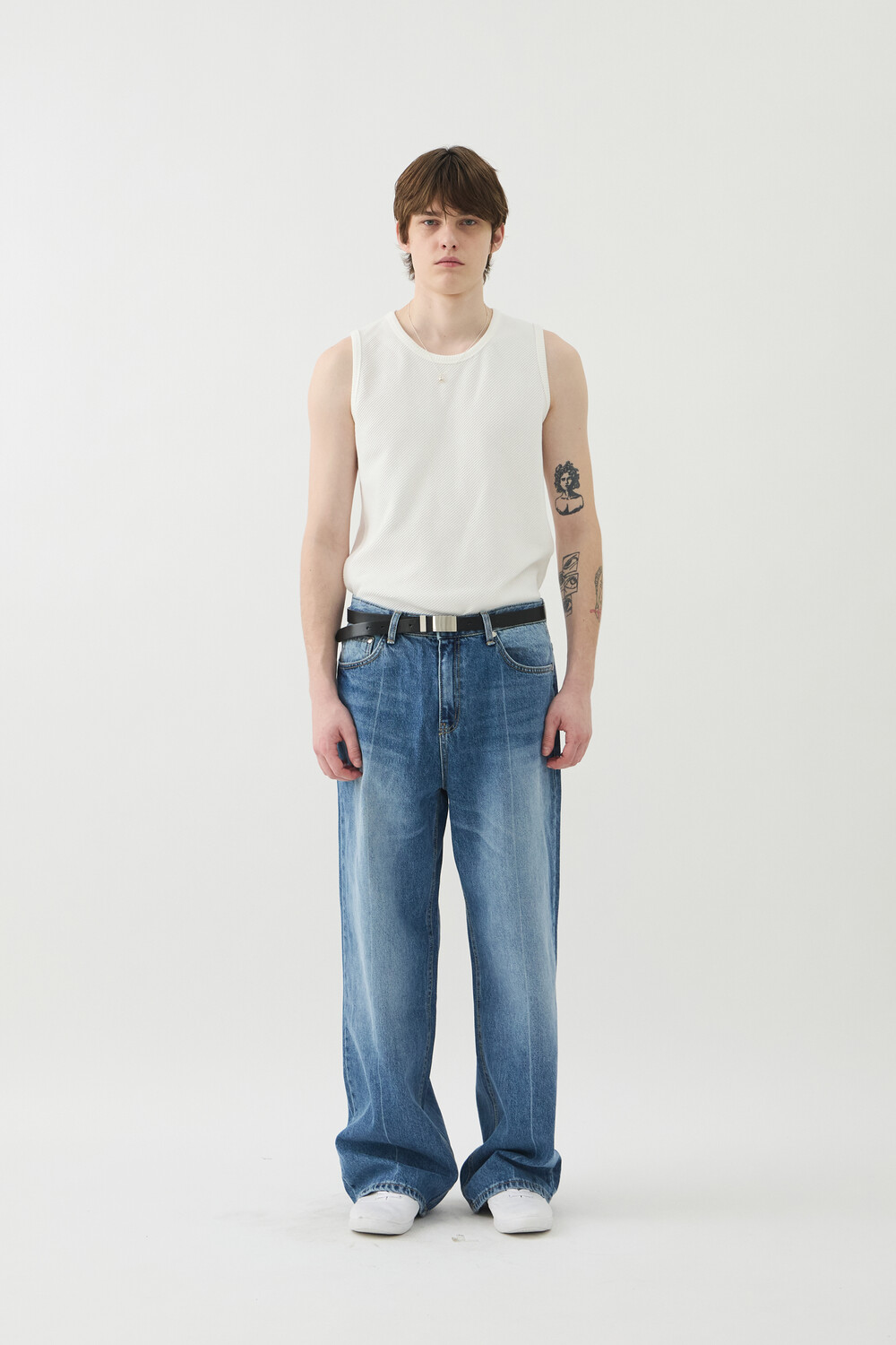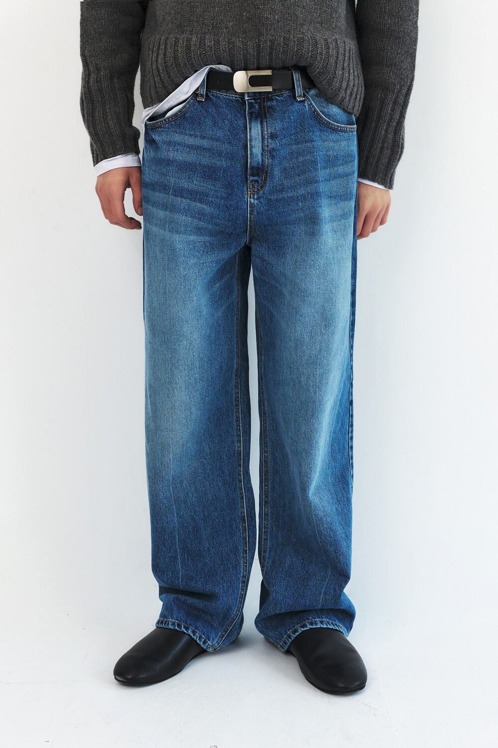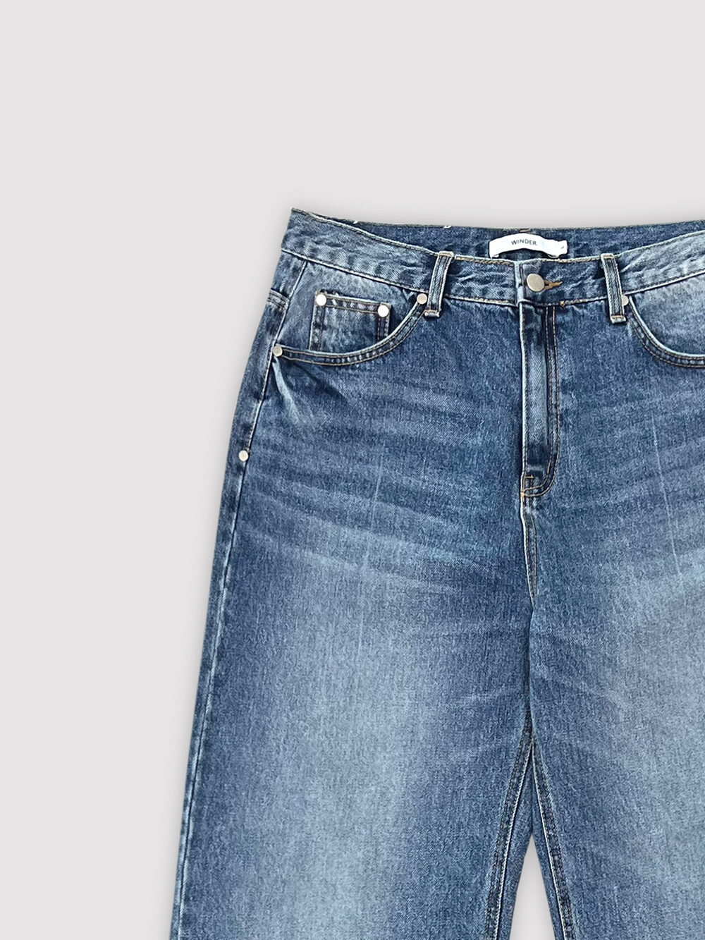 PRESS WASHED DENIM PANTS - MID BLUE