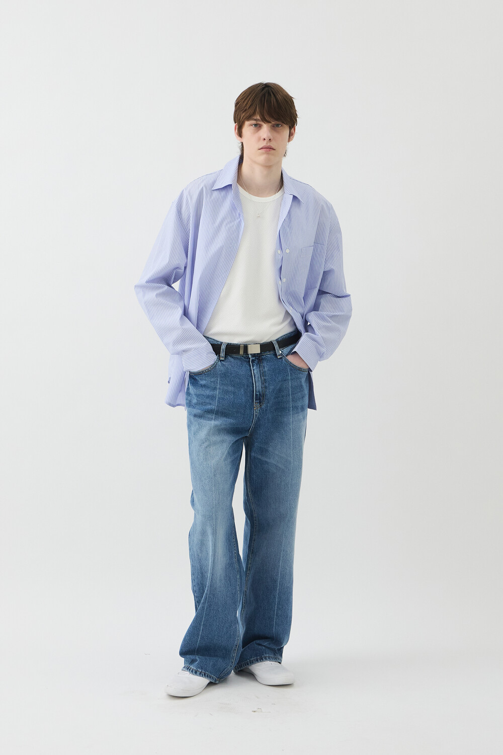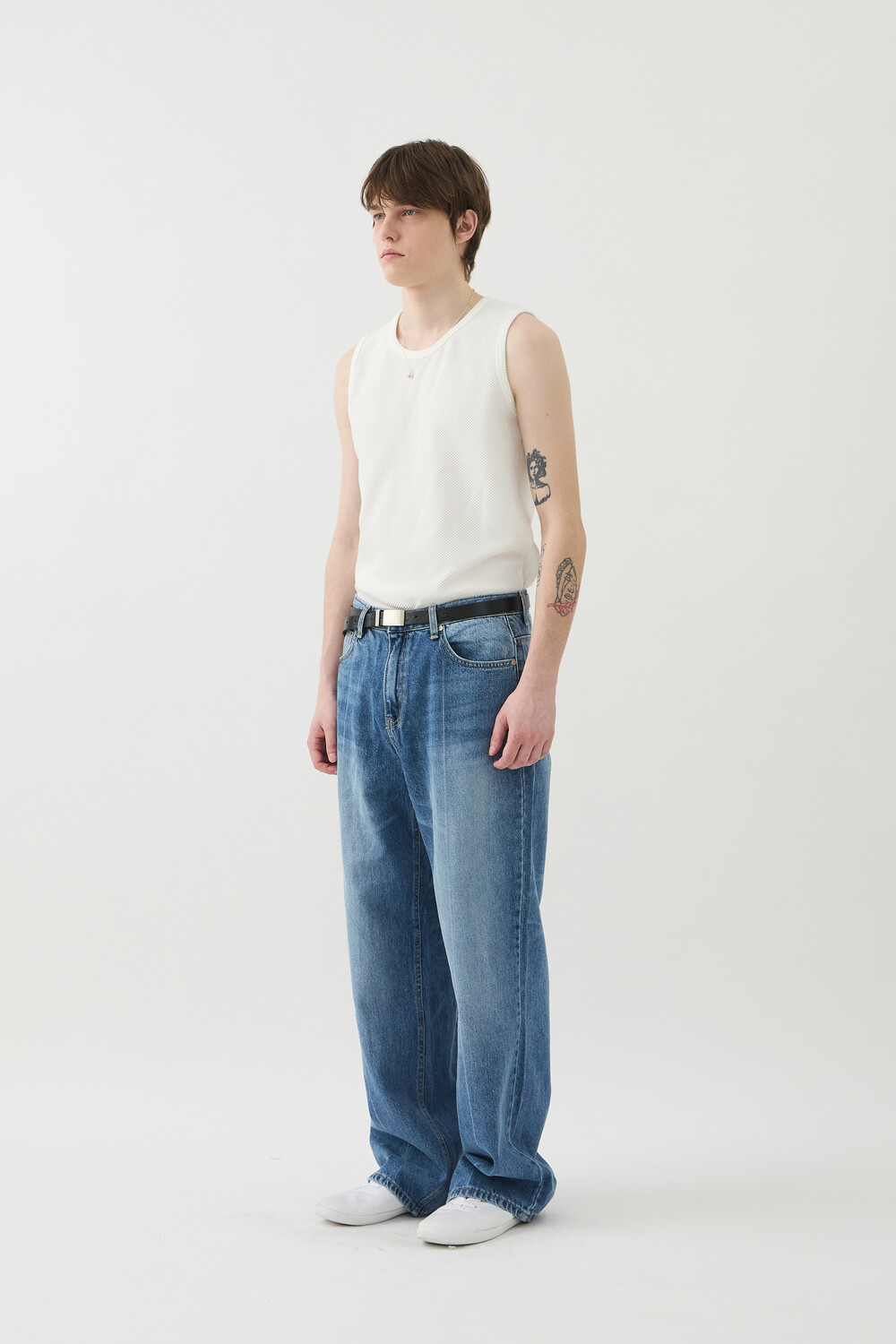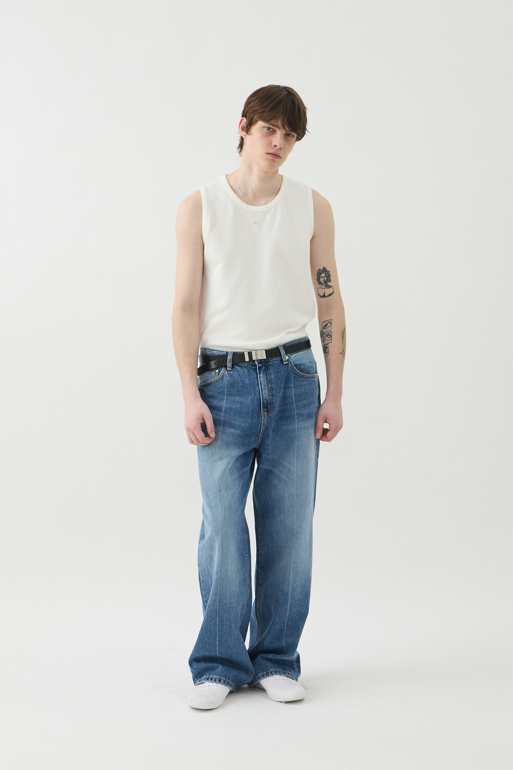 PRESS WASHED DENIM PANTS - MID BLUE