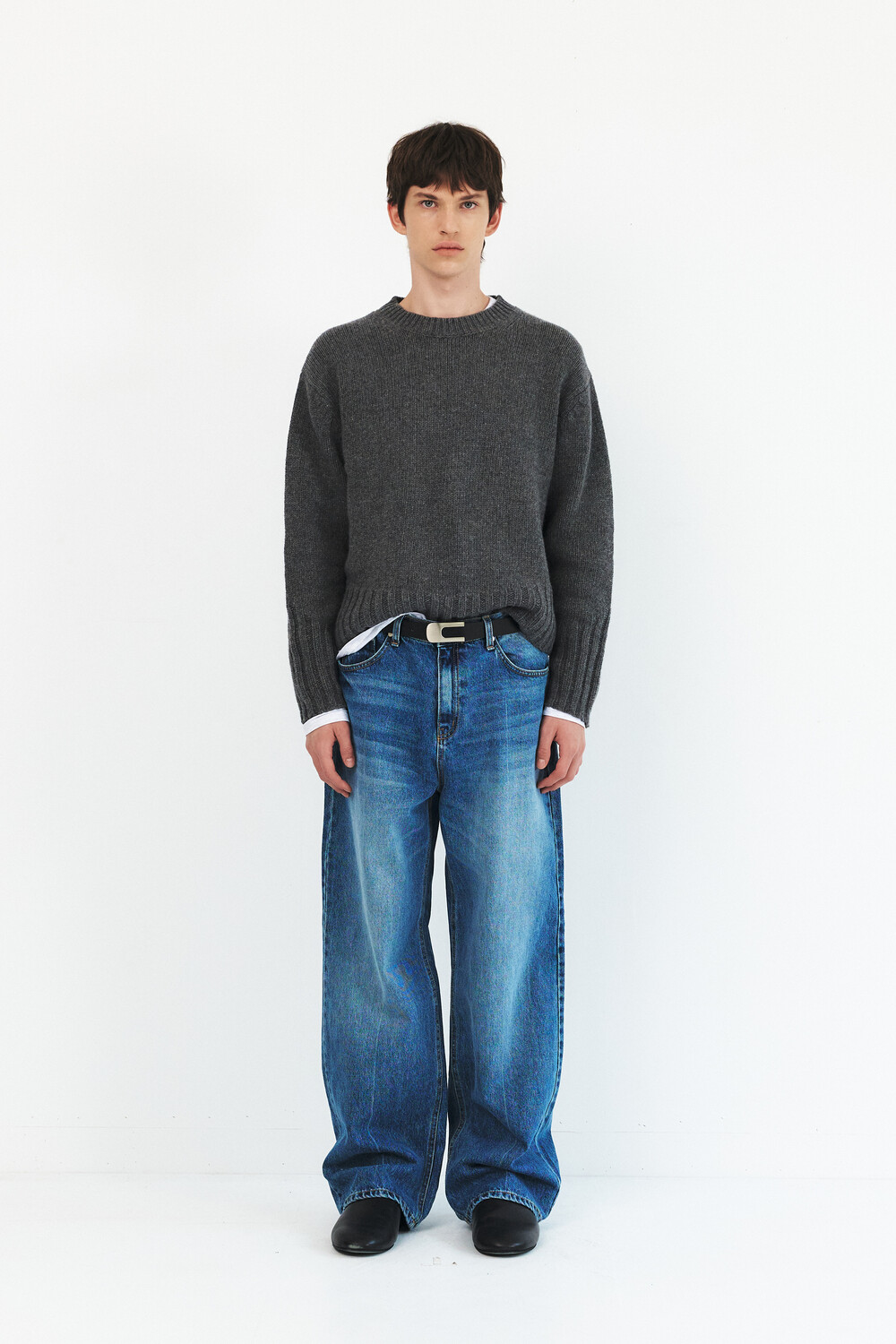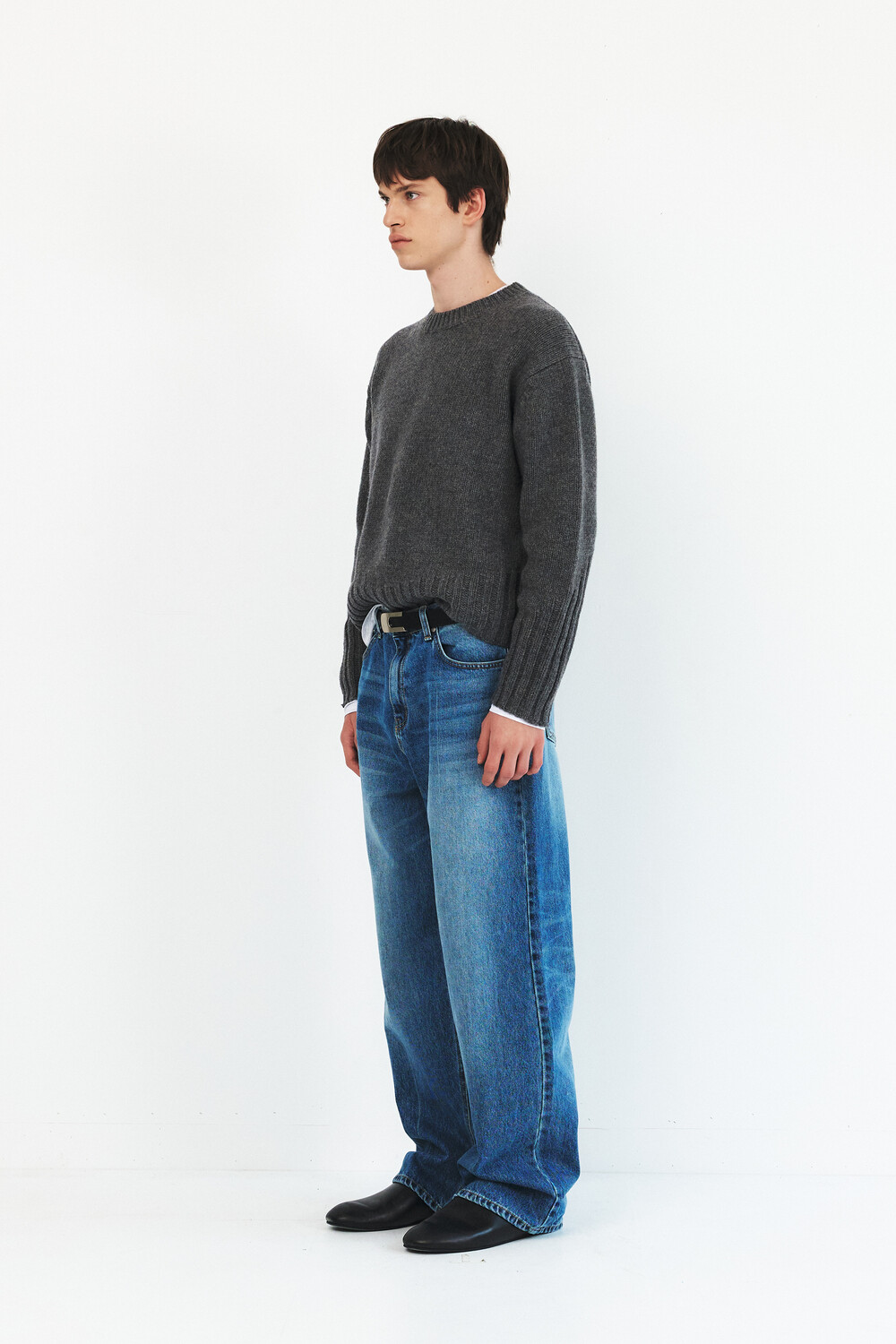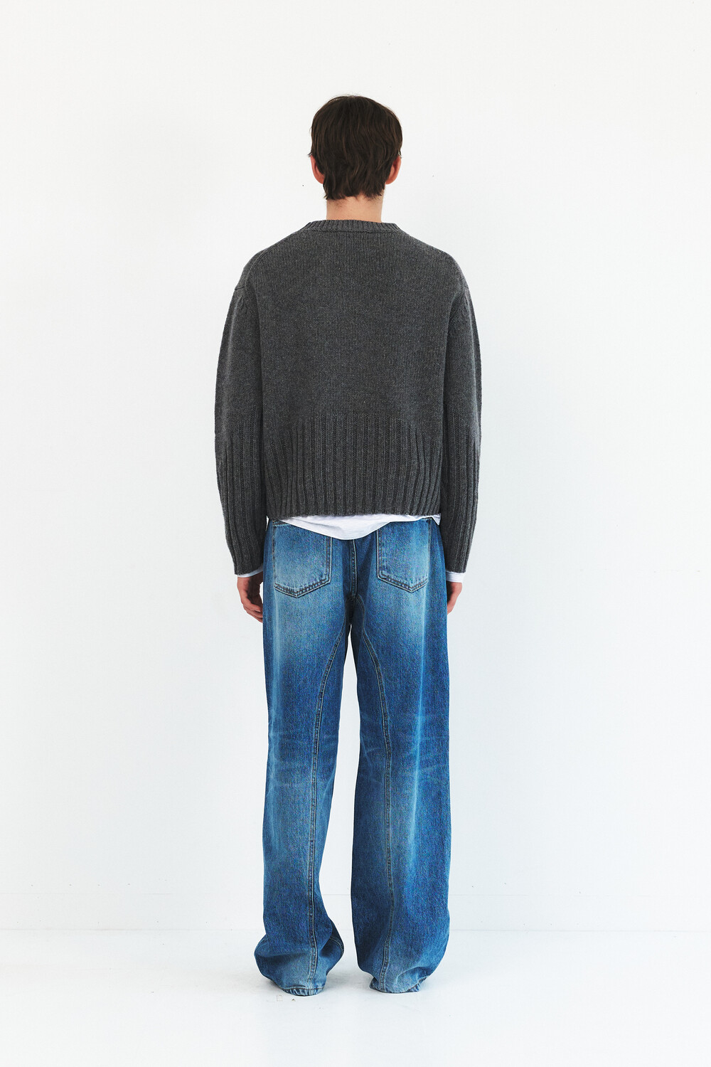 -레직기 라인의 워싱과 은은한게 노출되는 뒤쪽 절개가 특징인 데님 팬츠