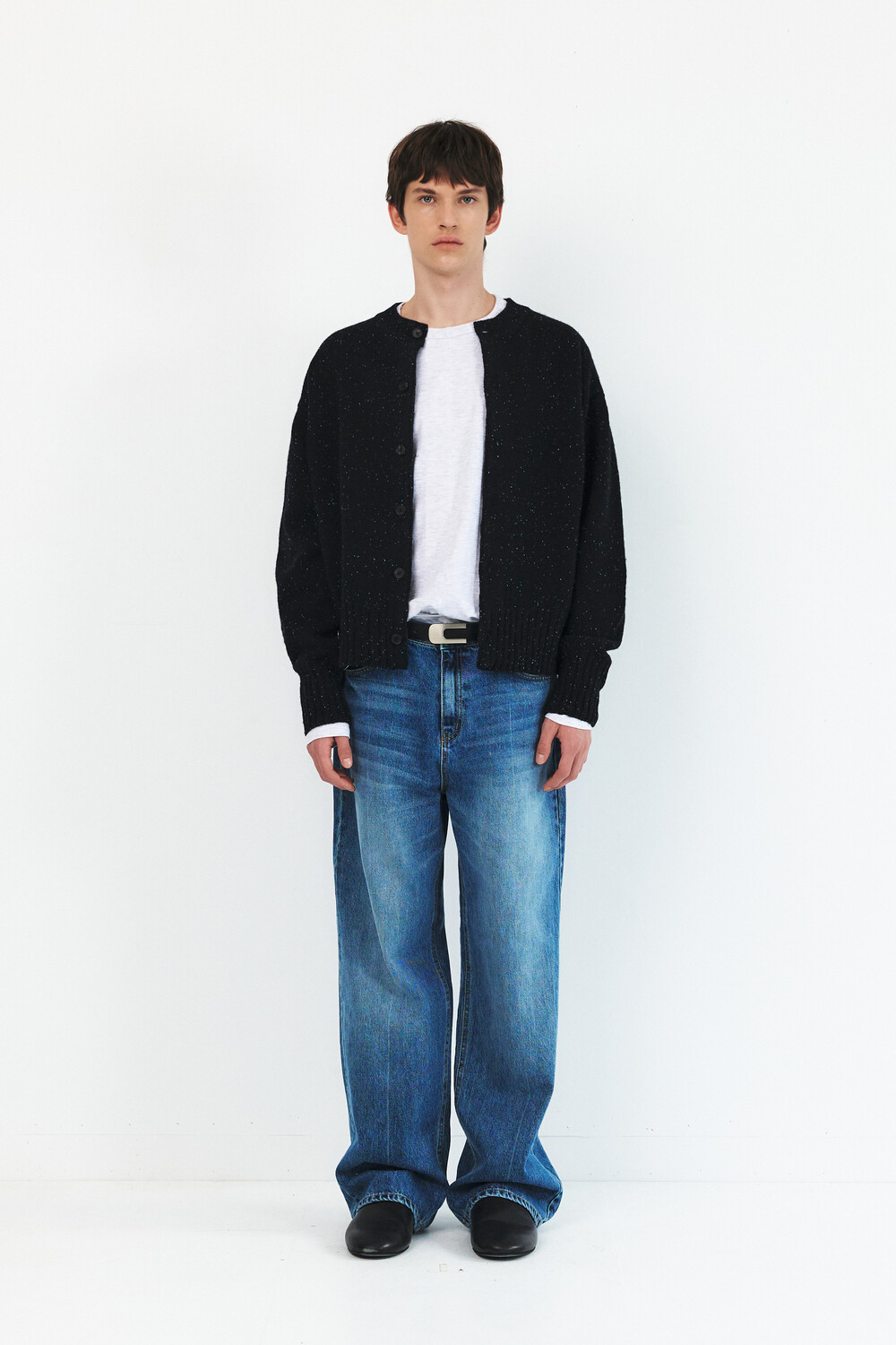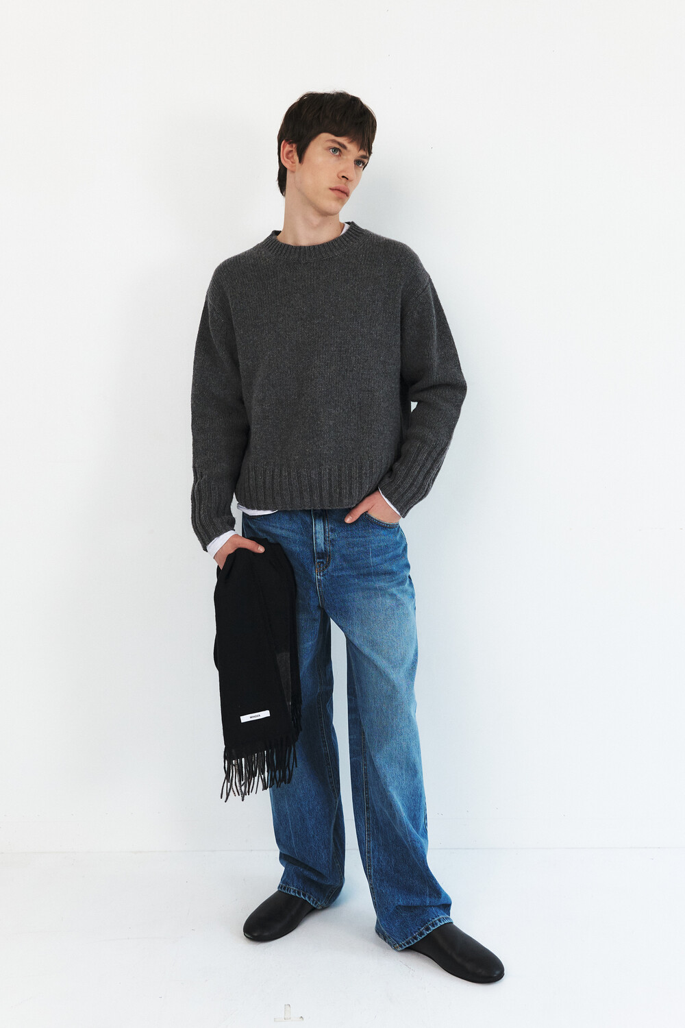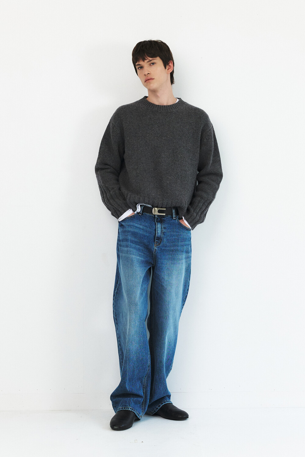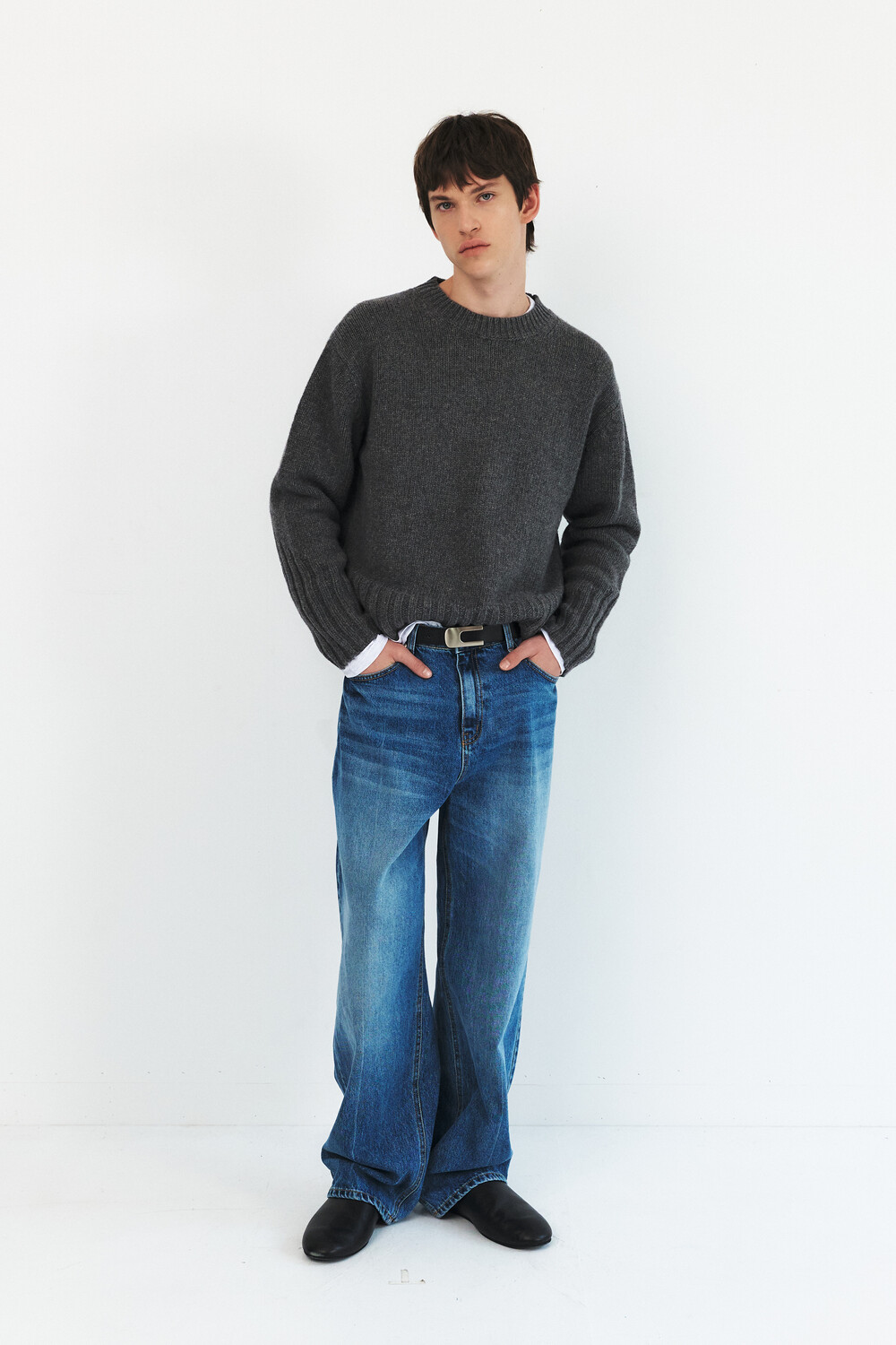 -레직기 라인의 워싱과 은은한게 노출되는 뒤쪽 절개가 특징인 데님 팬츠