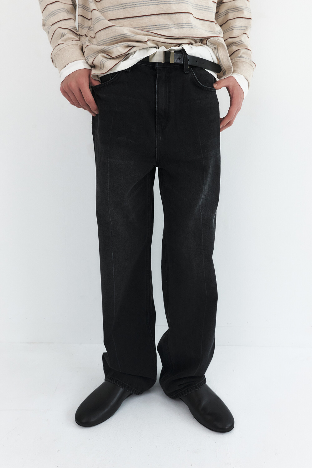 PRESS WASHED DENIM PANTS - BLACK