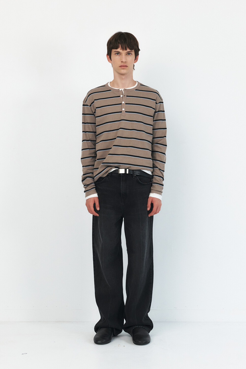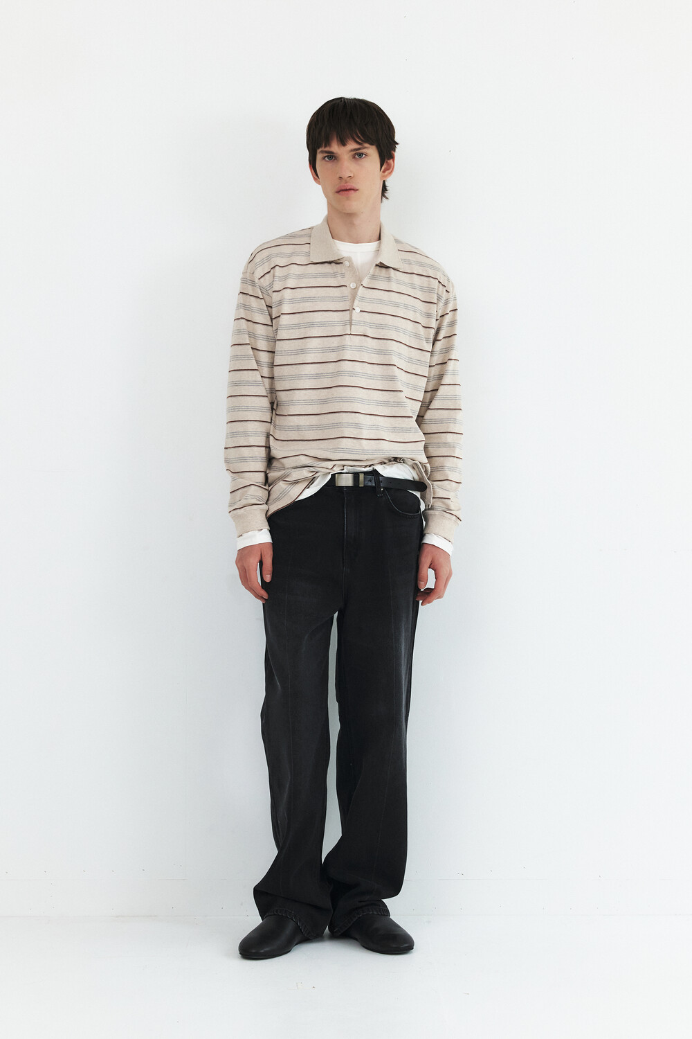 -레직기 라인의 워싱과 은은한게 노출되는 뒤쪽 절개가 특징인 데님 팬츠![]()