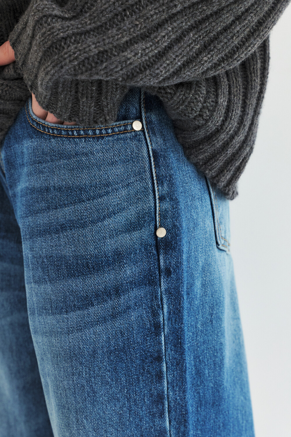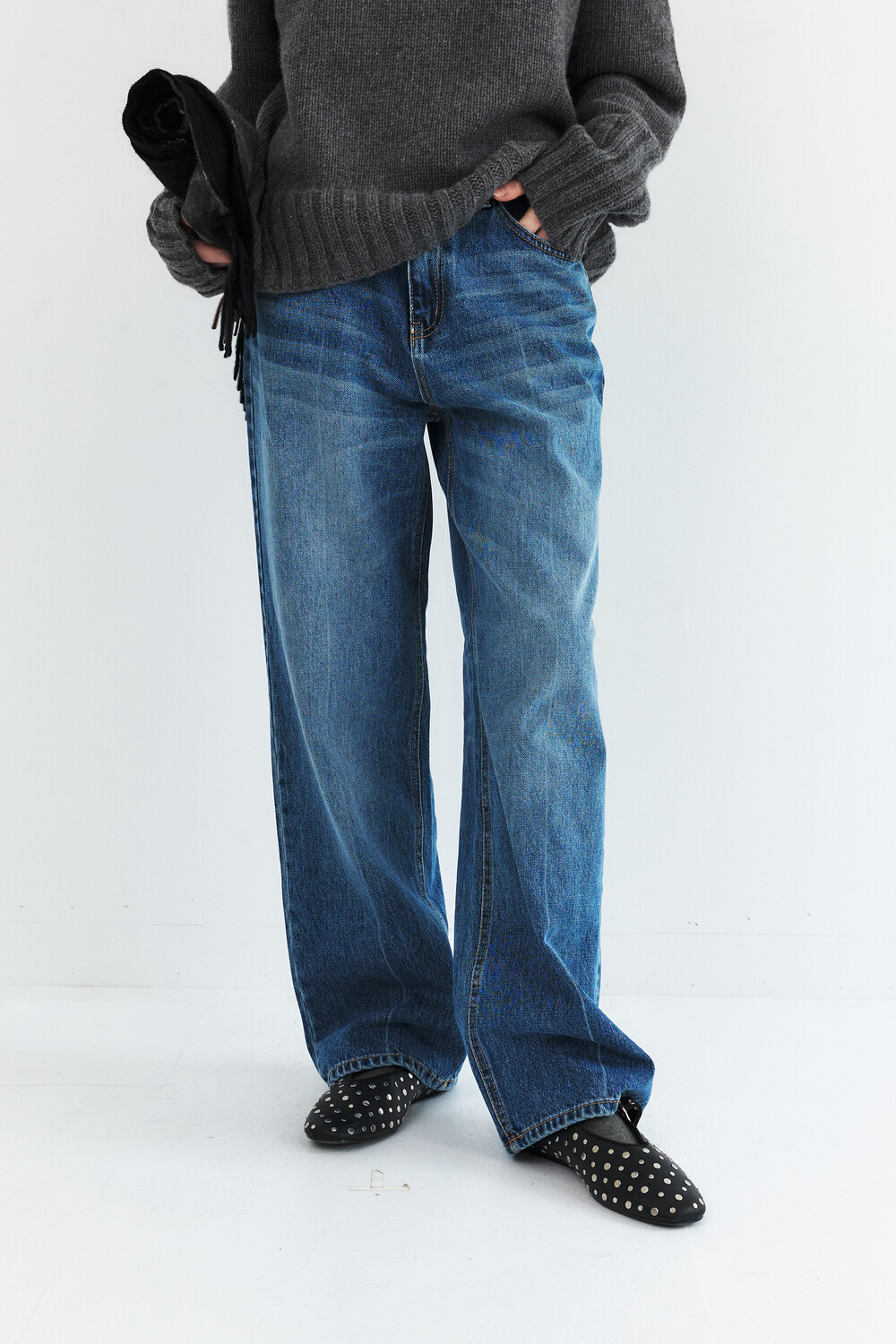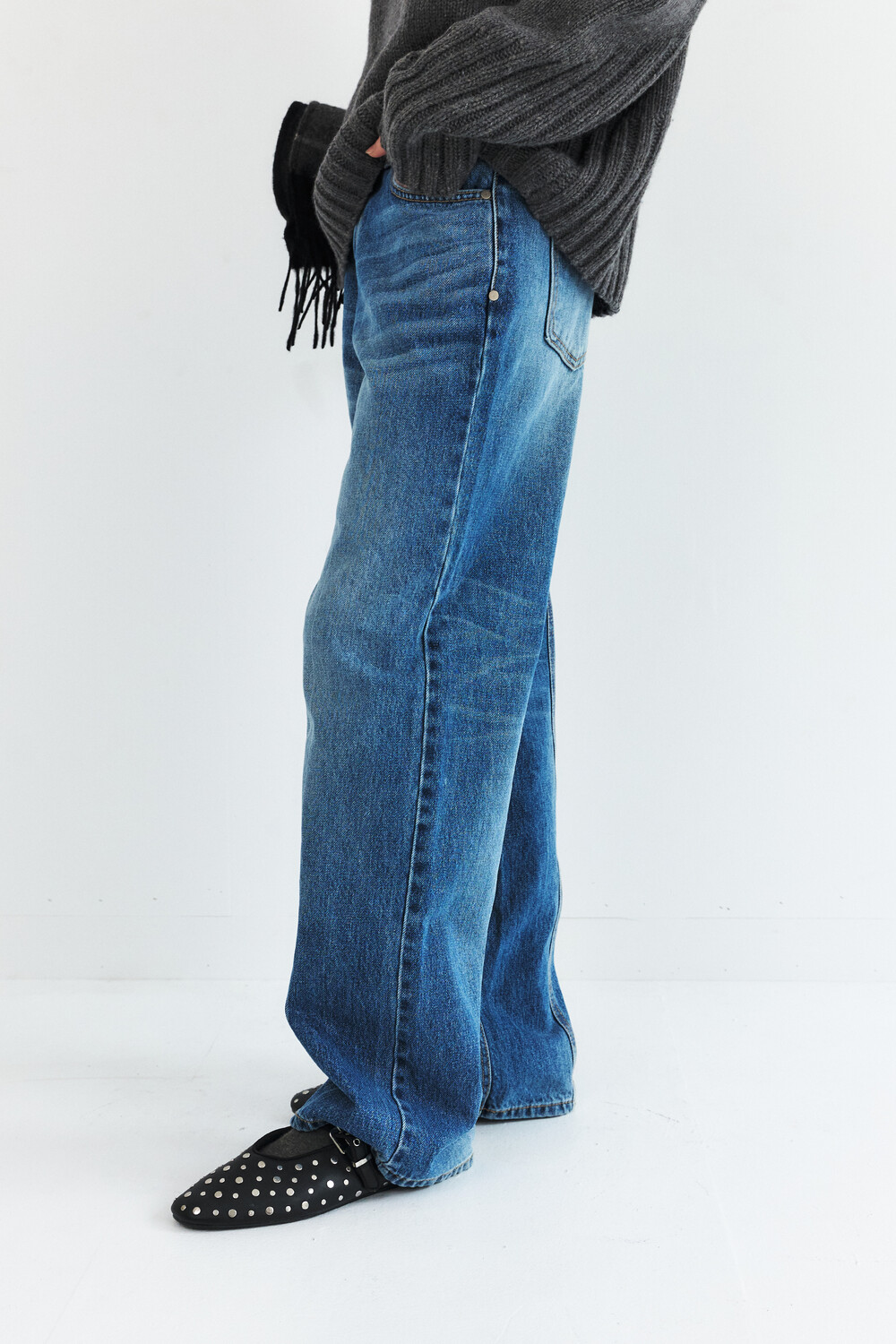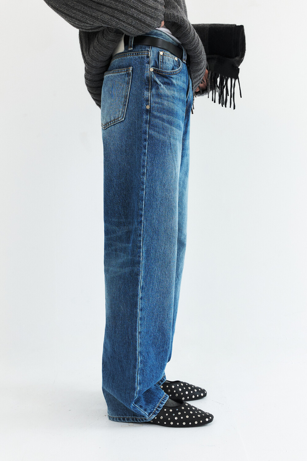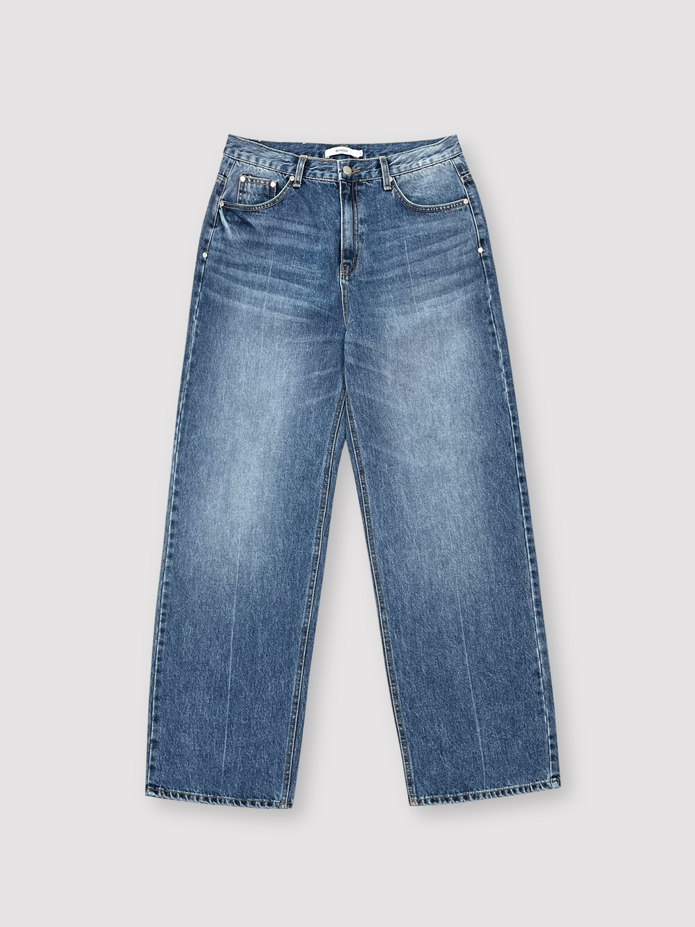 PRESS WASHED DENIM PANTS - MID BLUE (W)