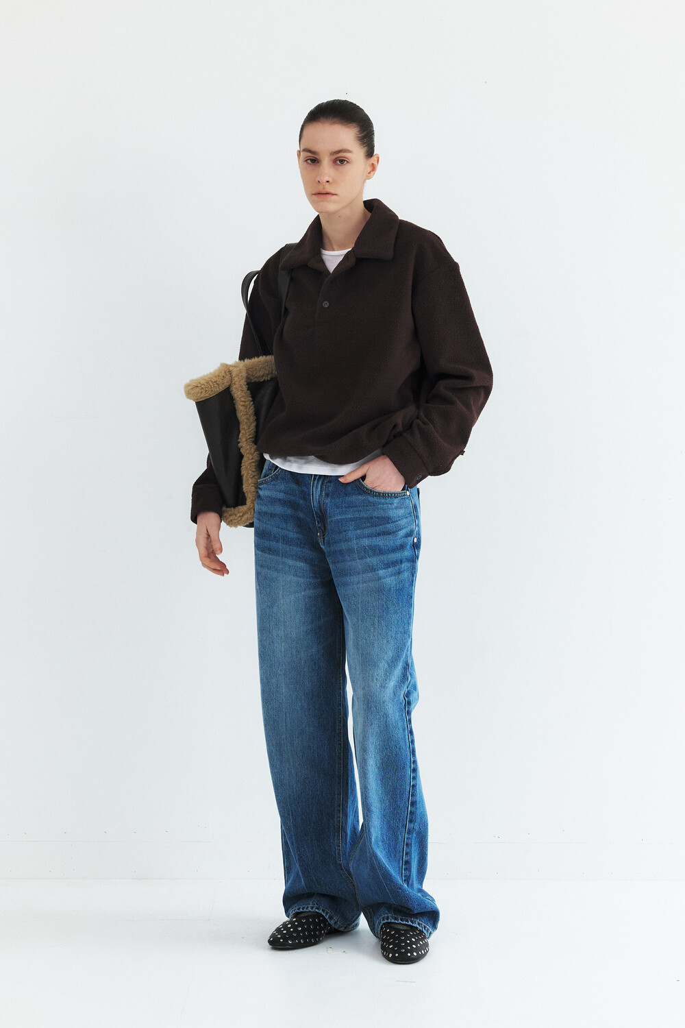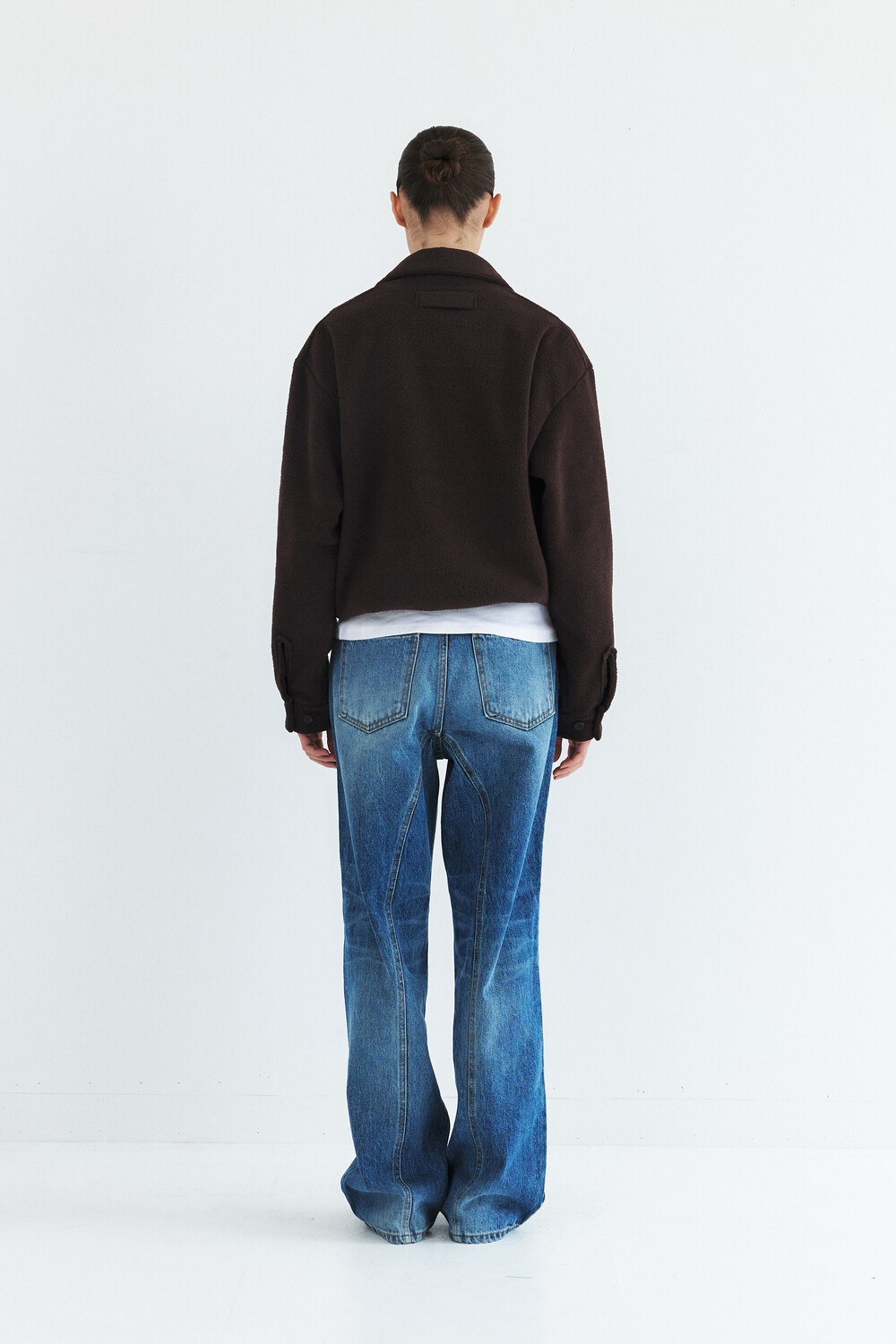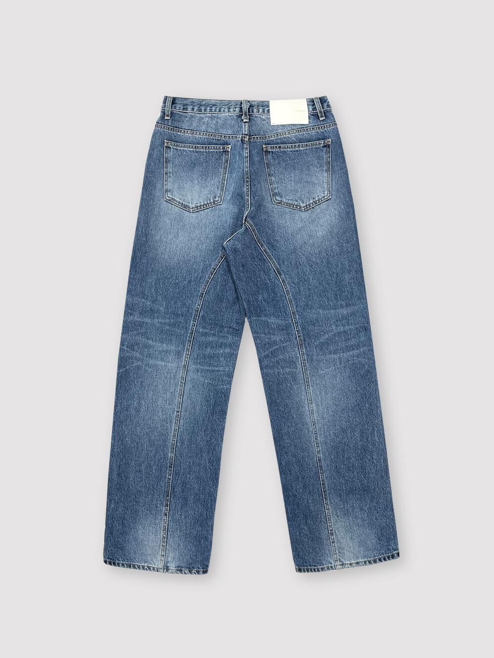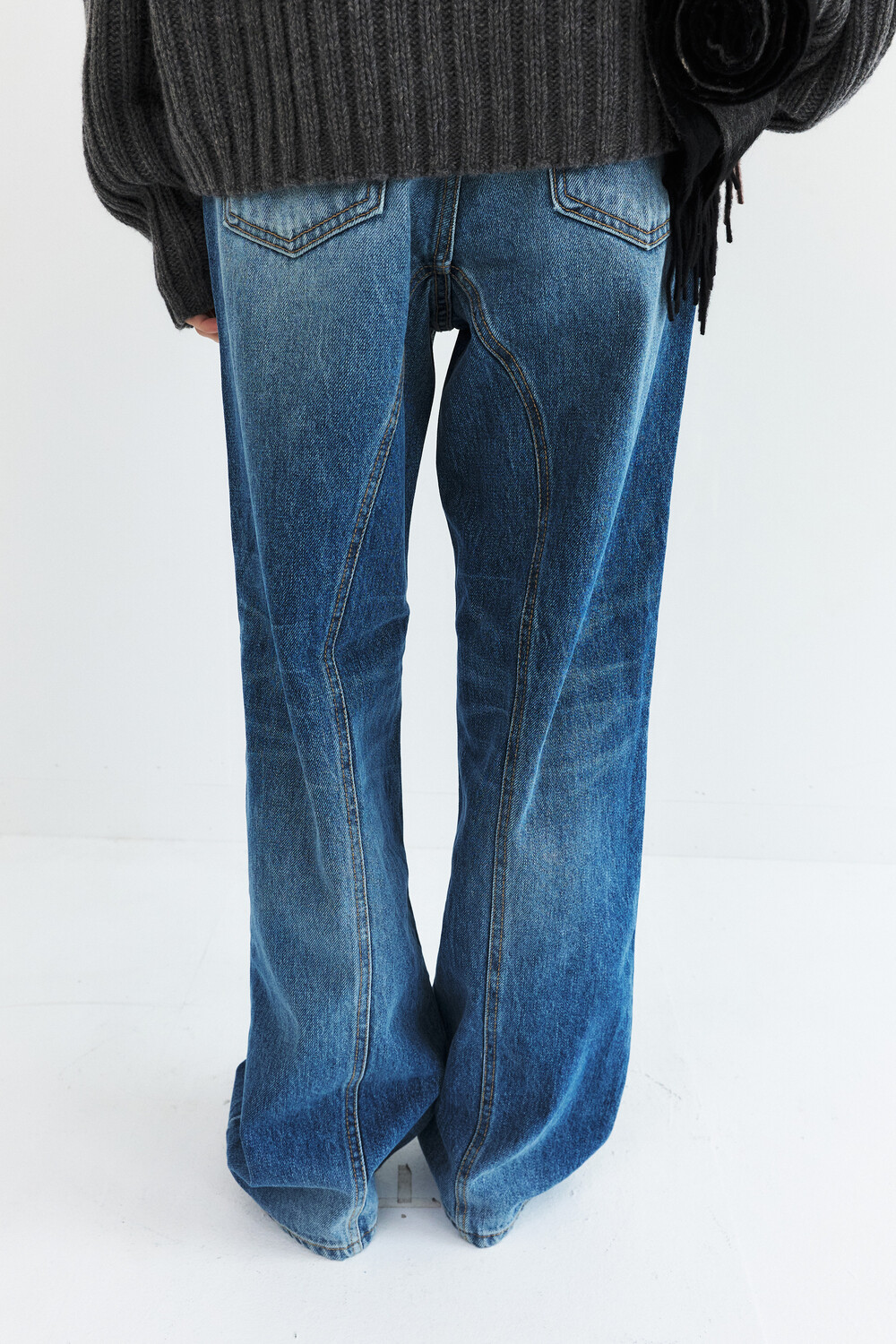 -레직기 라인의 워싱과 은은한게 노출되는 뒤쪽 절개가 특징인 데님 팬츠