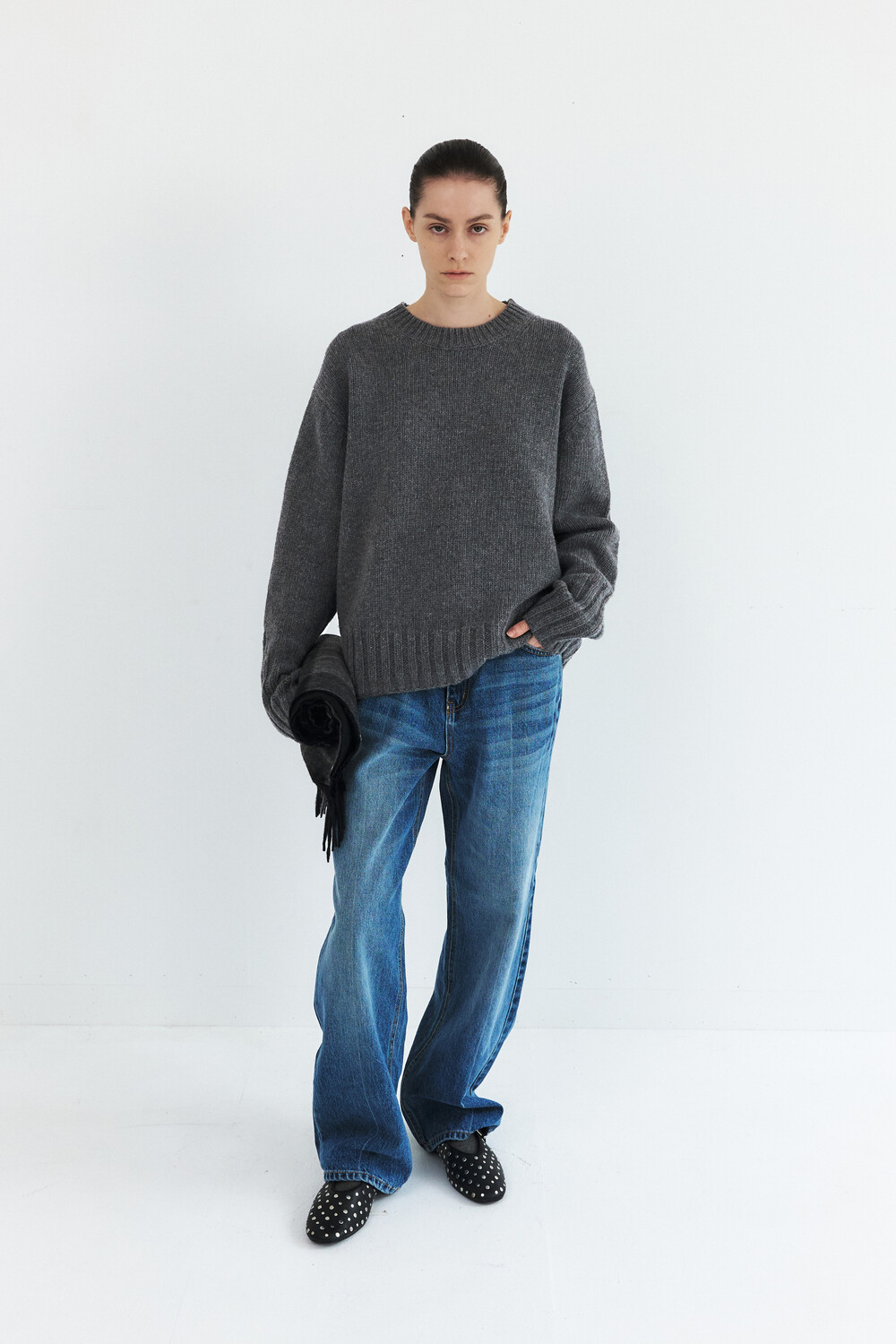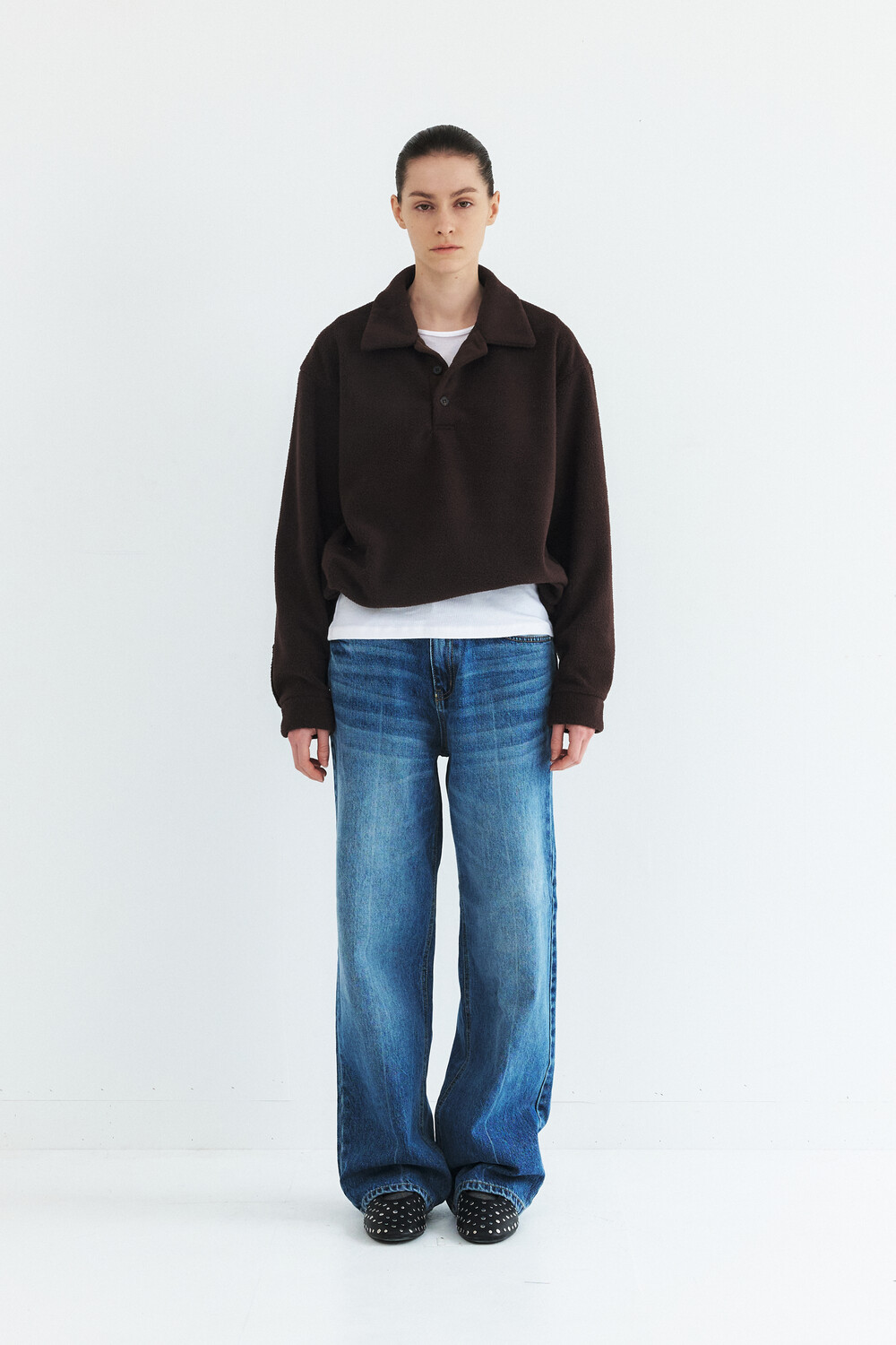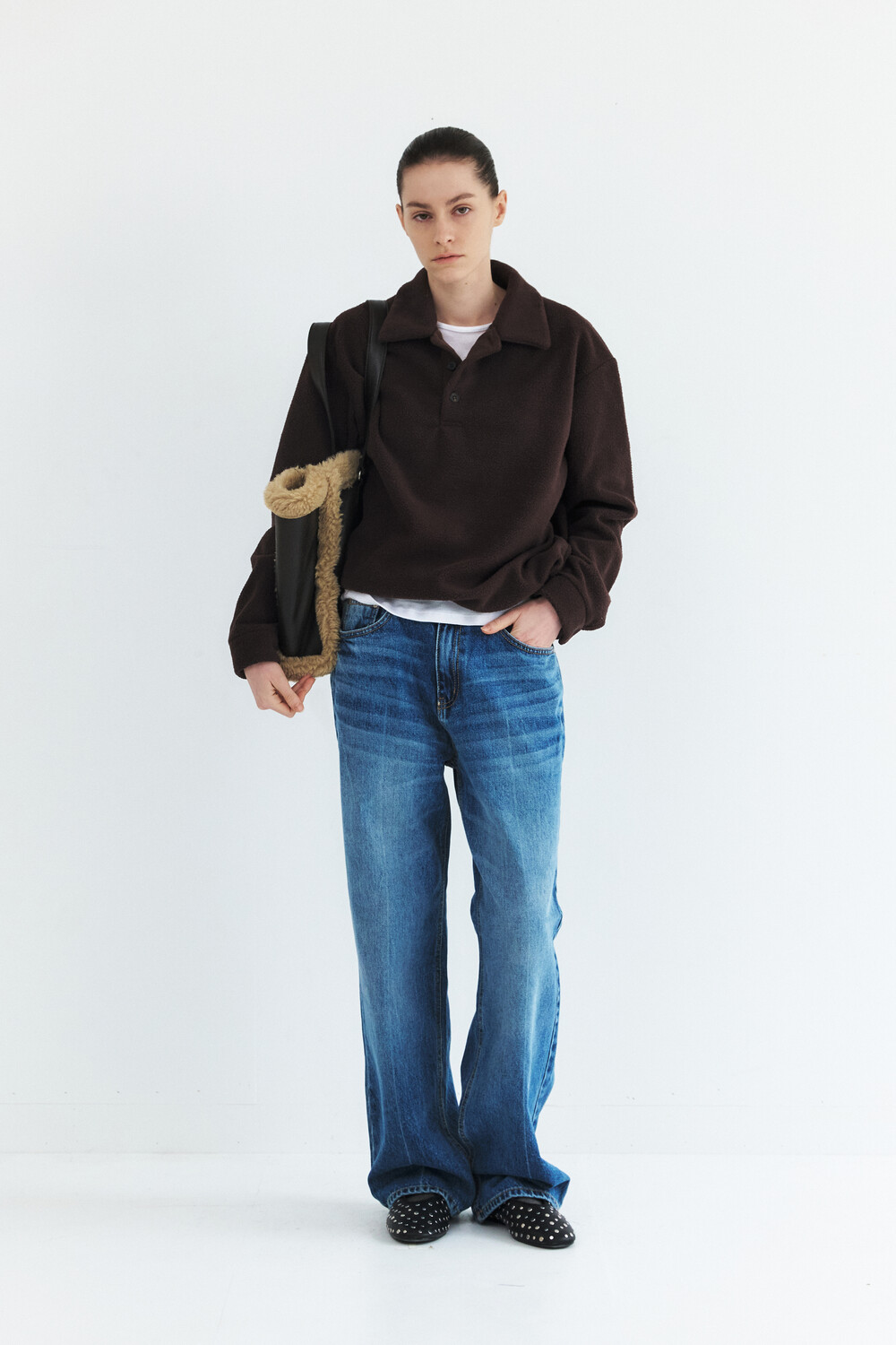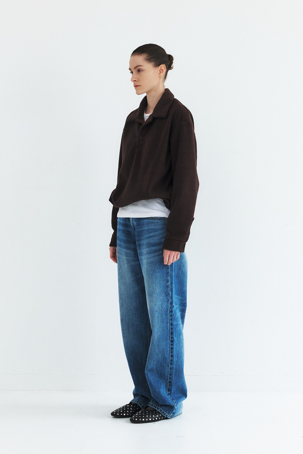 -레직기 라인의 워싱과 은은한게 노출되는 뒤쪽 절개가 특징인 데님 팬츠