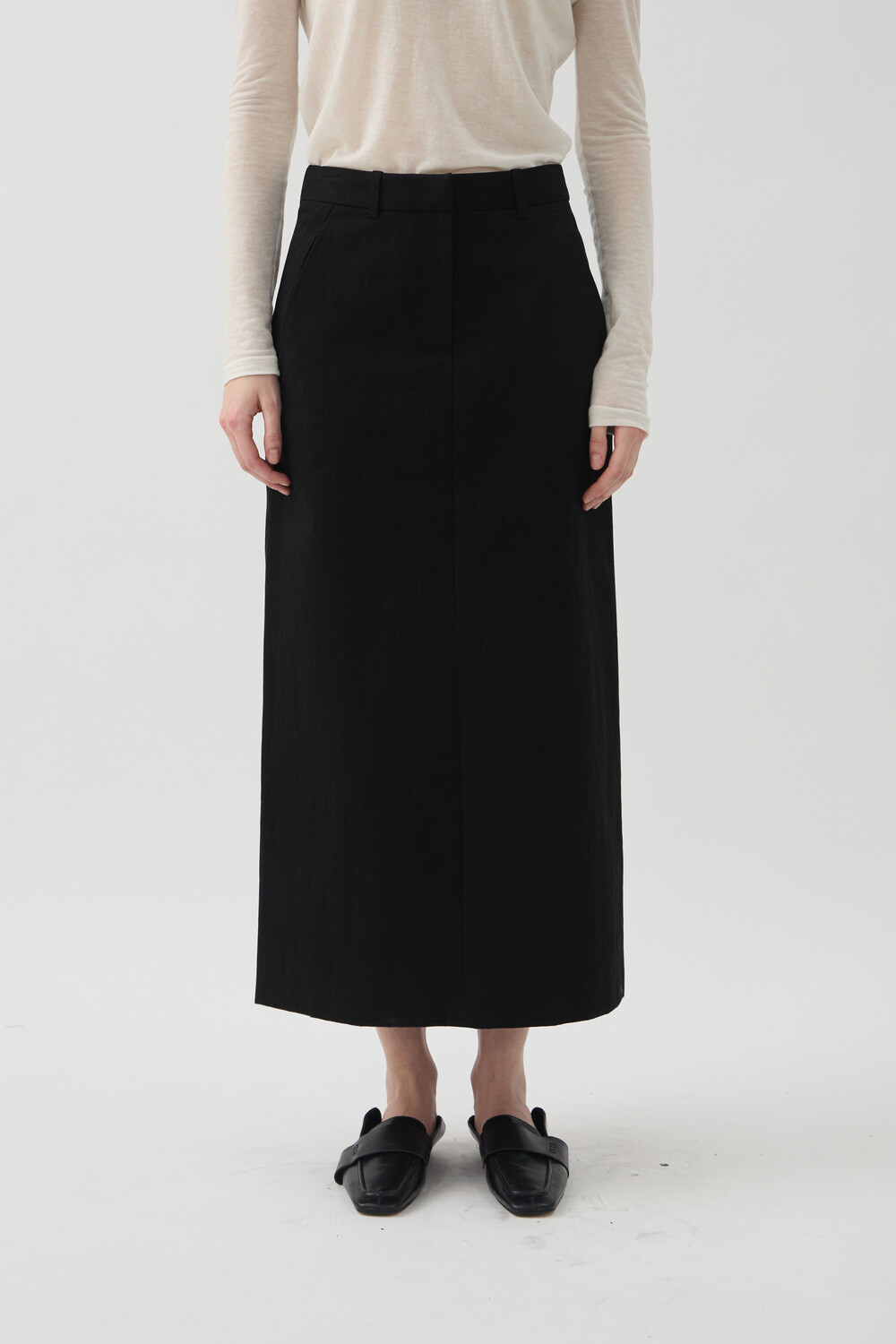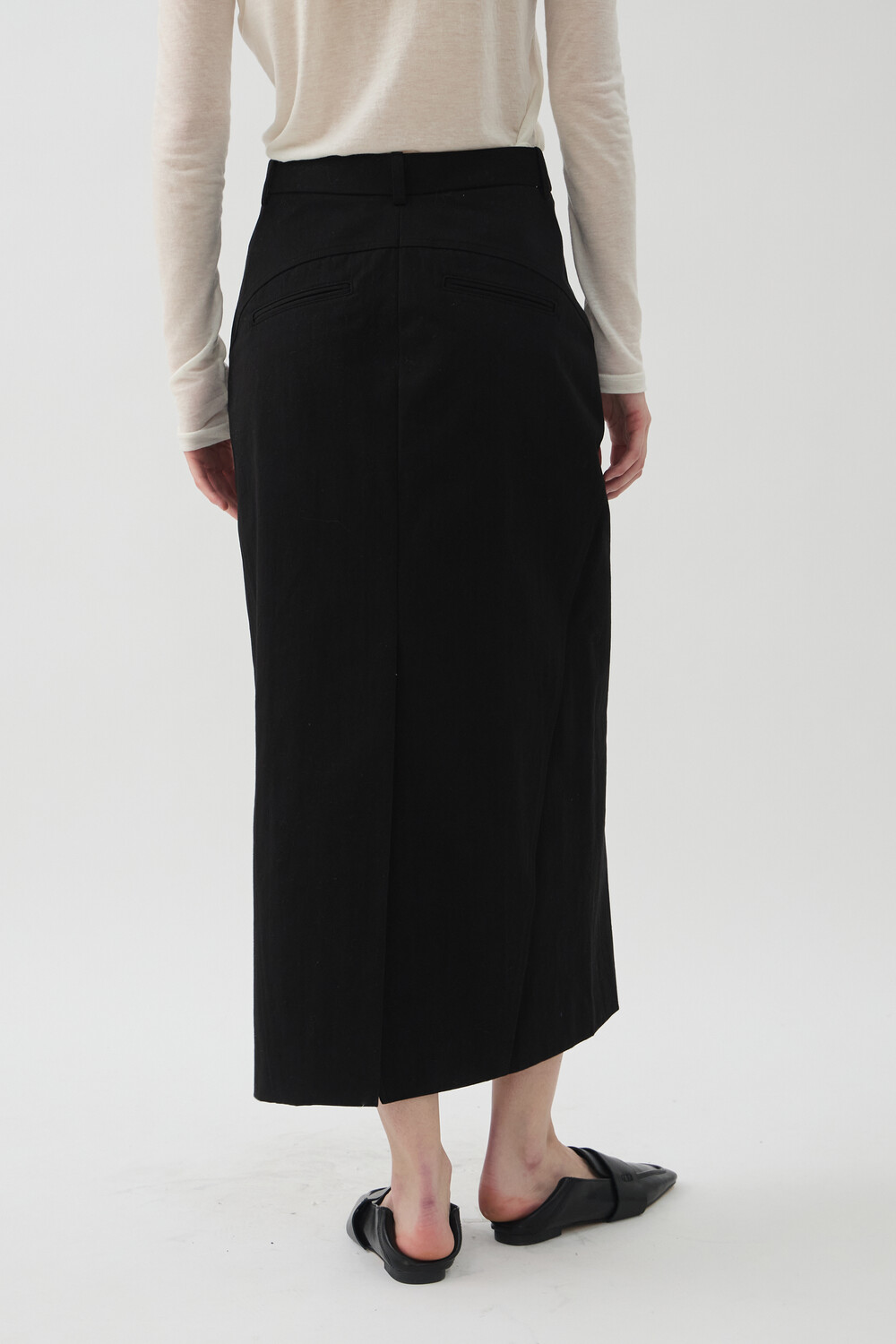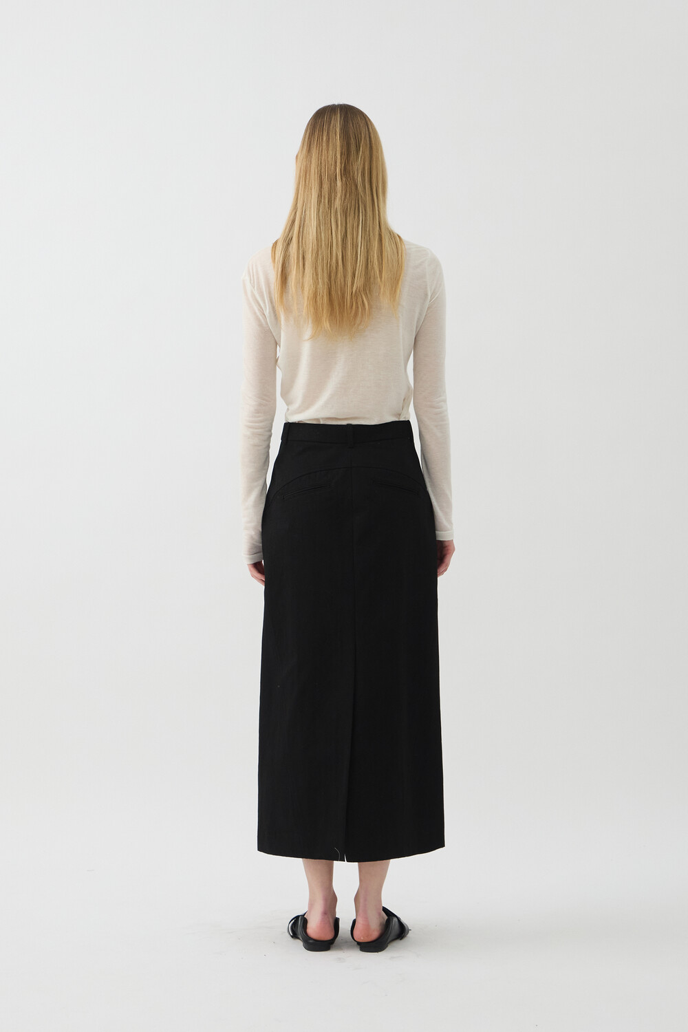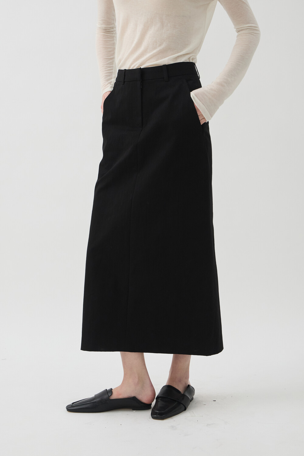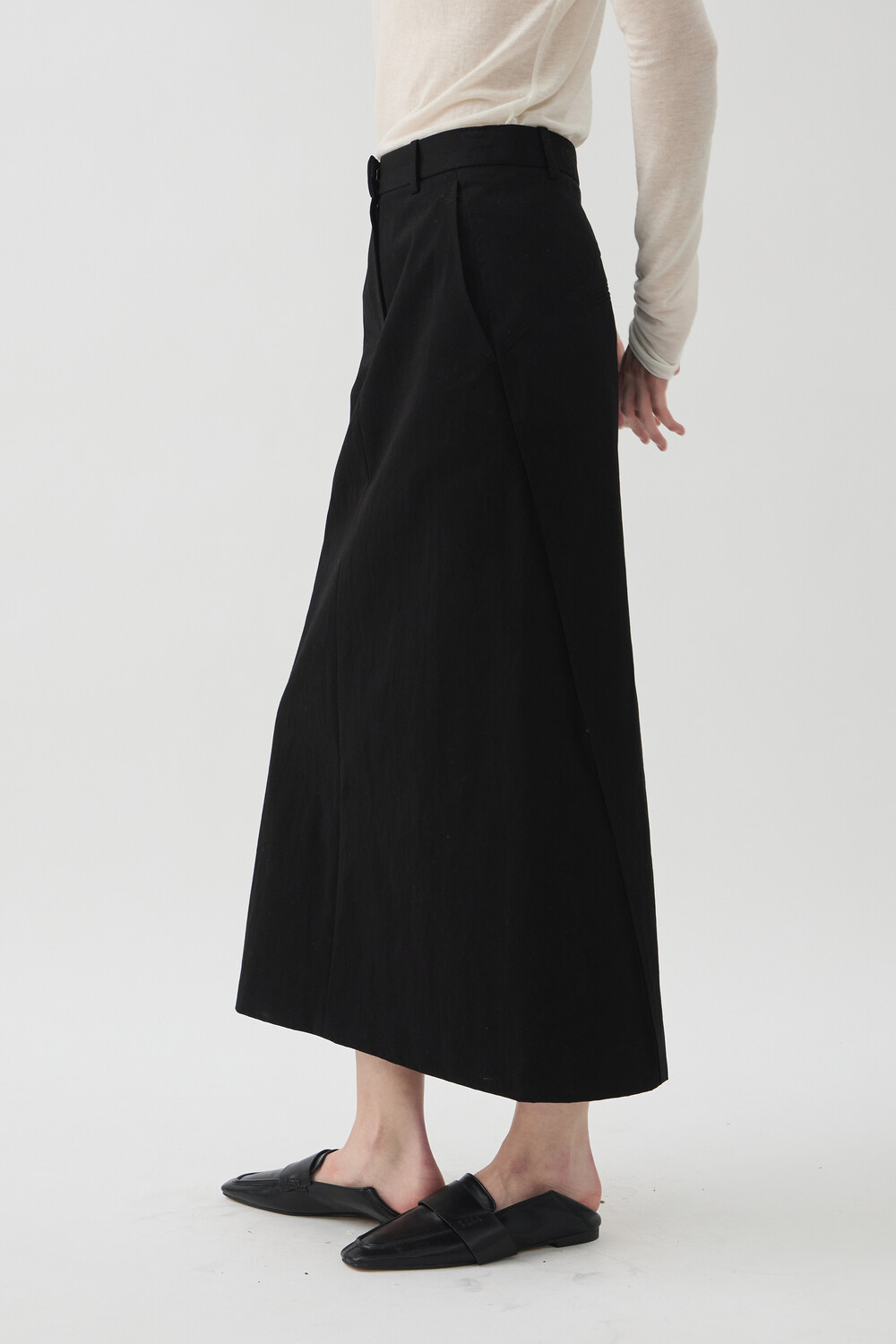 SLANT COTTON MAXI SKIRT - BLACK (W)