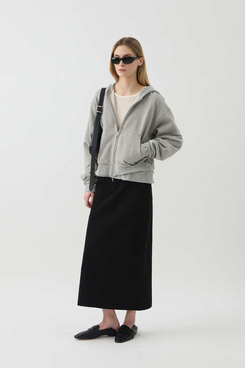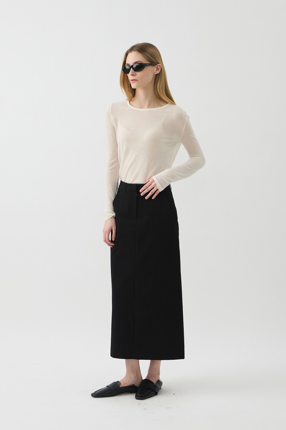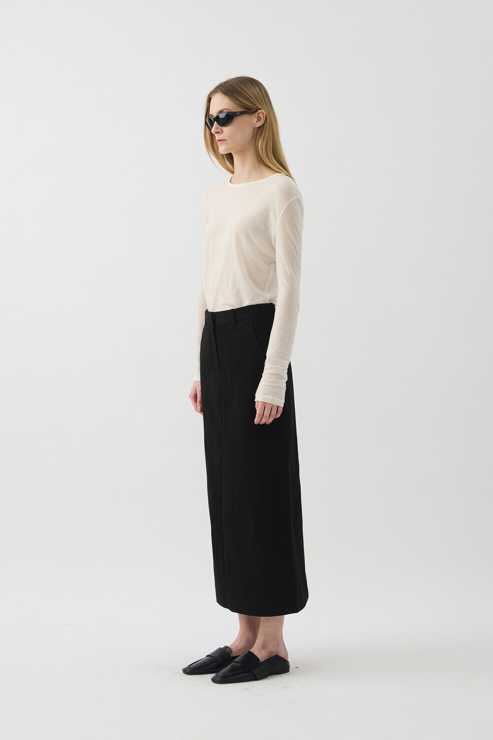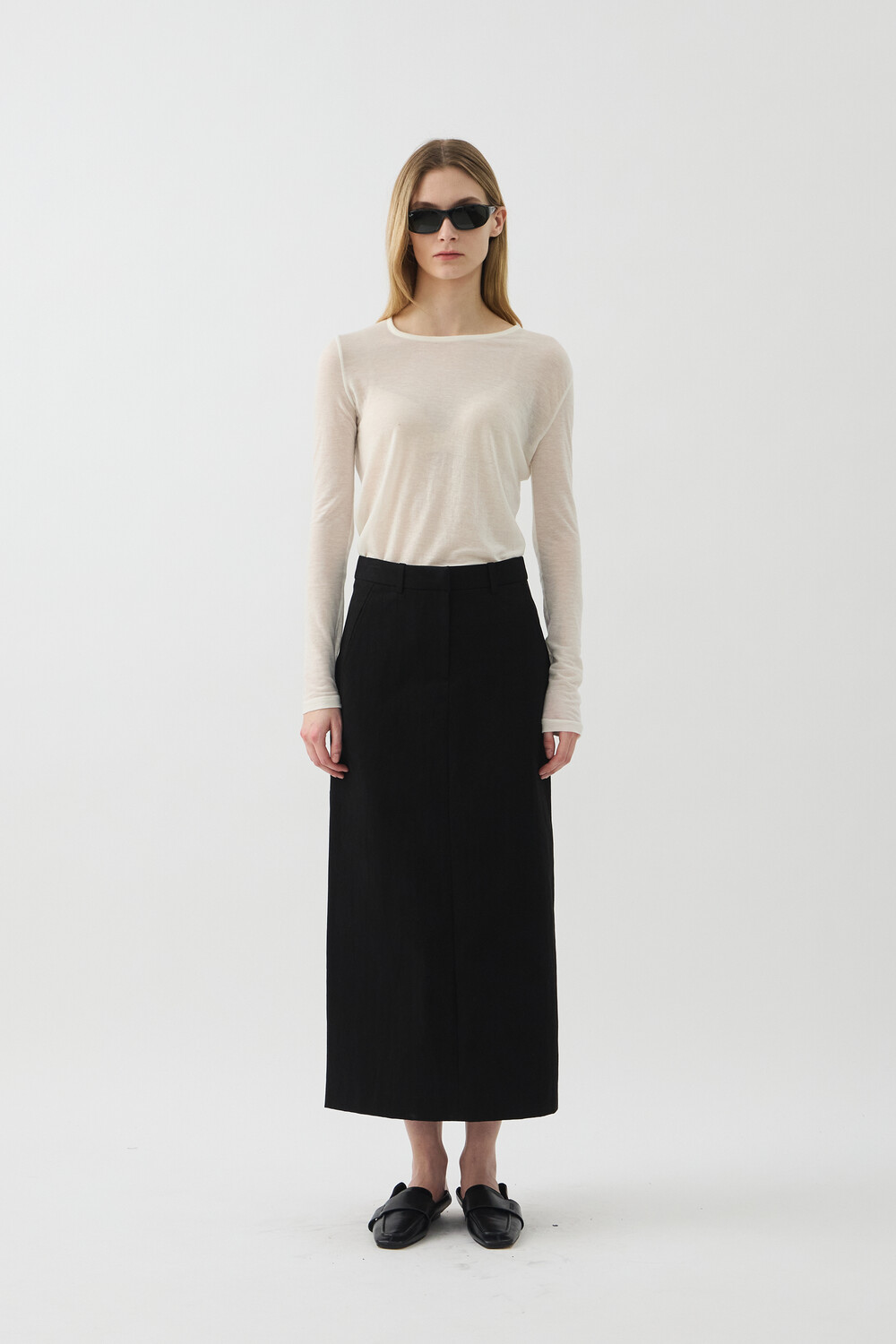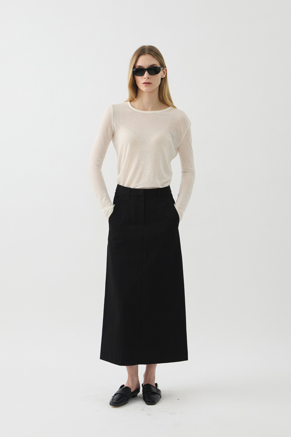 SLANT COTTON MAXI SKIRT - BLACK (W)