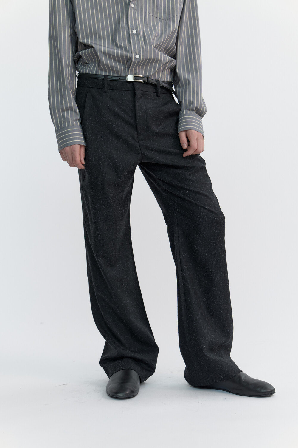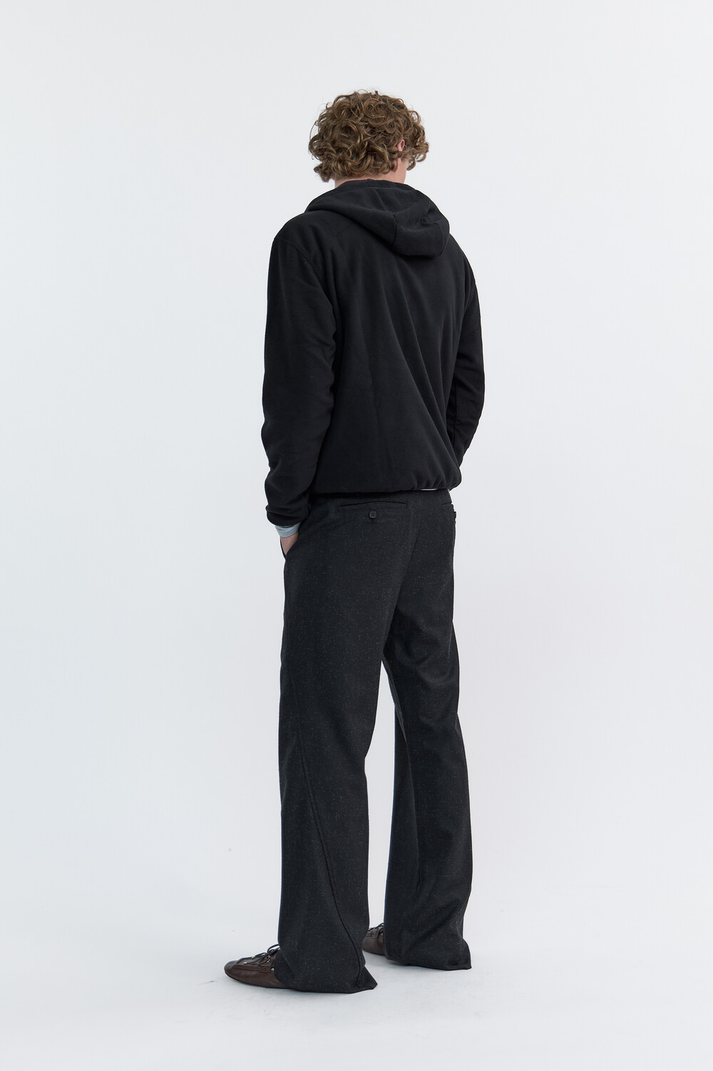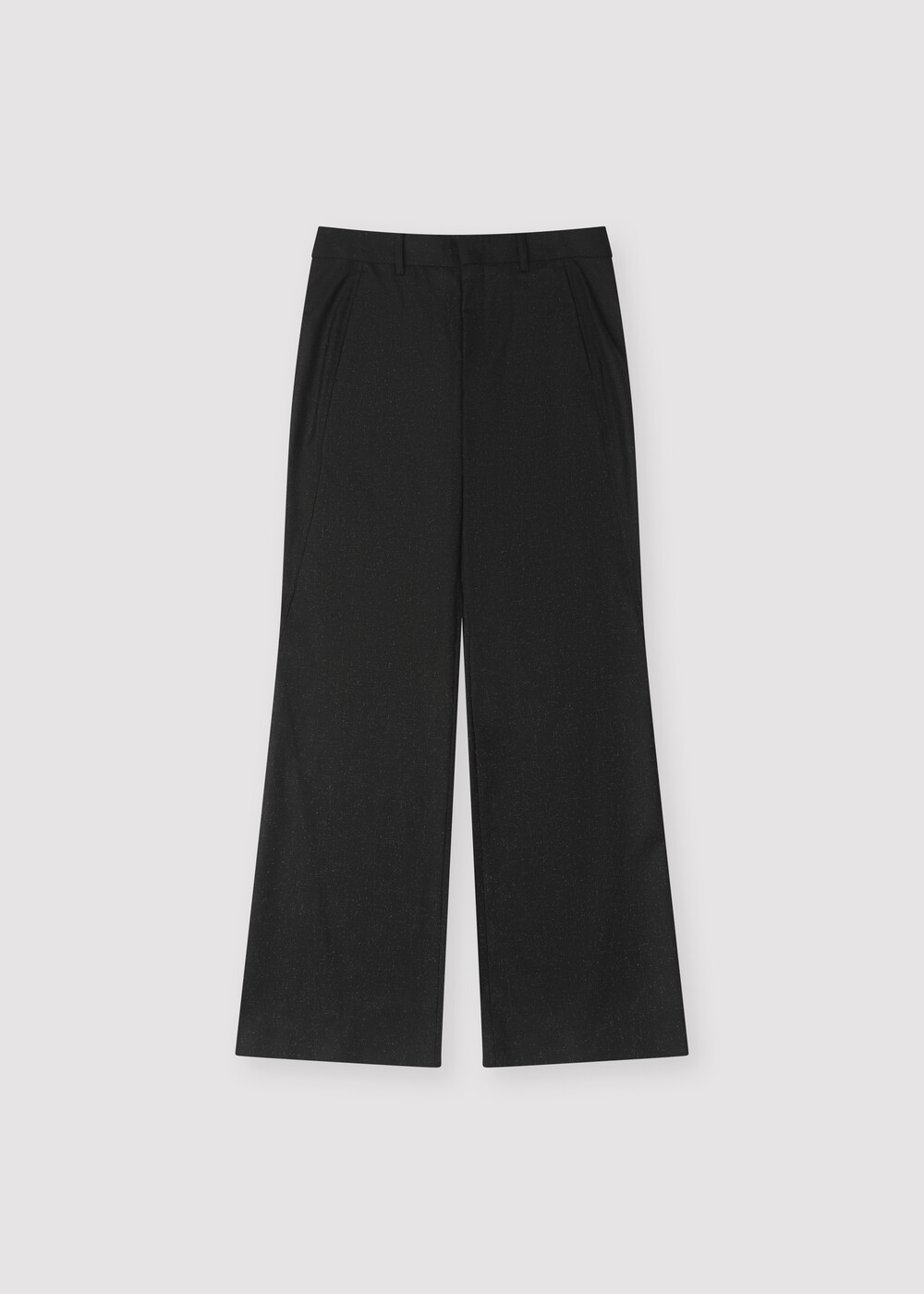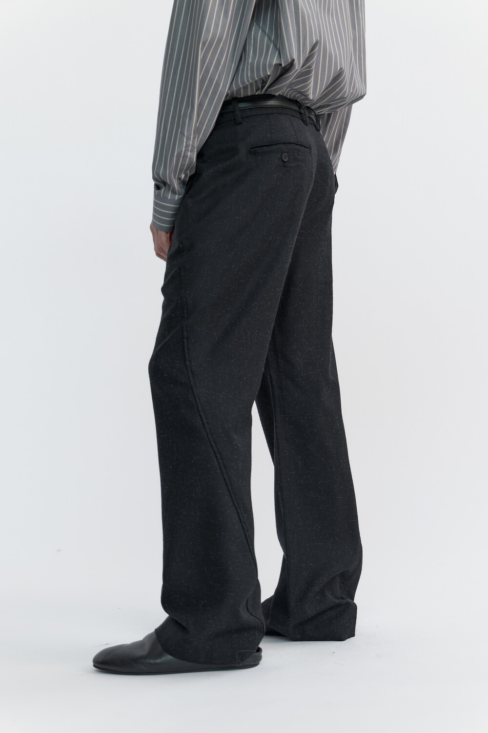 SLANT FLARE WOOL SILK TROUSERS - NEP BLACK
