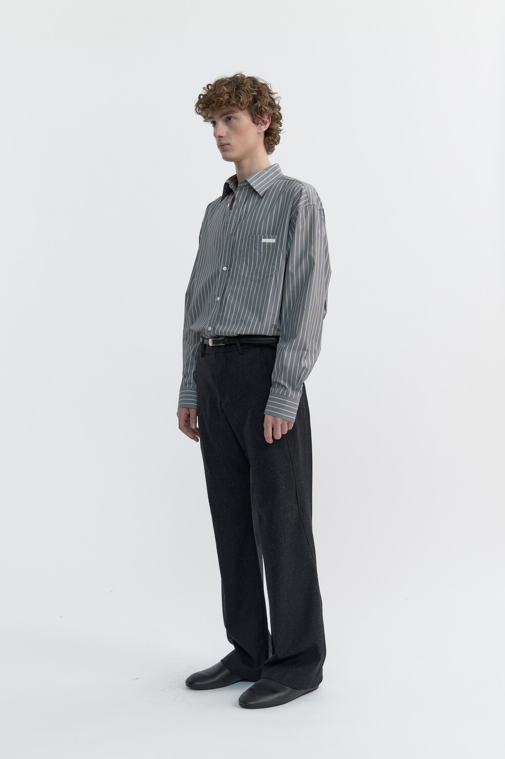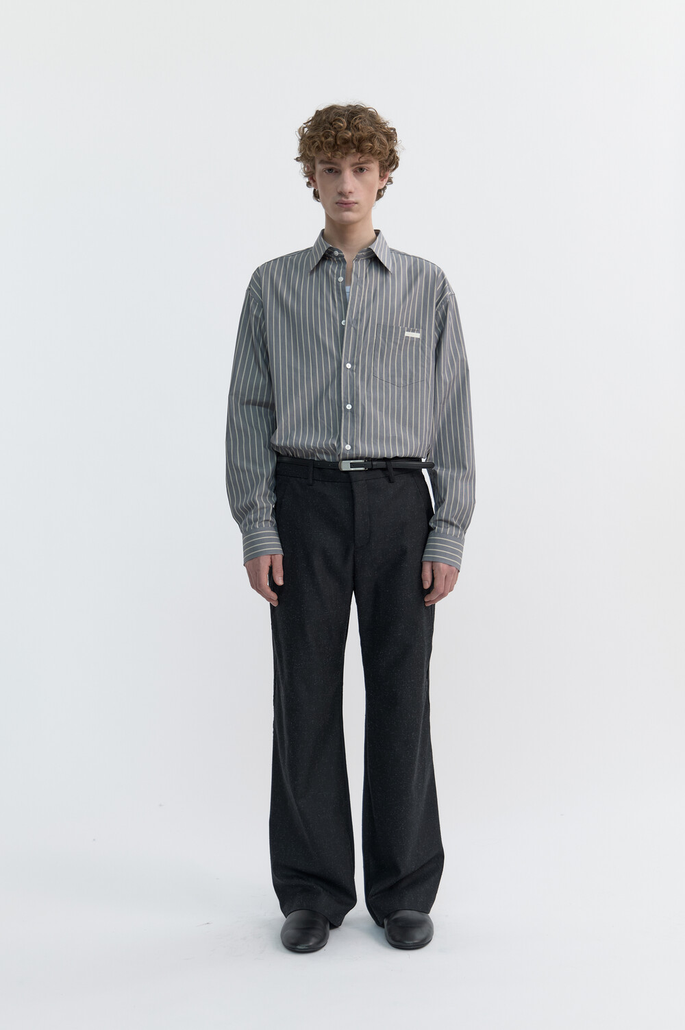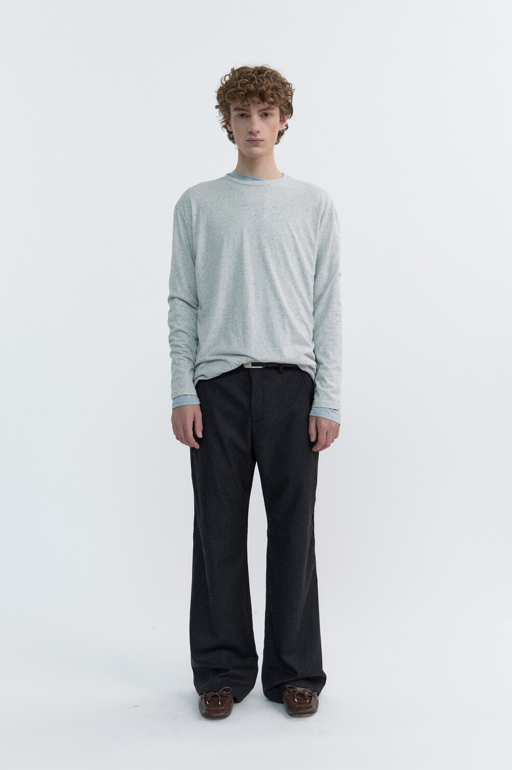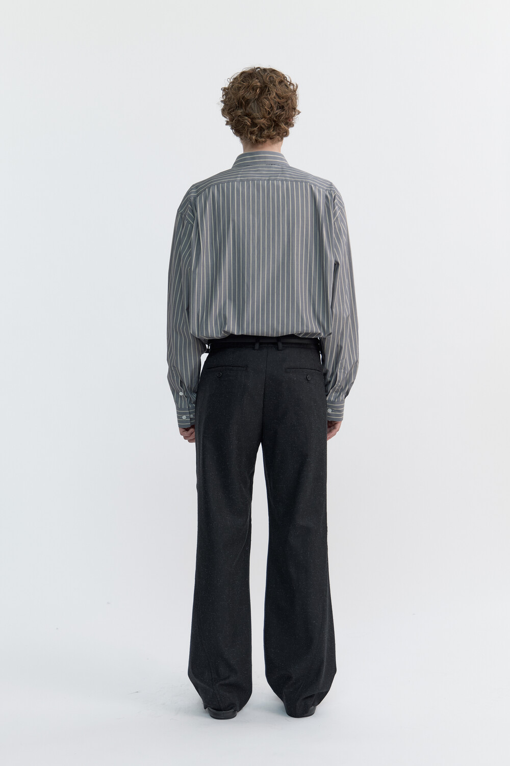 SLANT FLARE WOOL SILK TROUSERS - NEP BLACK
