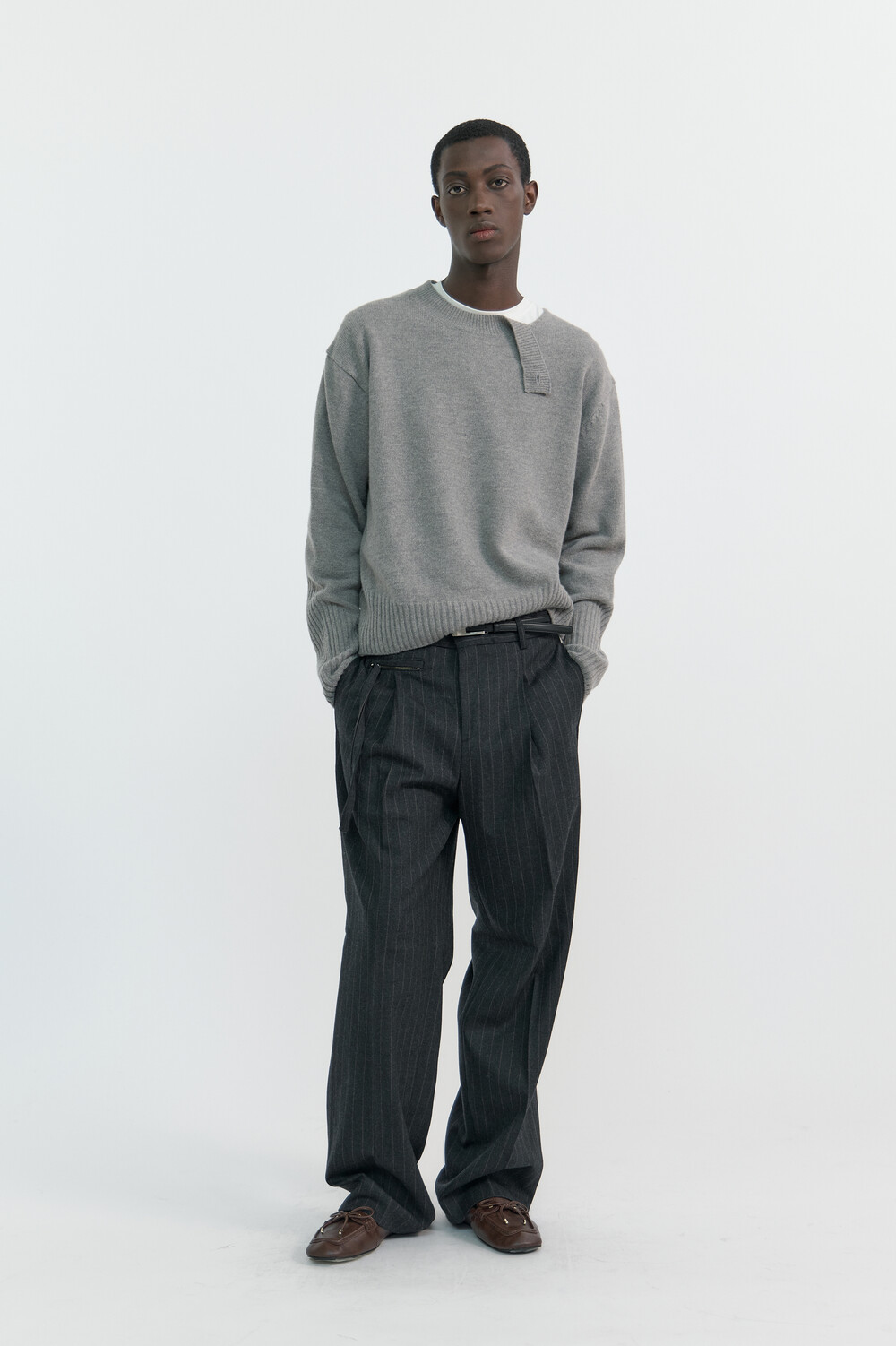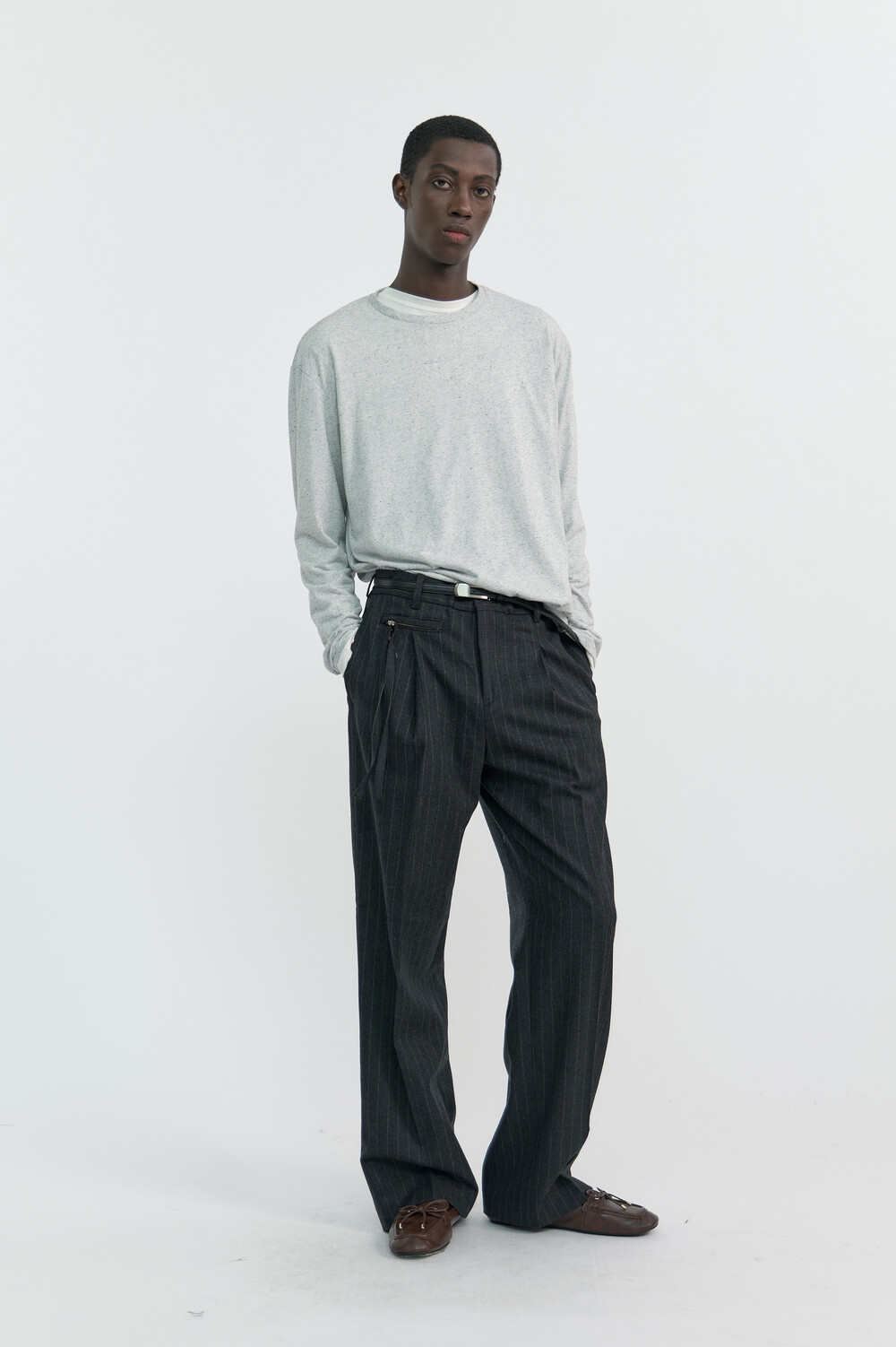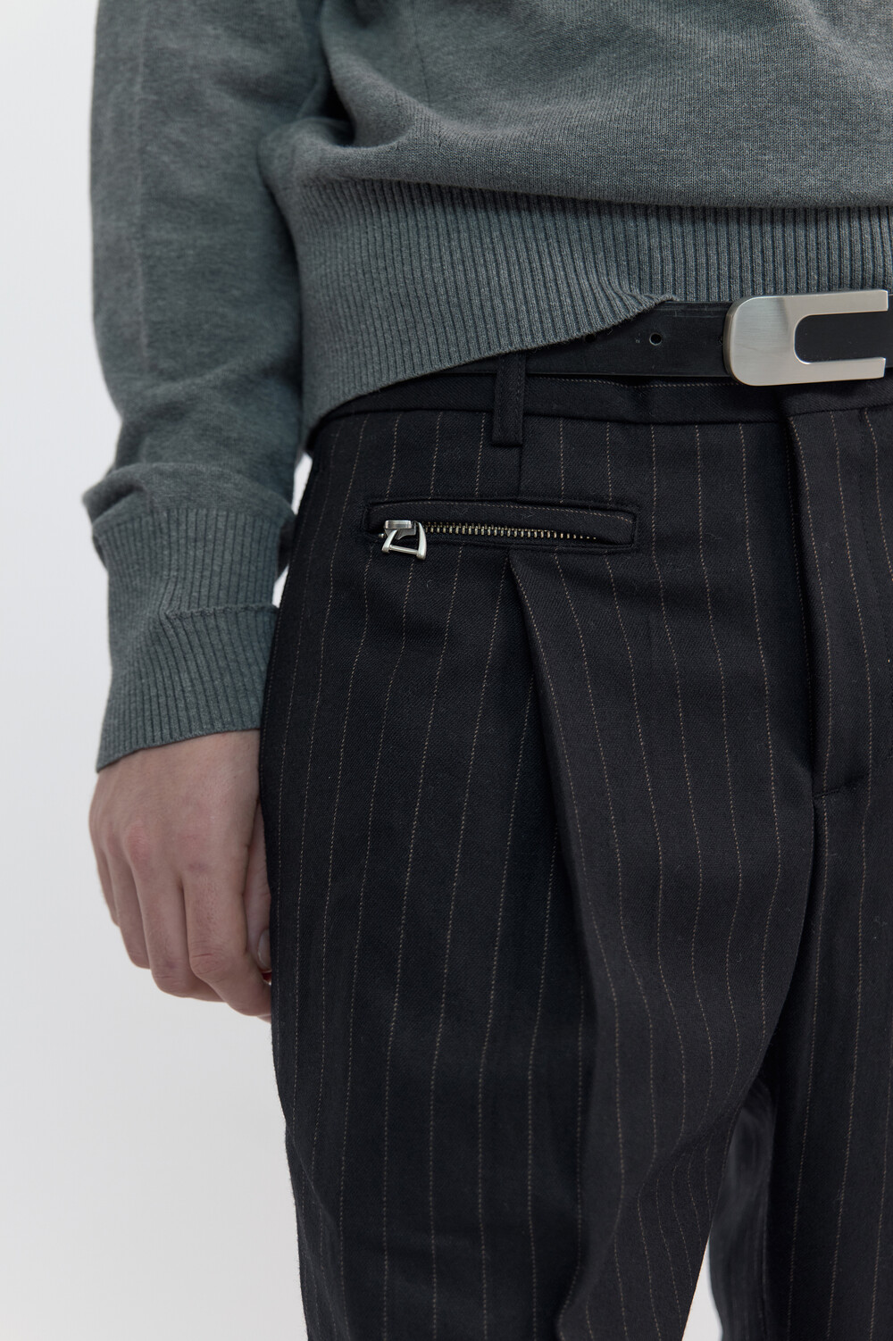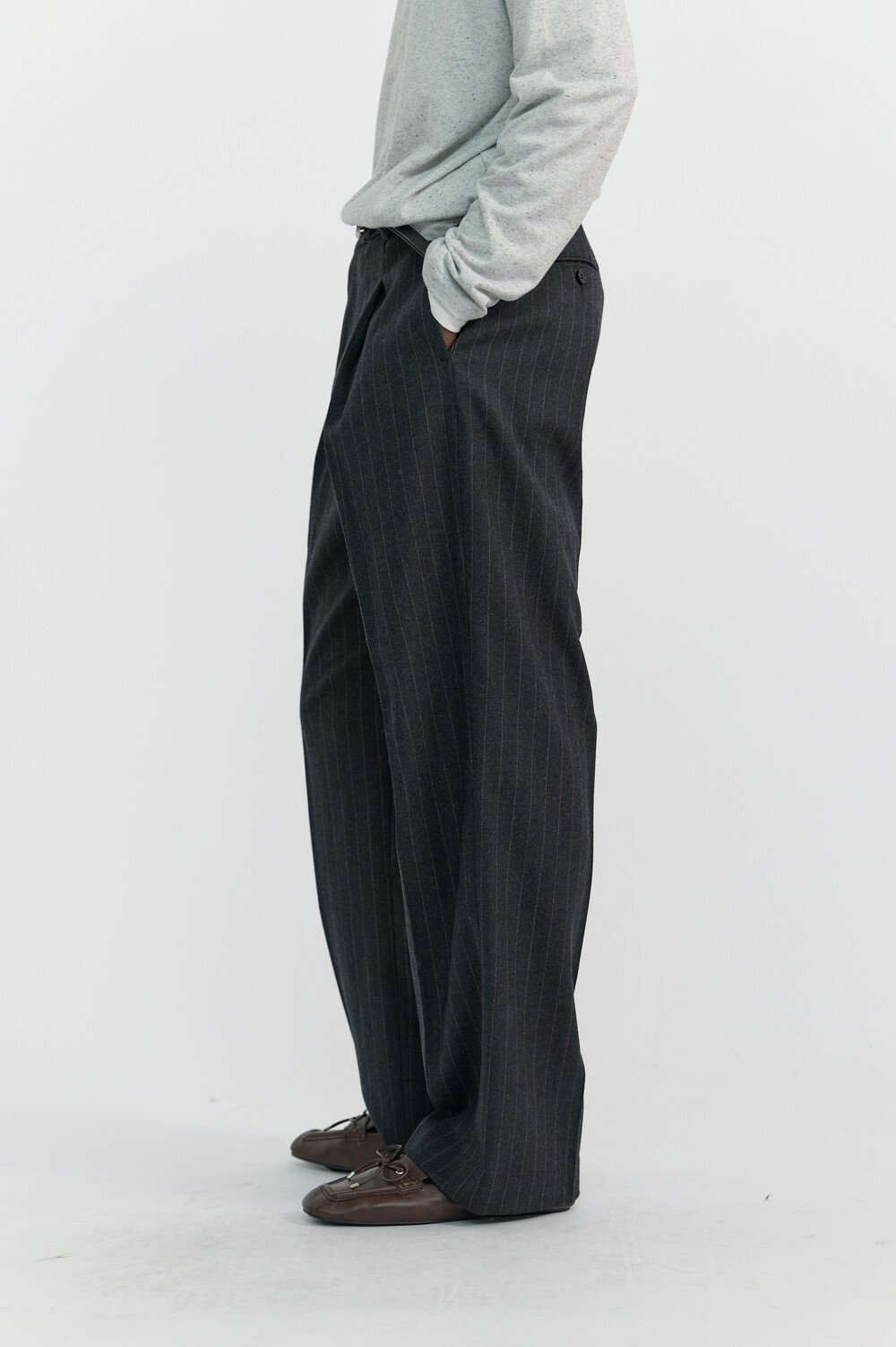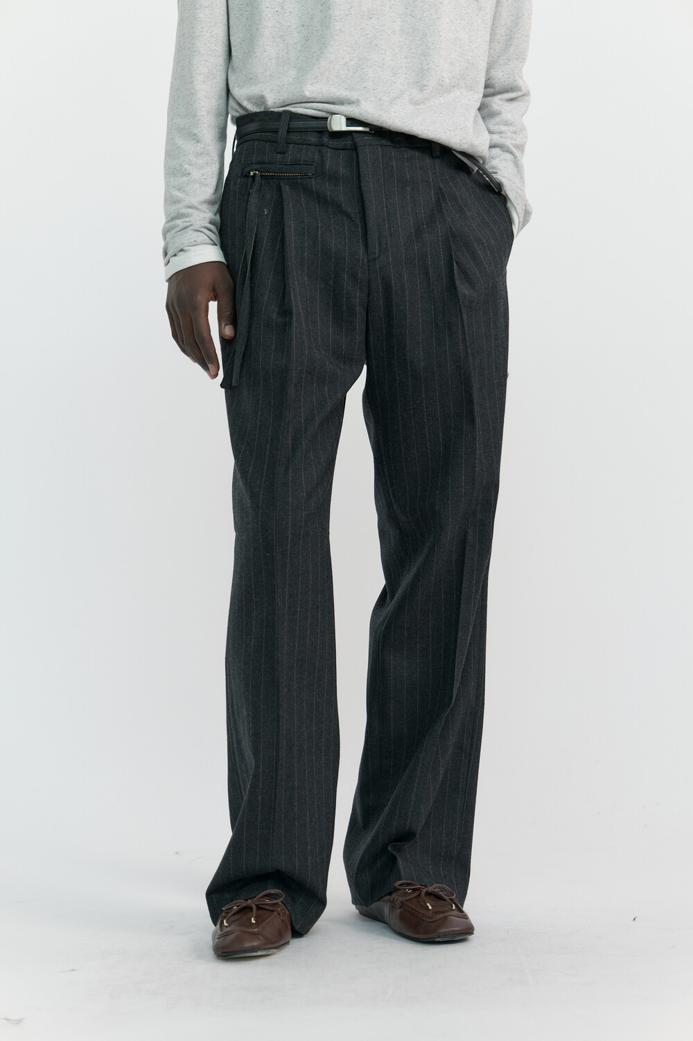 PULLER STRIPE WOOL TROUSERS - CHARCOAL