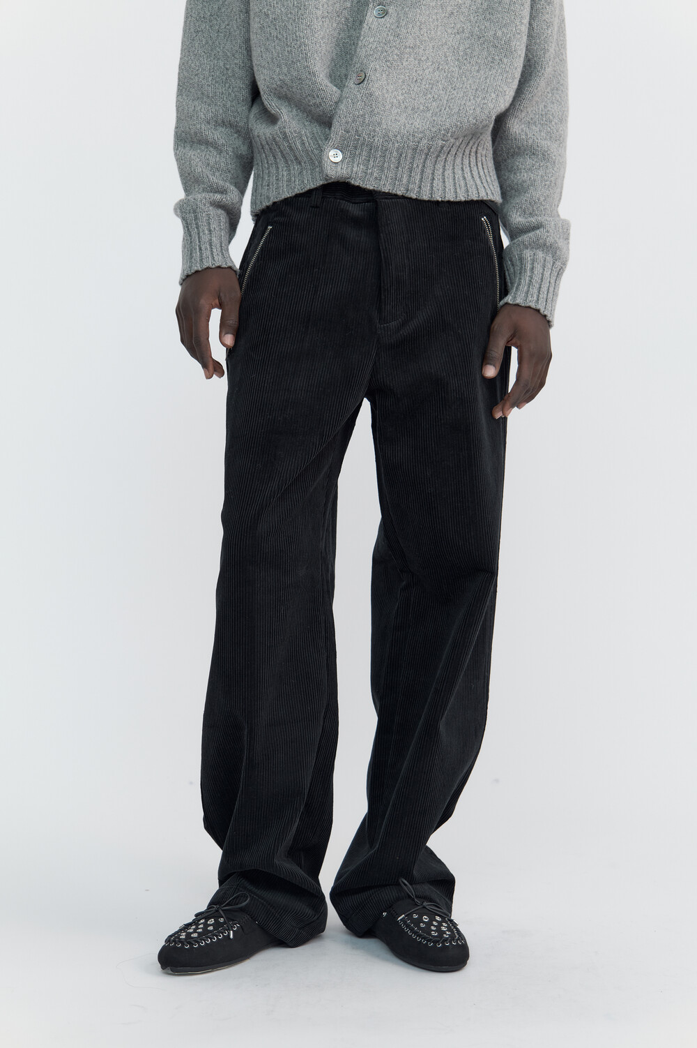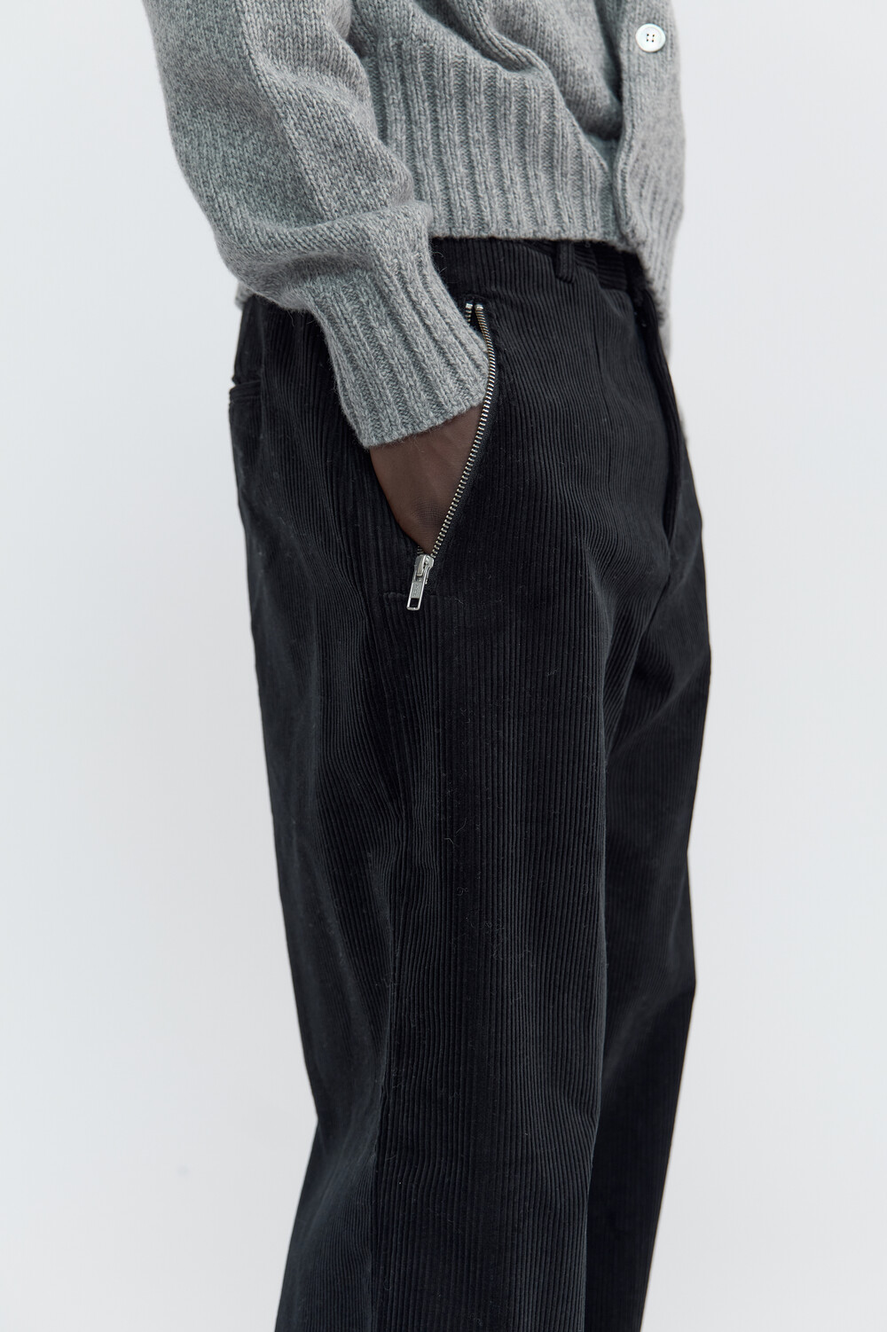ZIP-POCKET CODUROY TROUSERS - BLACK