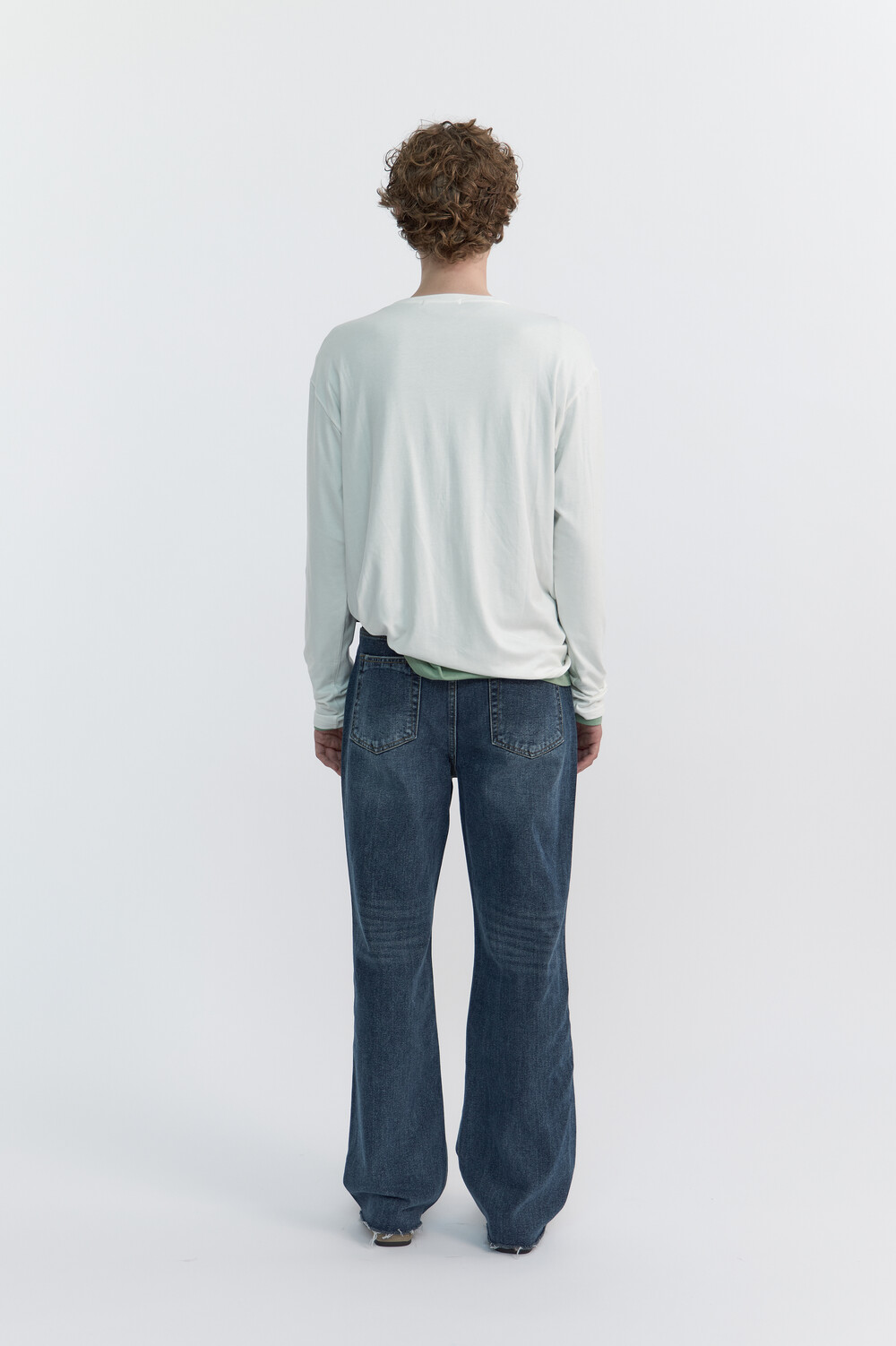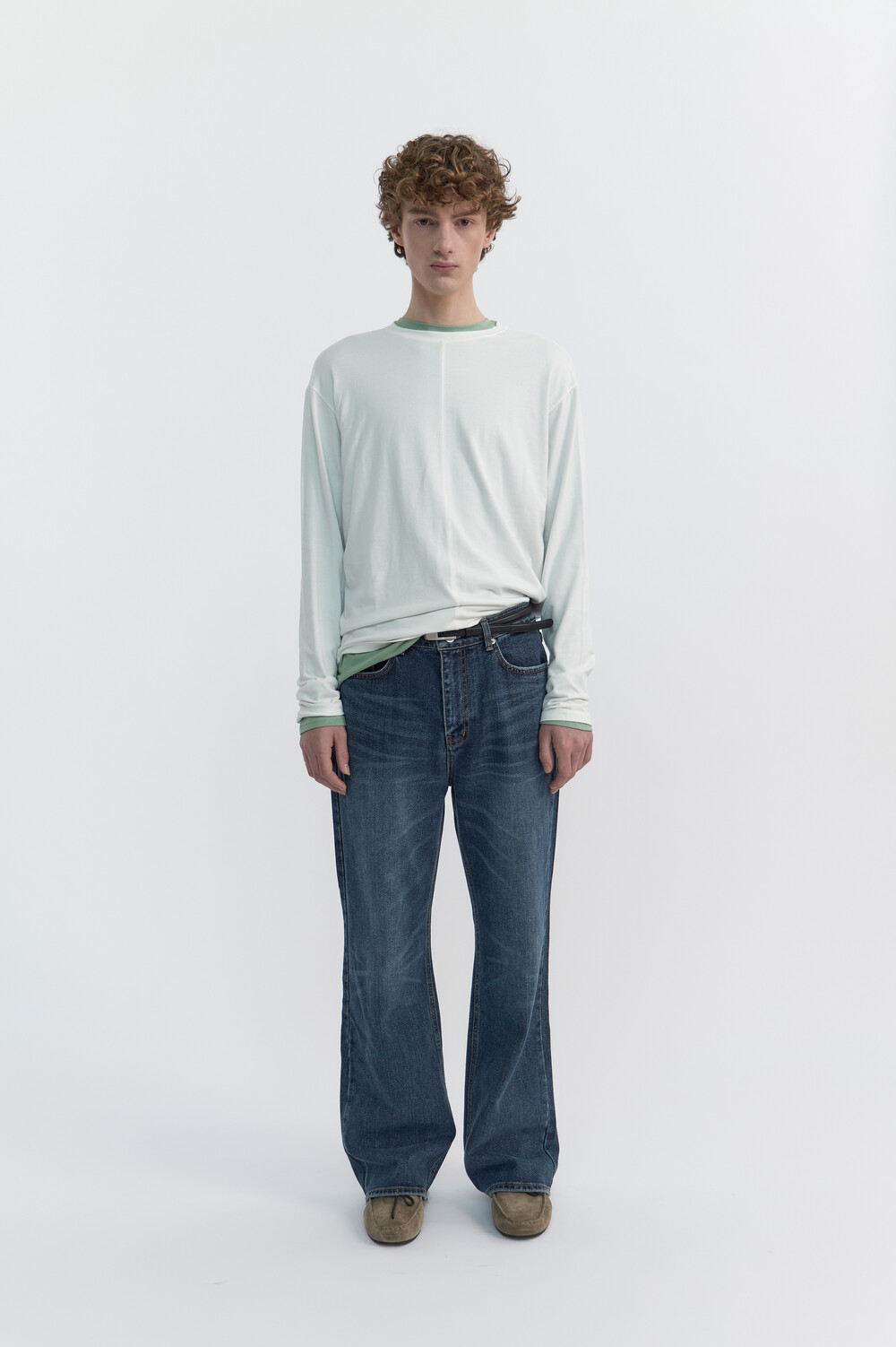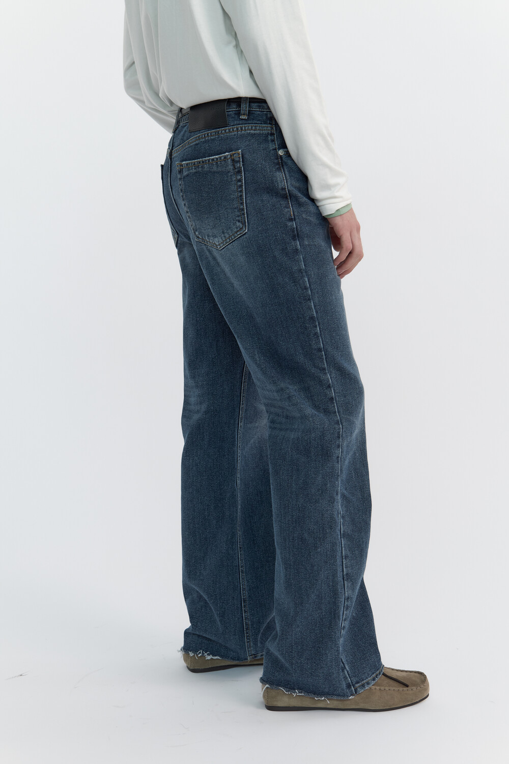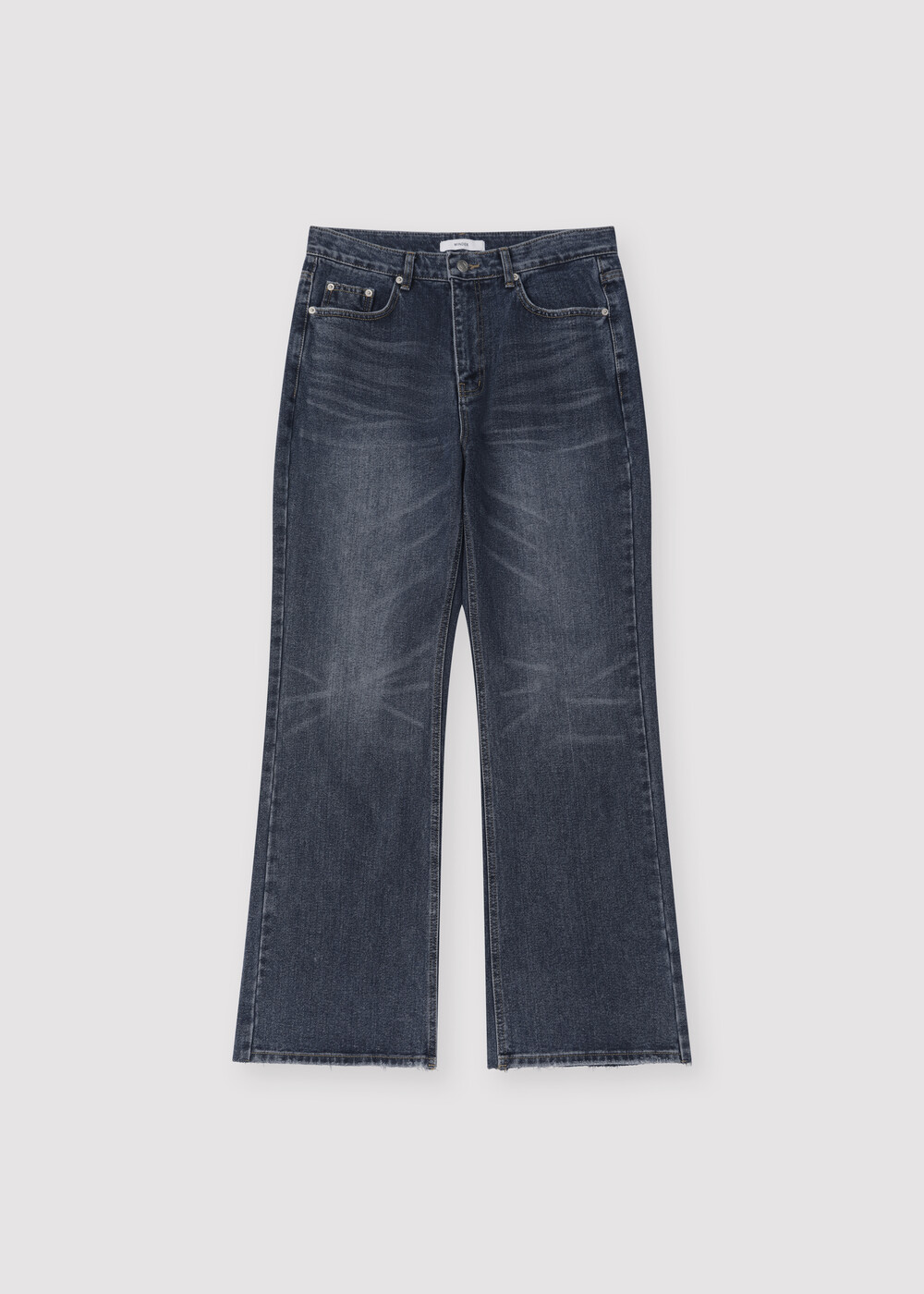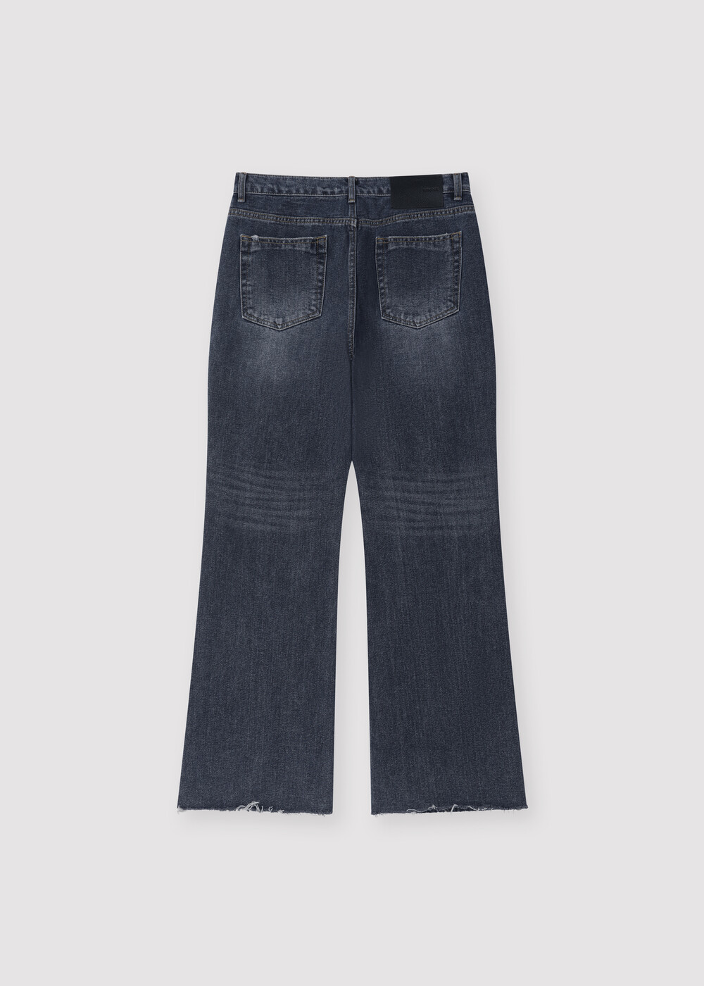 CASSETTE SEMI-FLARE DENIM PANTS - WASHED NAVY