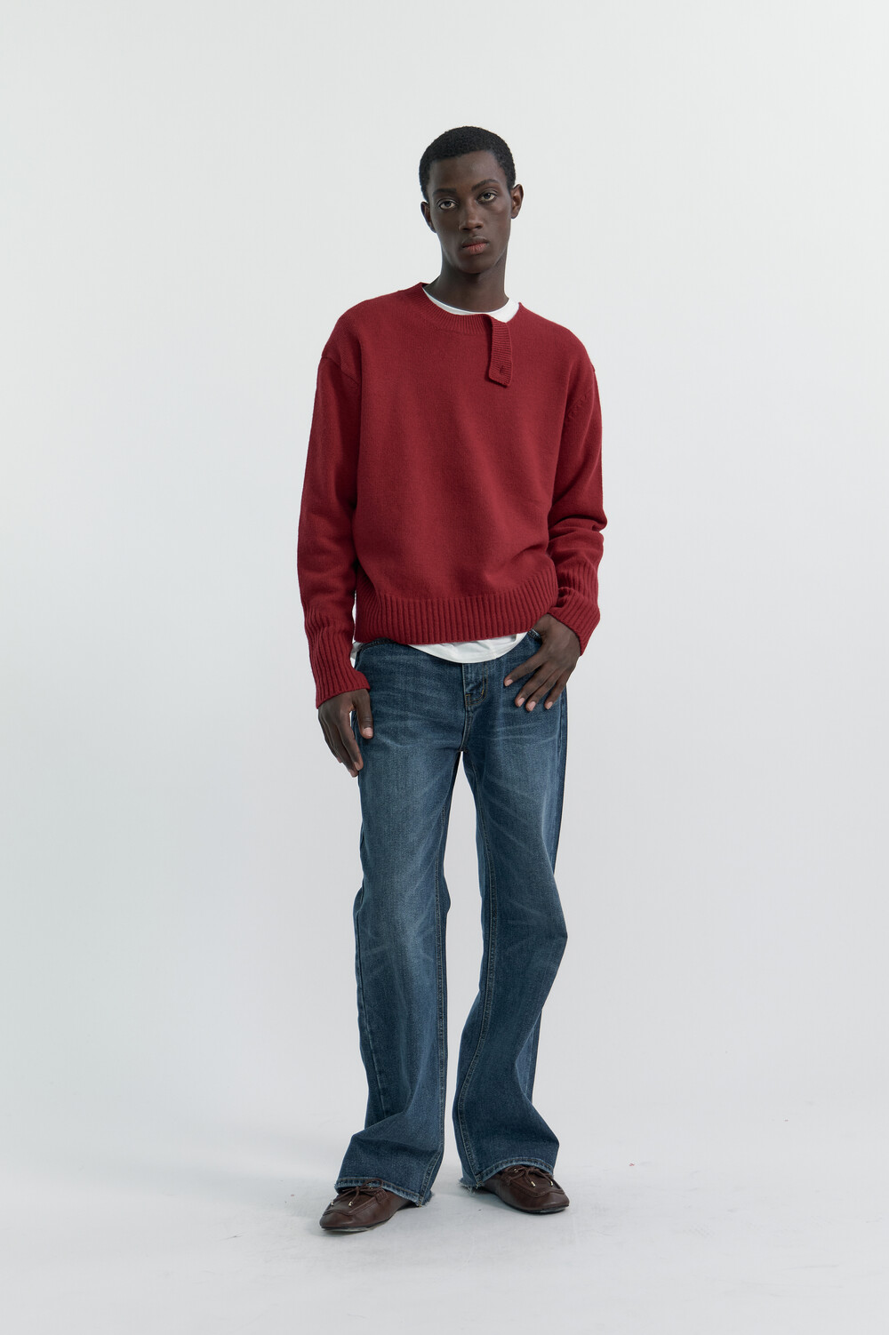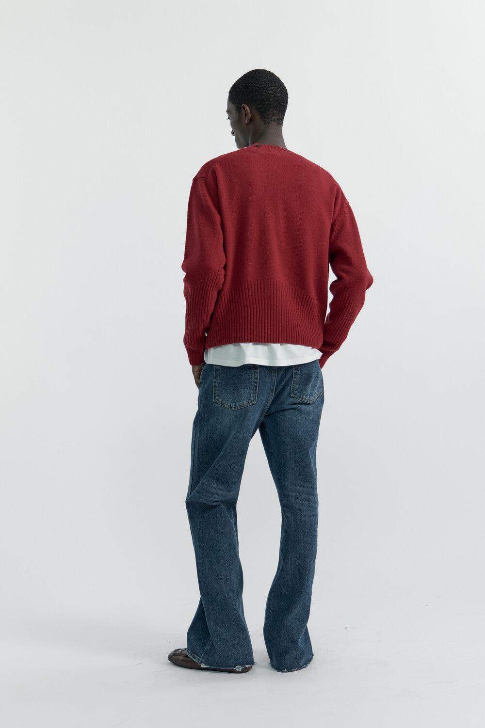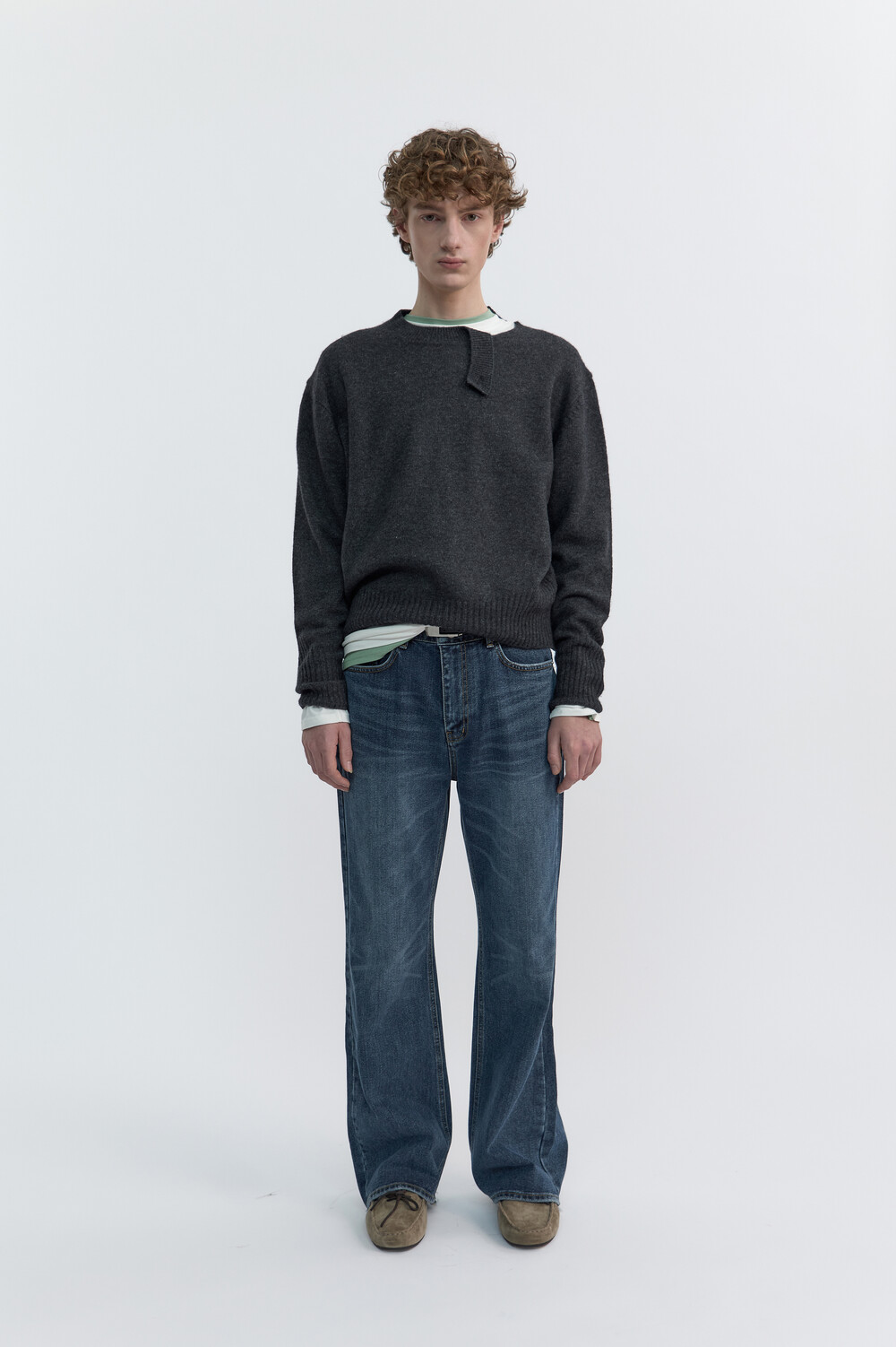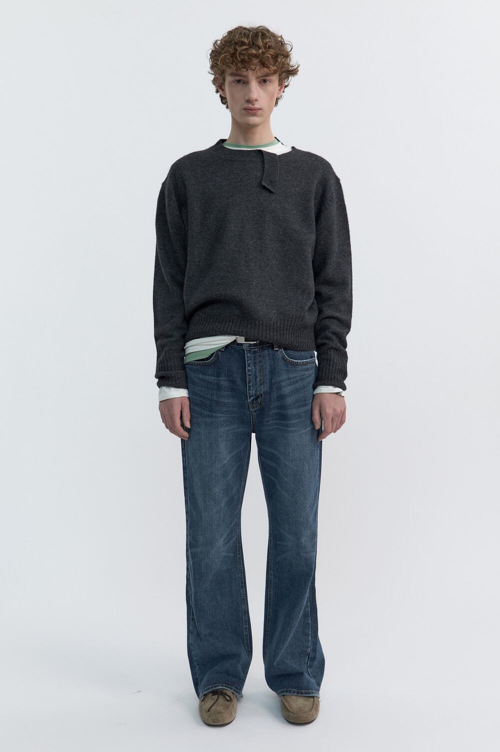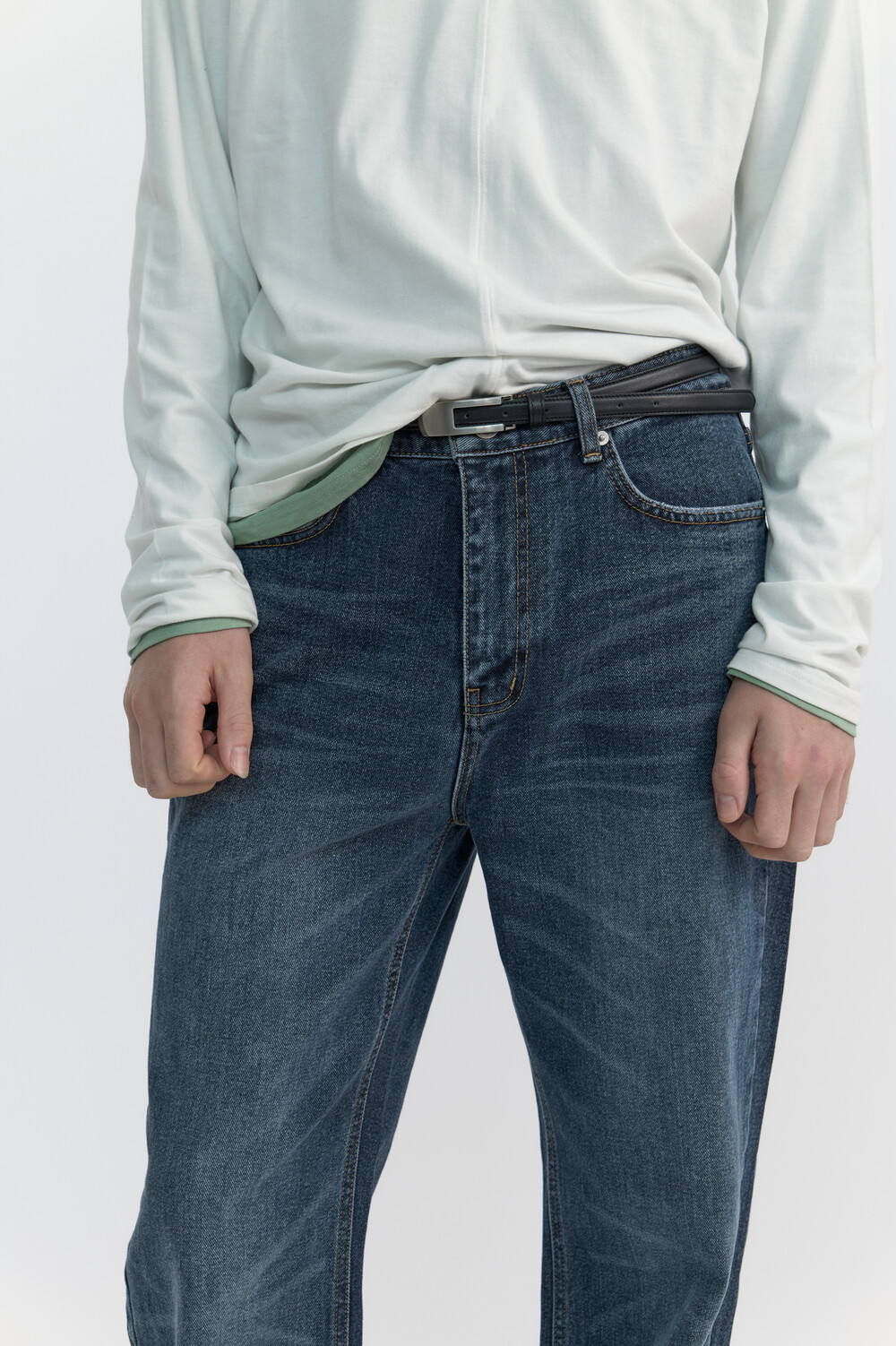 CASSETTE SEMI-FLARE DENIM PANTS - WASHED NAVY