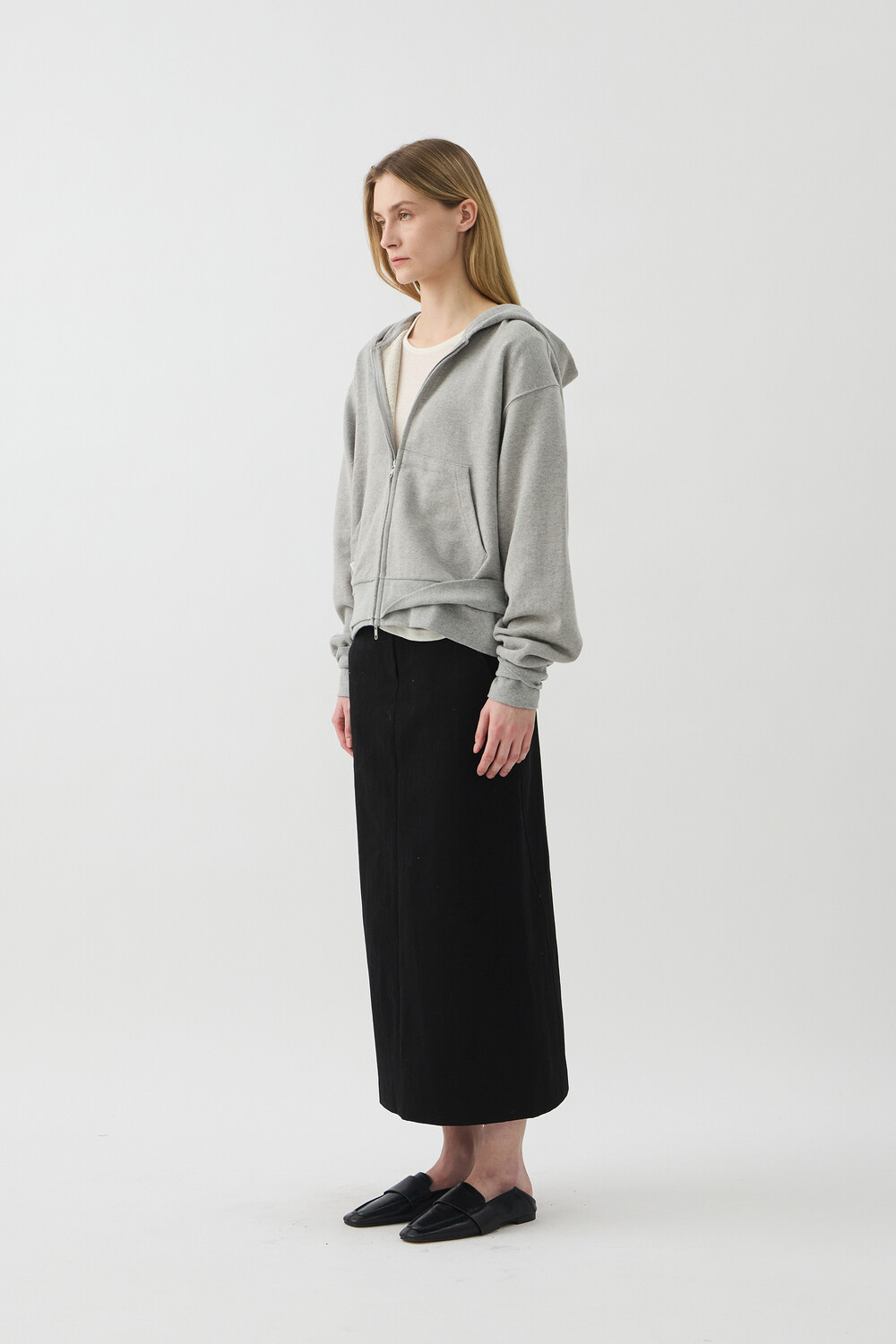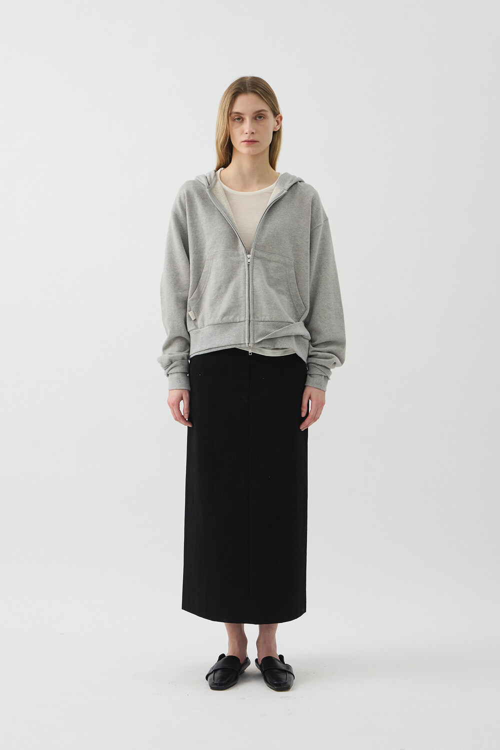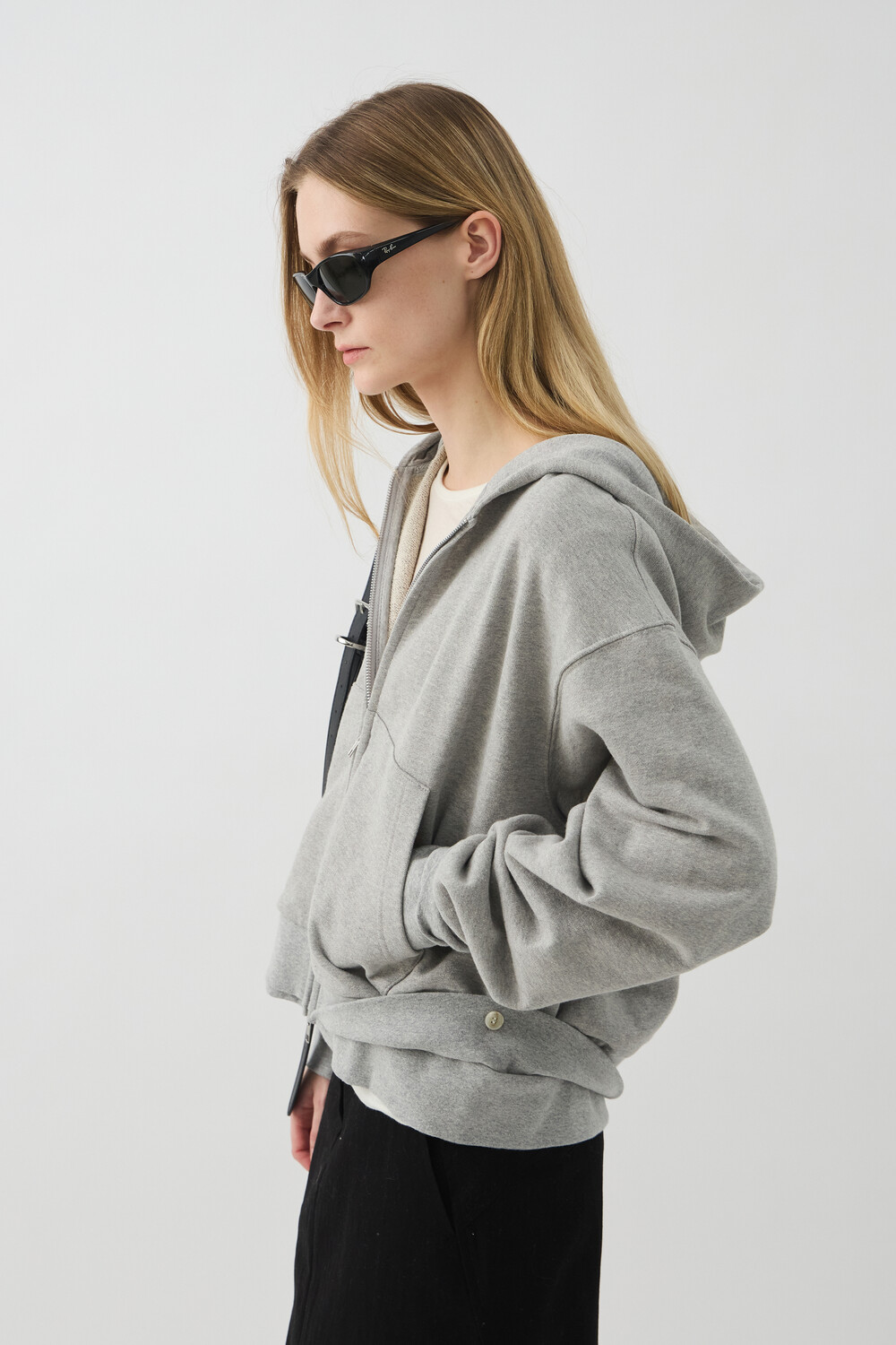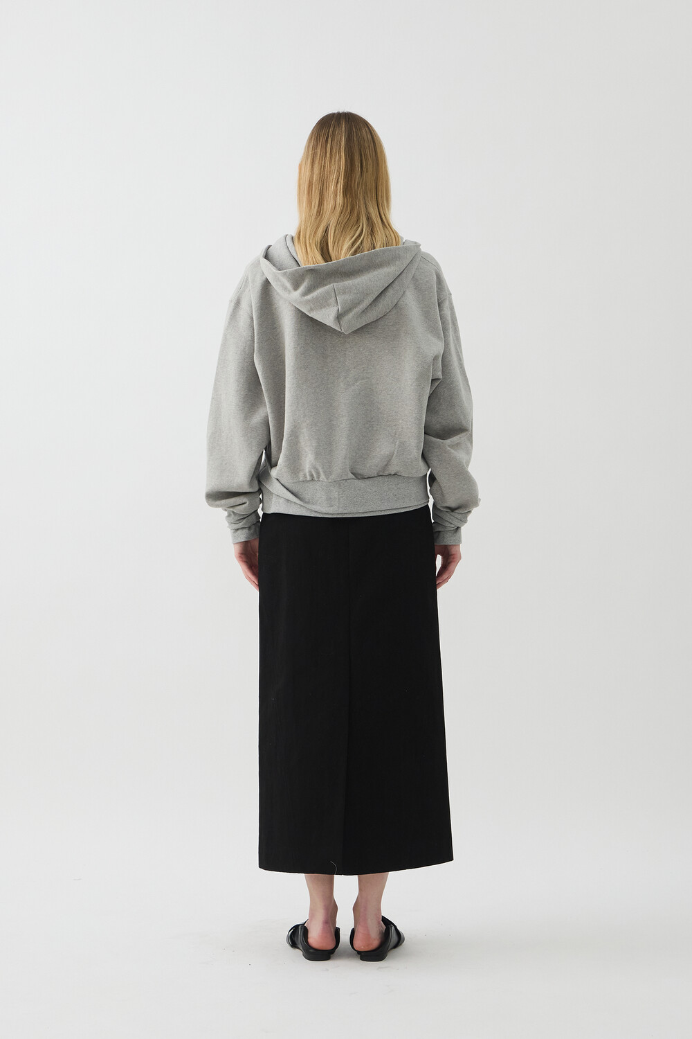 DOUBLE-RIB CROP HOODIE JACKET - MELANGE GREY (W)