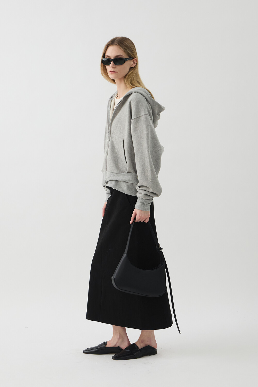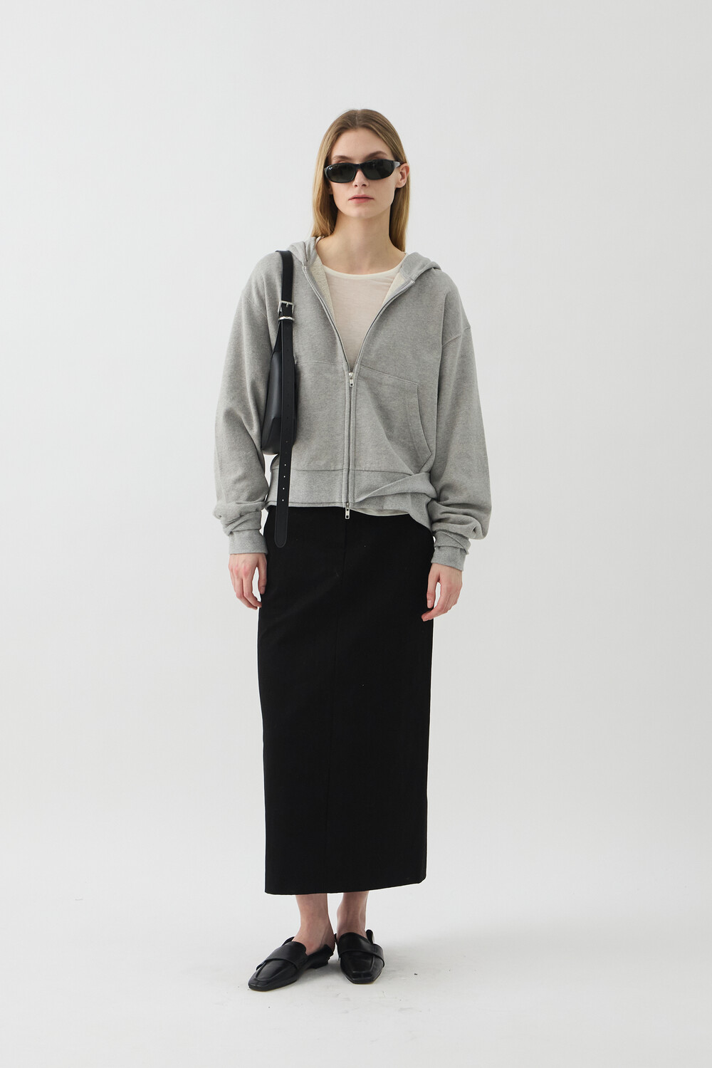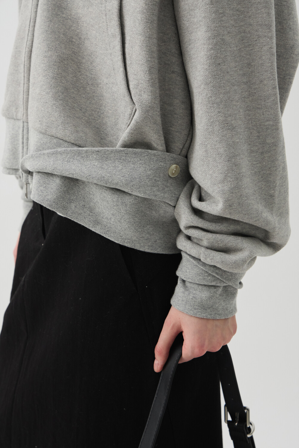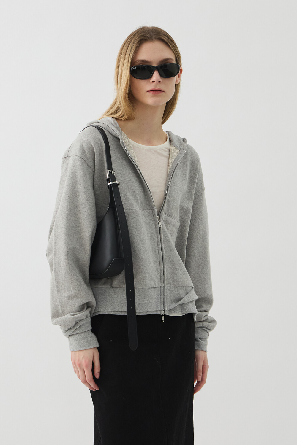 DOUBLE-RIB CROP HOODIE JACKET - MELANGE GREY (W)