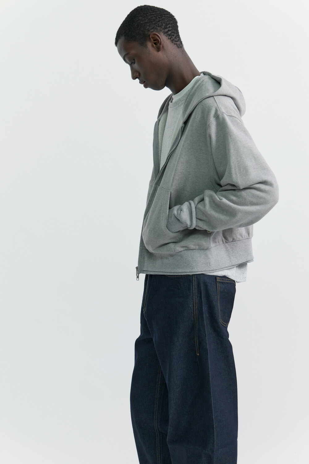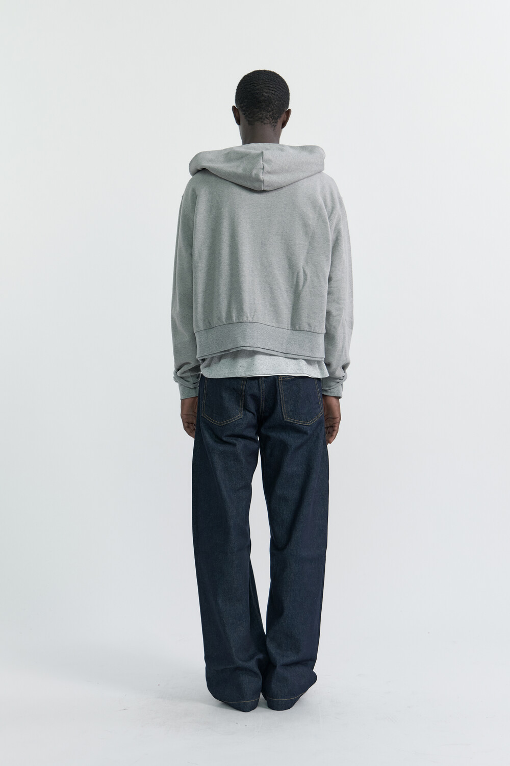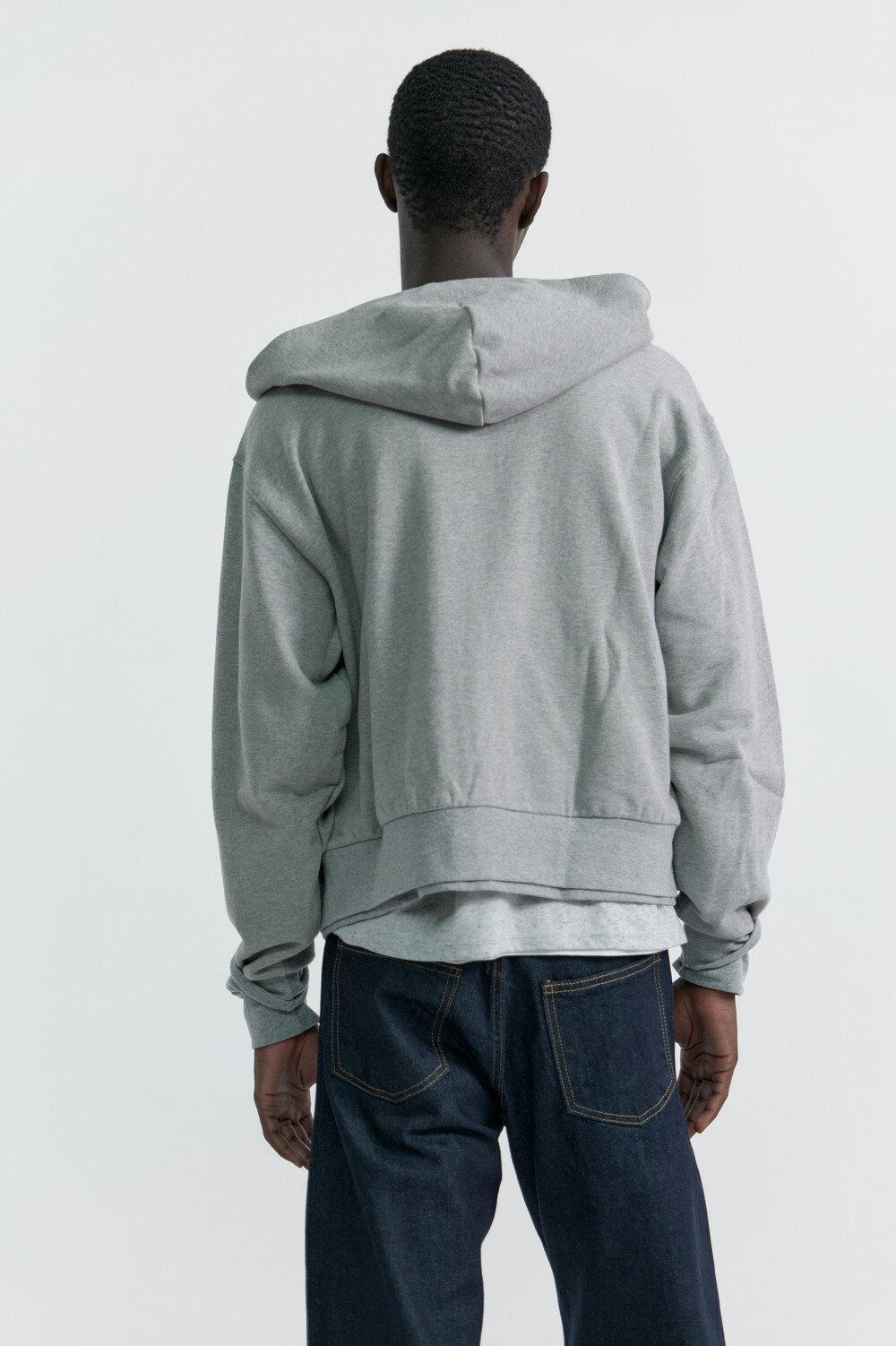 DOUBLE-RIB CROP HOODIE JACKET - MELANGE GREY