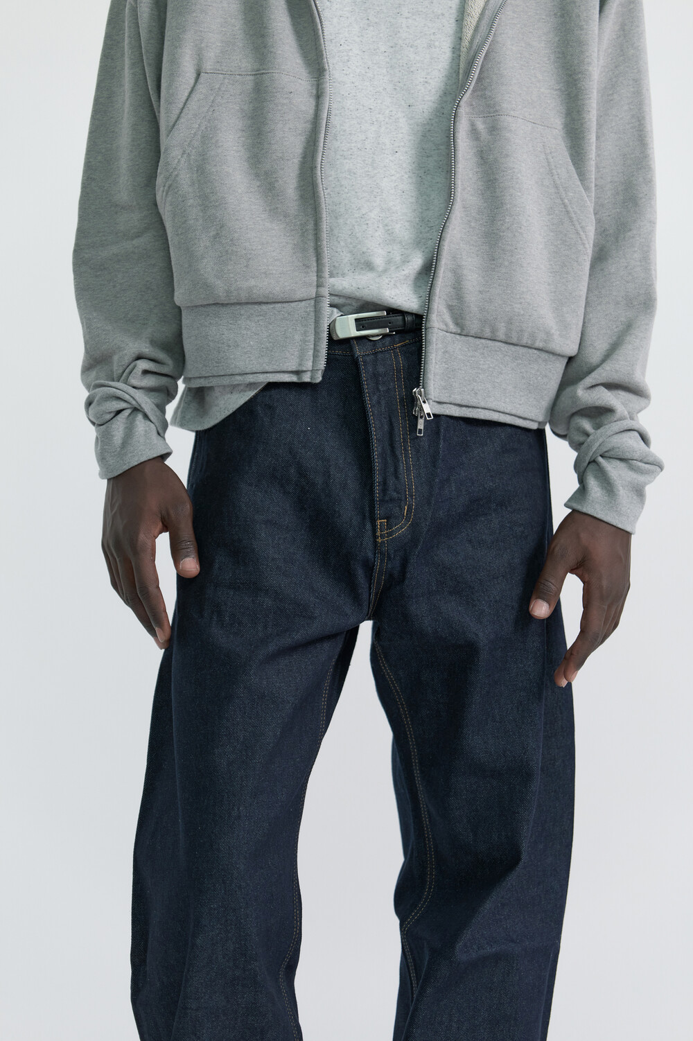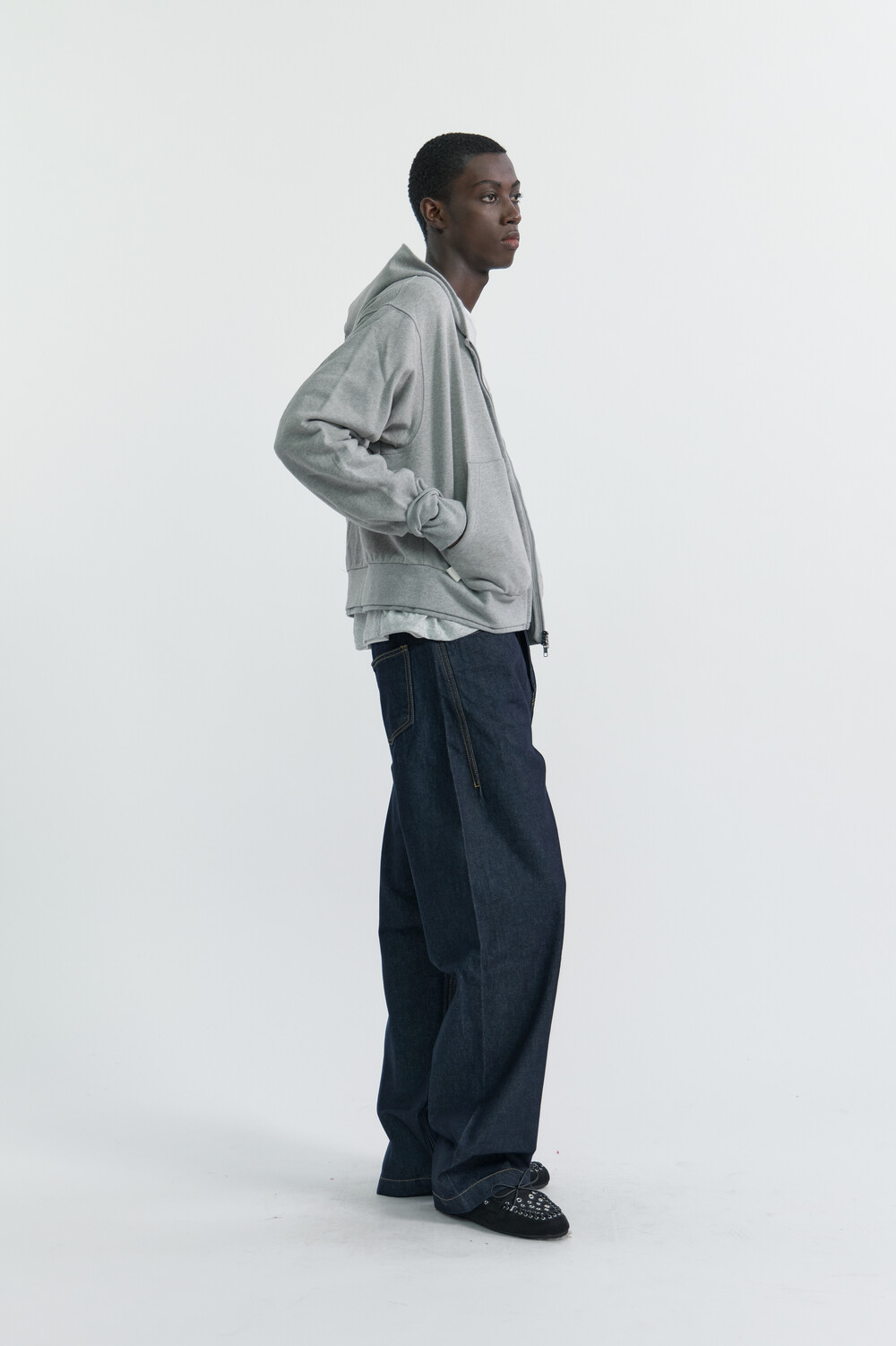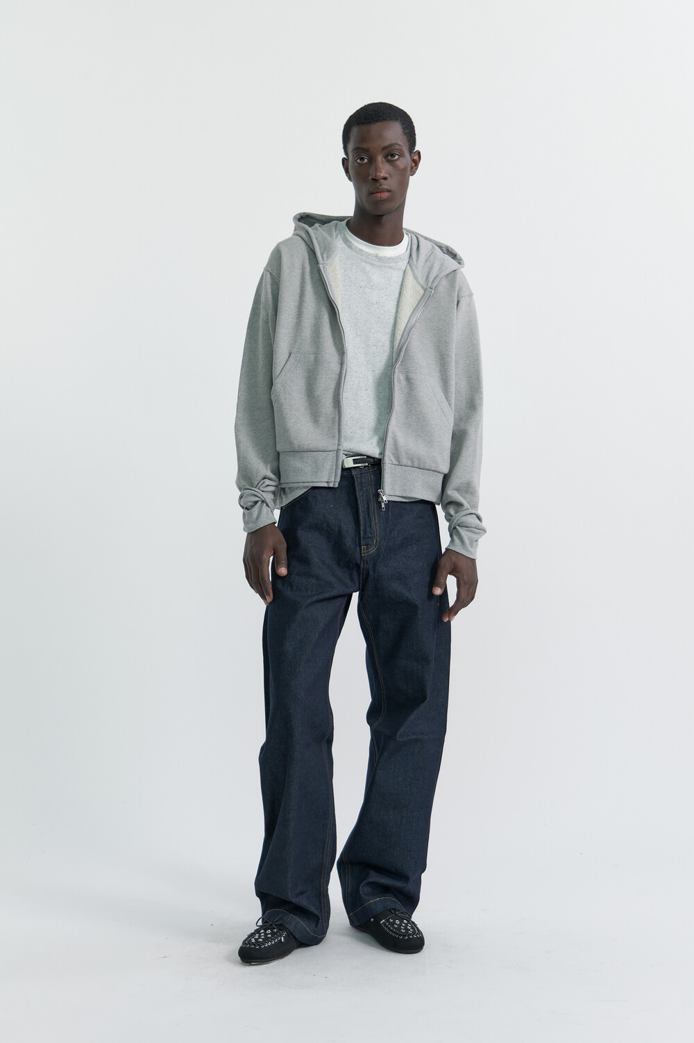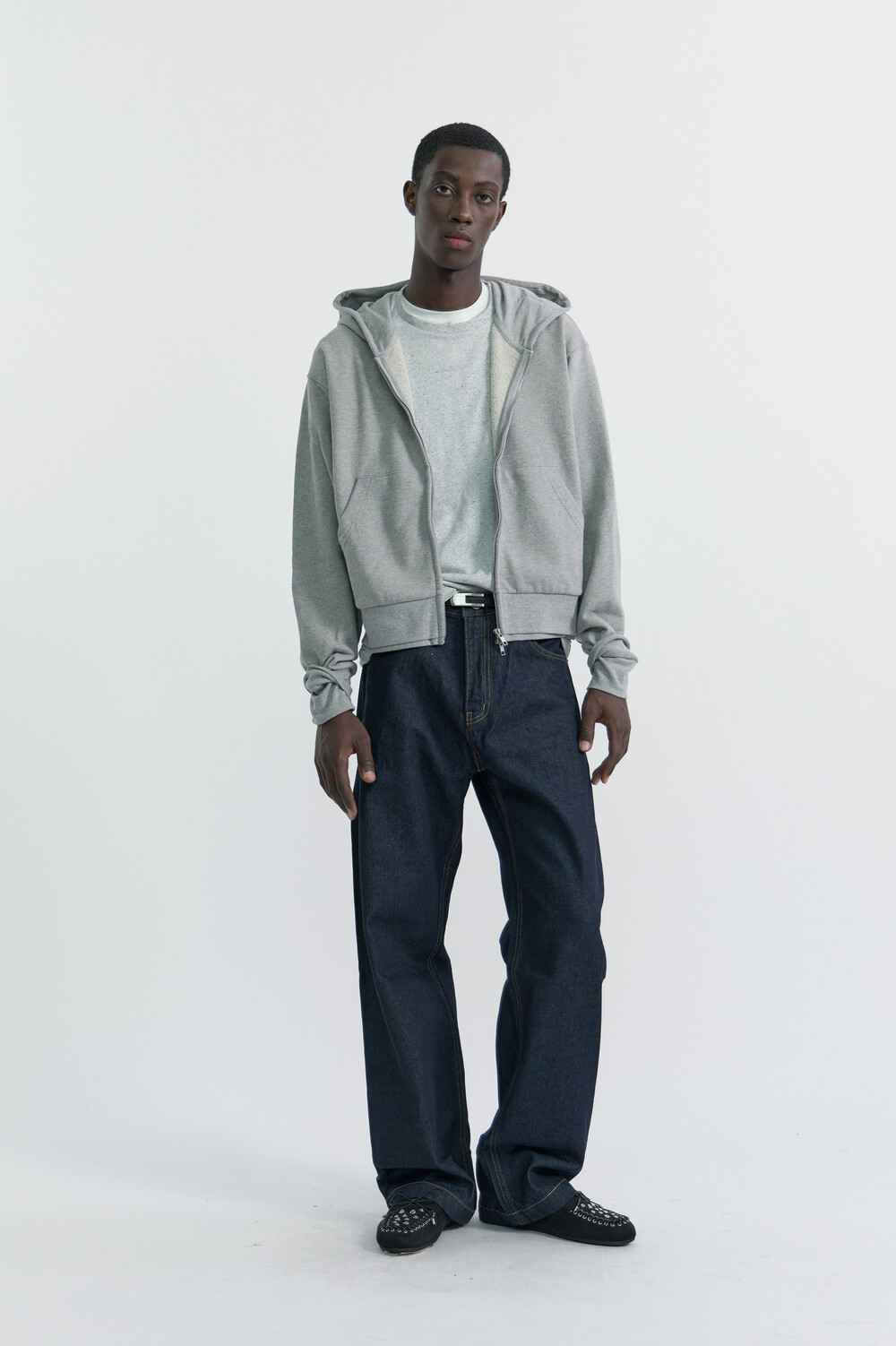 DOUBLE-RIB CROP HOODIE JACKET - MELANGE GREY