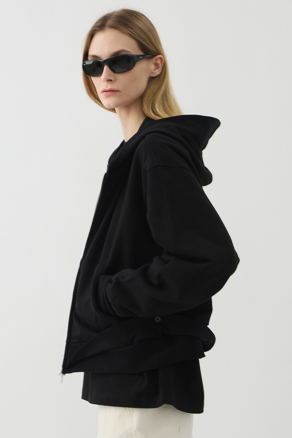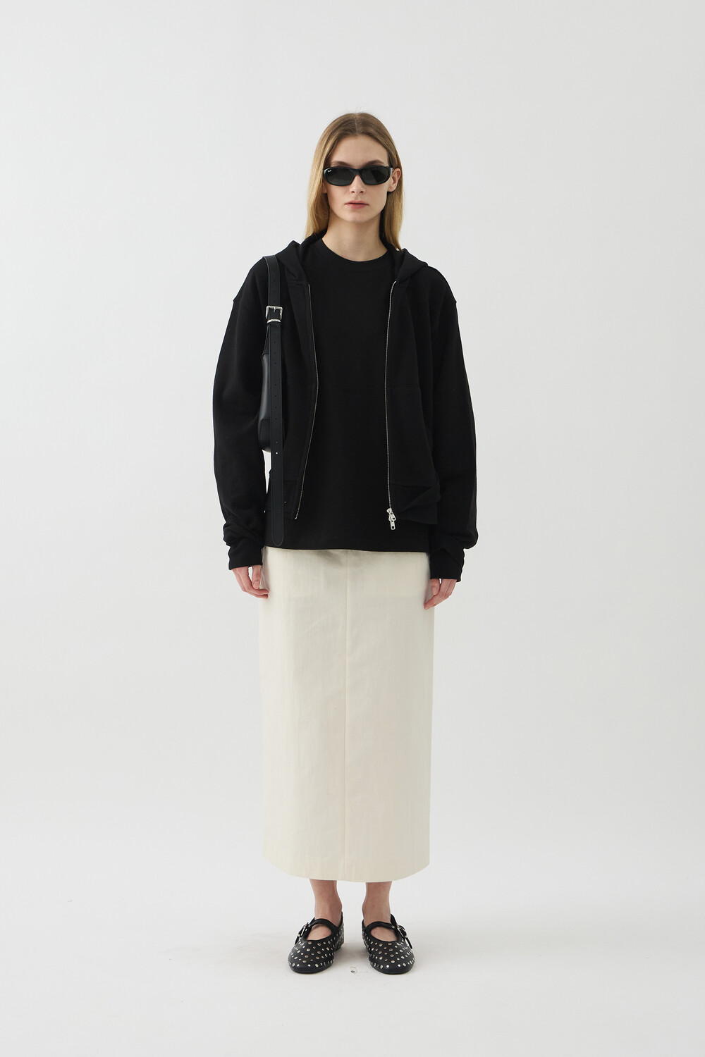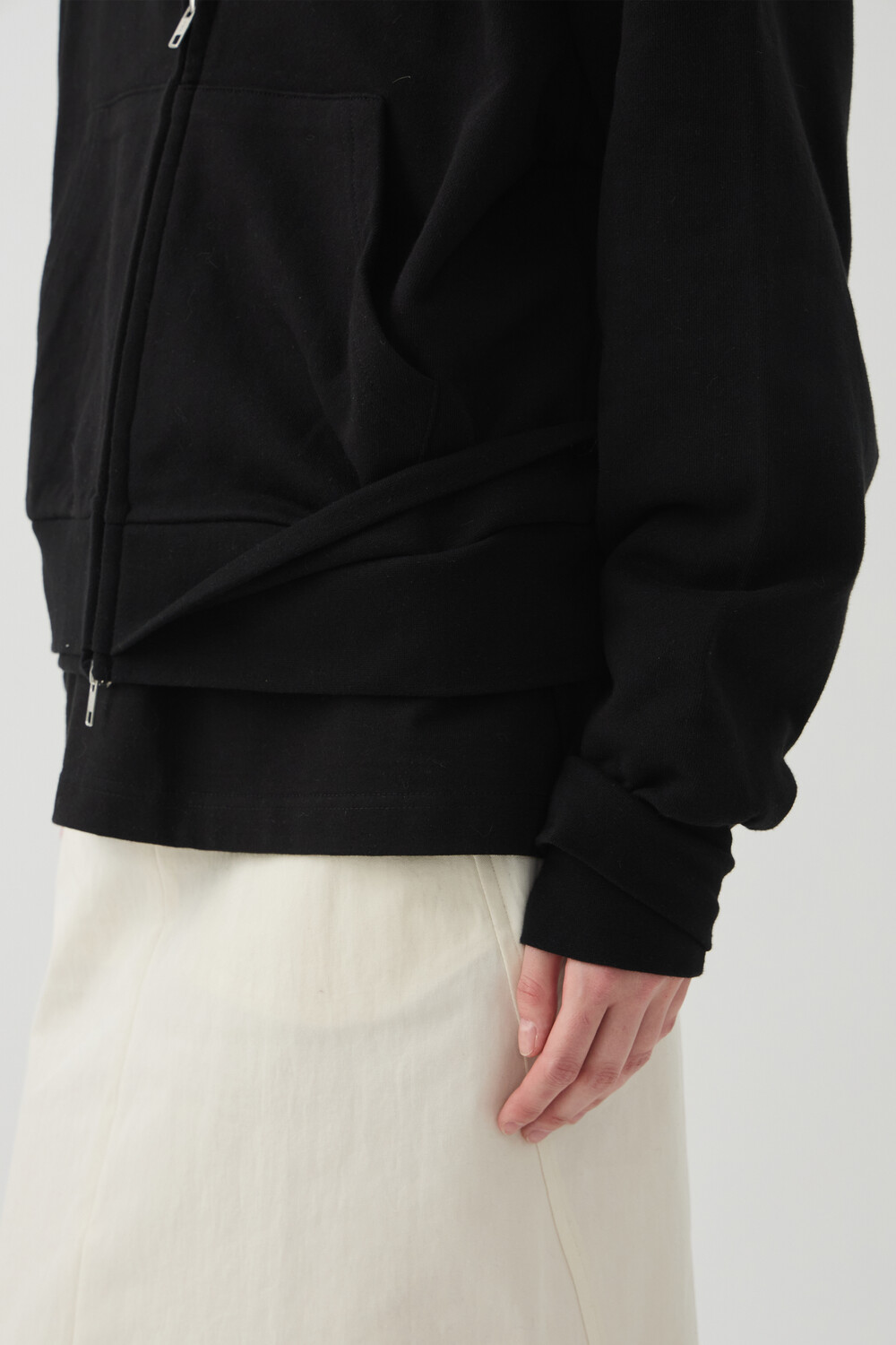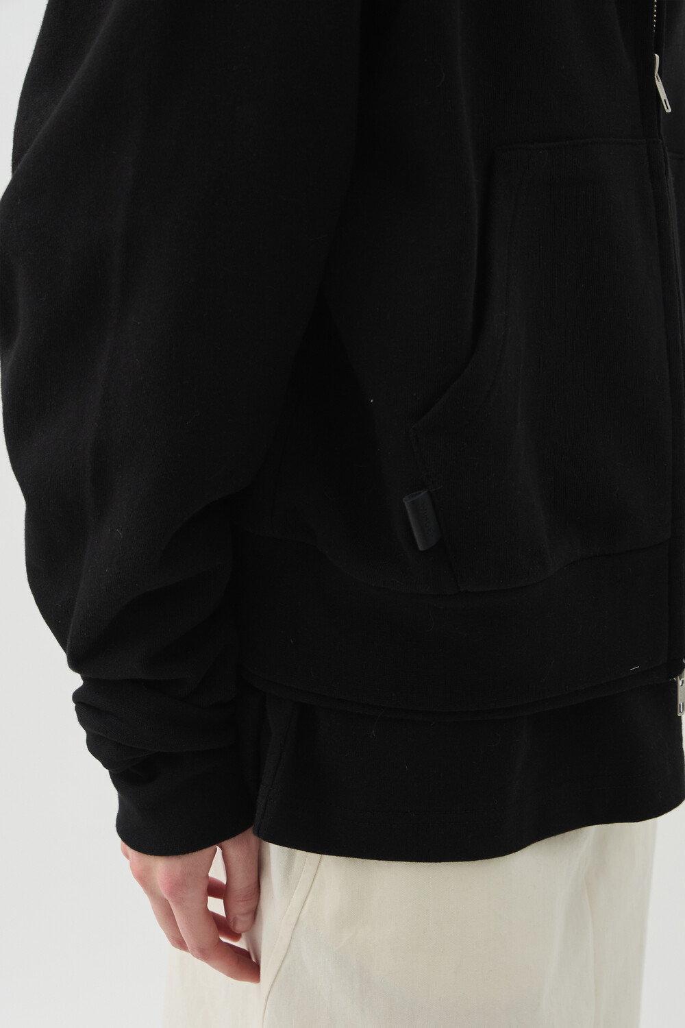 DOUBLE-RIB CROP HOODIE JACKET - BLACK (W)