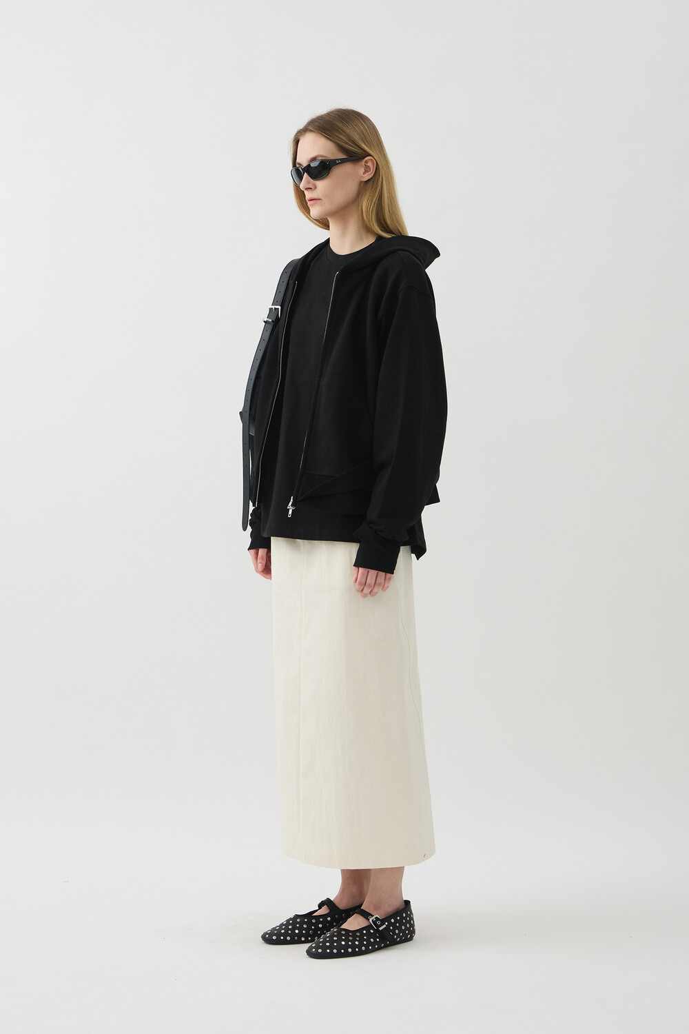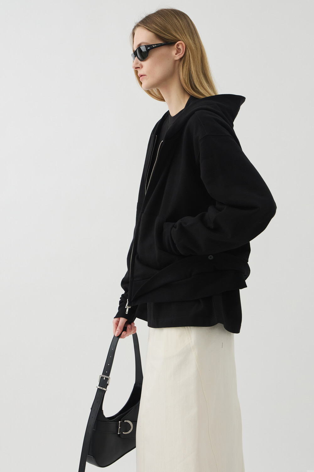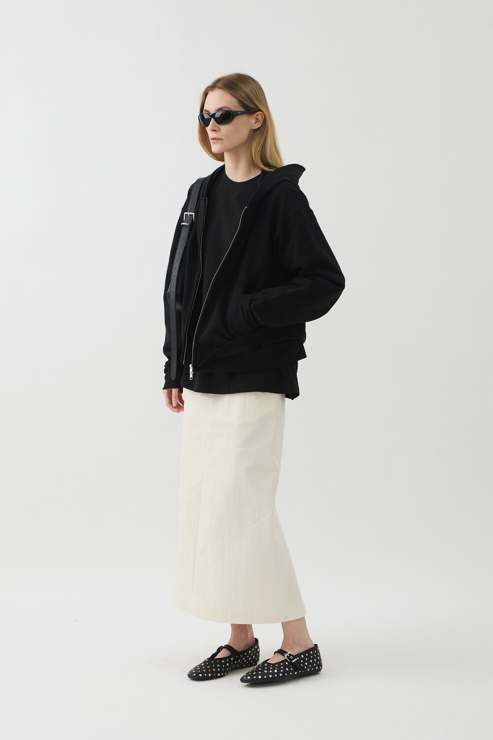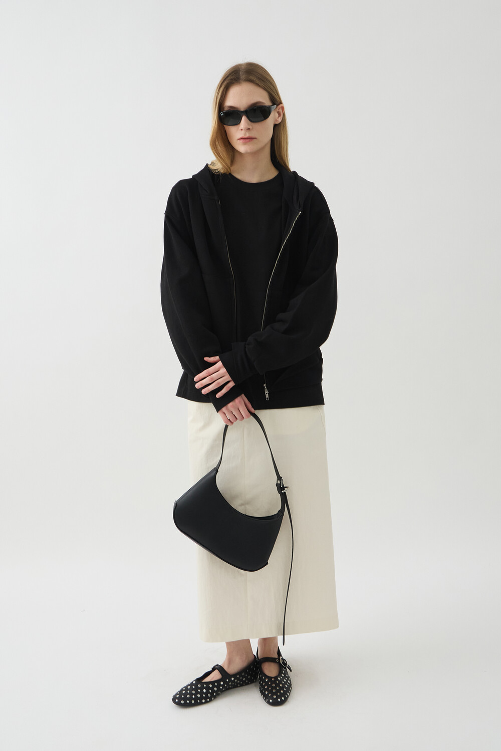 DOUBLE-RIB CROP HOODIE JACKET - BLACK (W)
