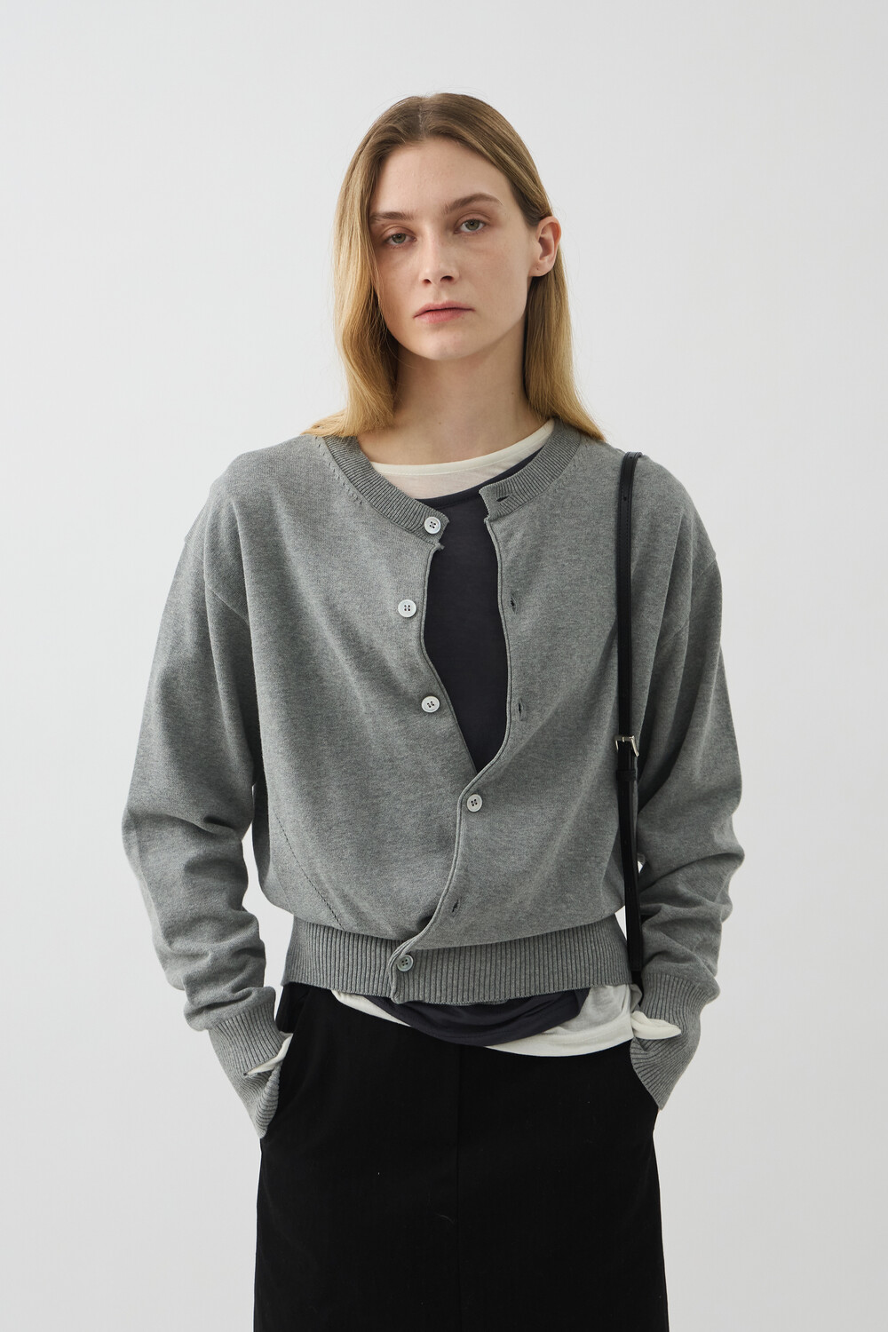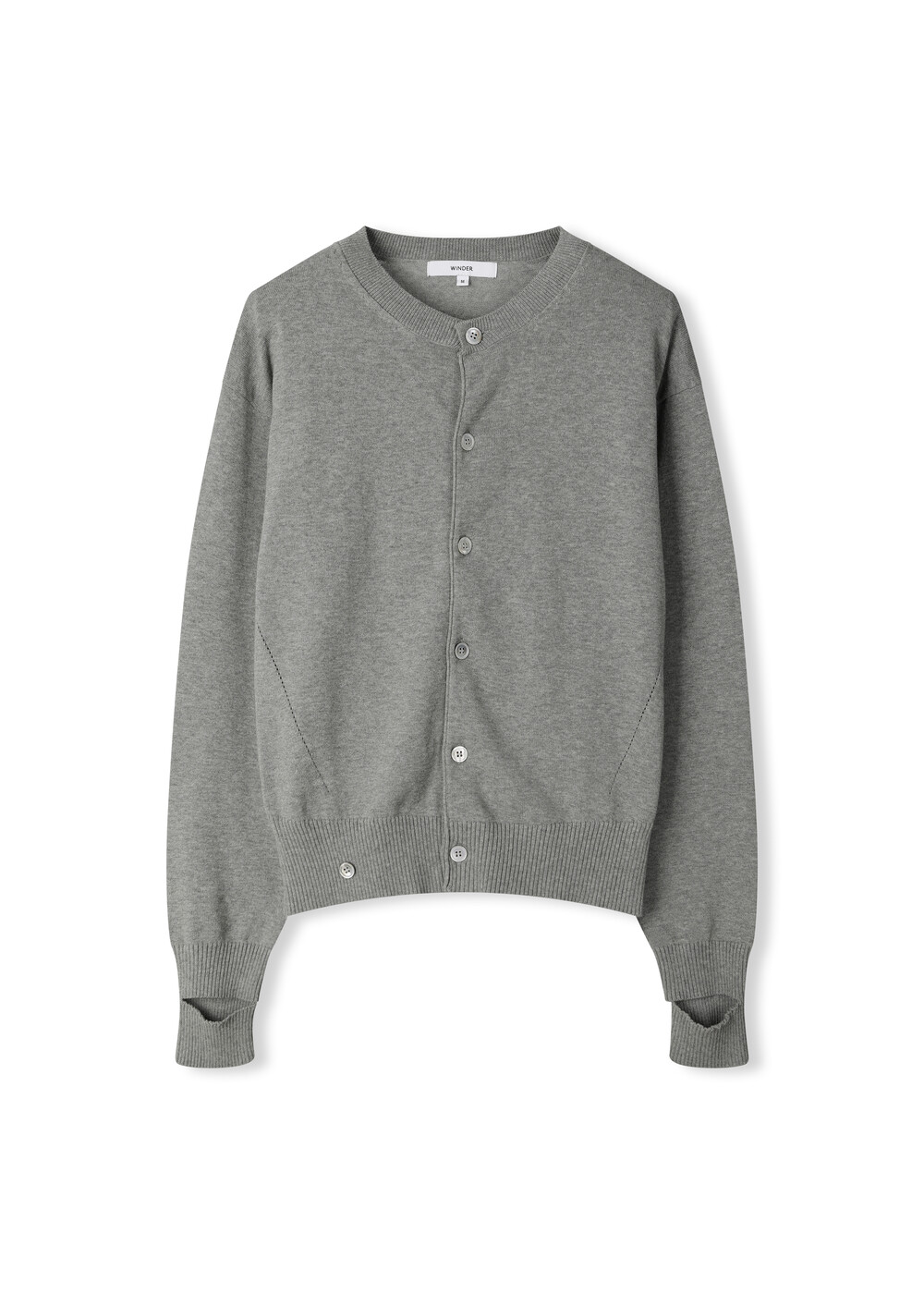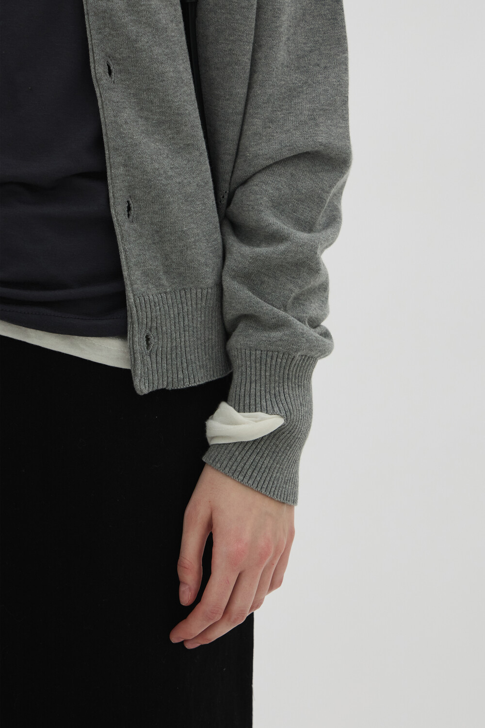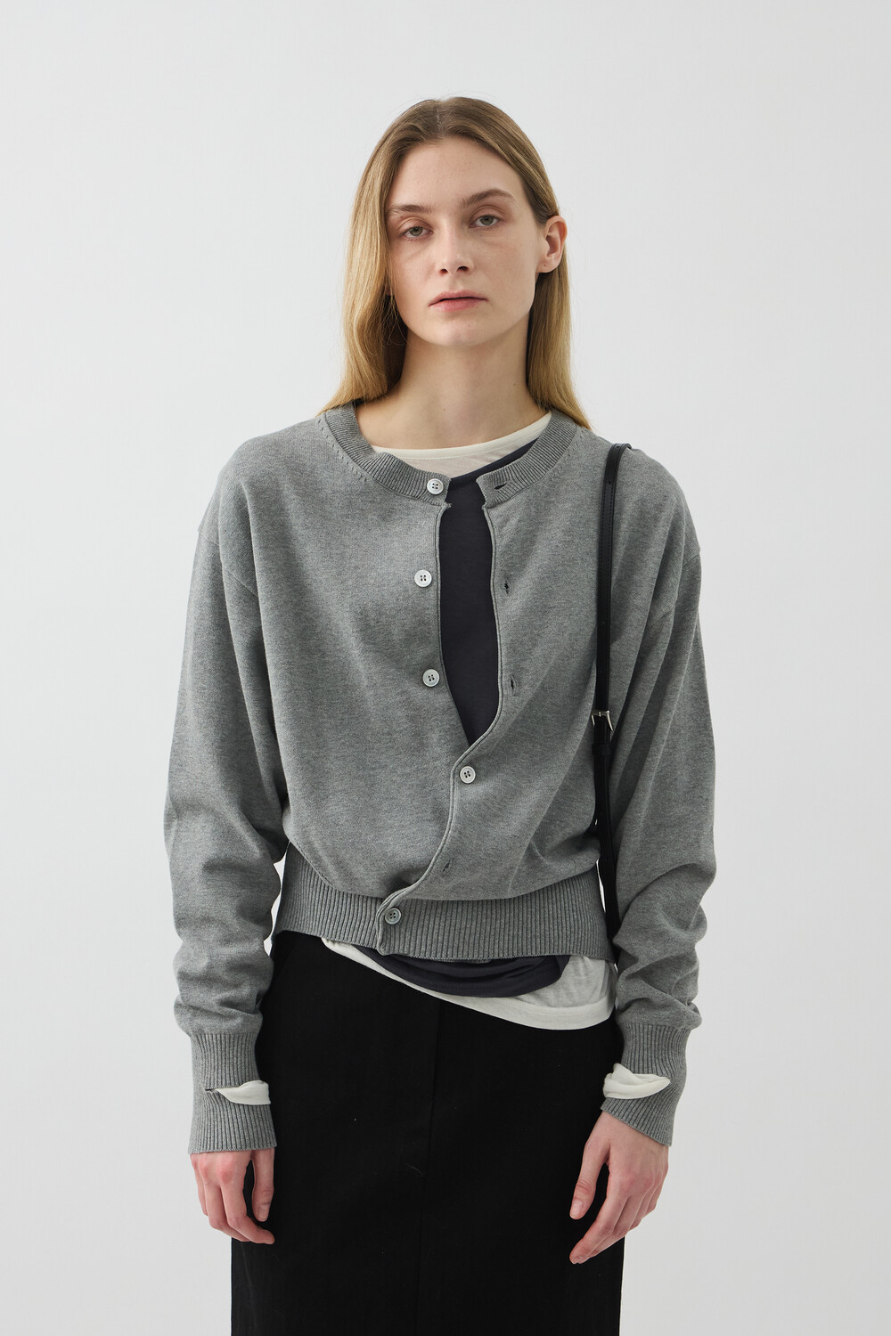 SLEEVE-CUT FINE COTTON CARDIGAN - MELANGE GREY (W)