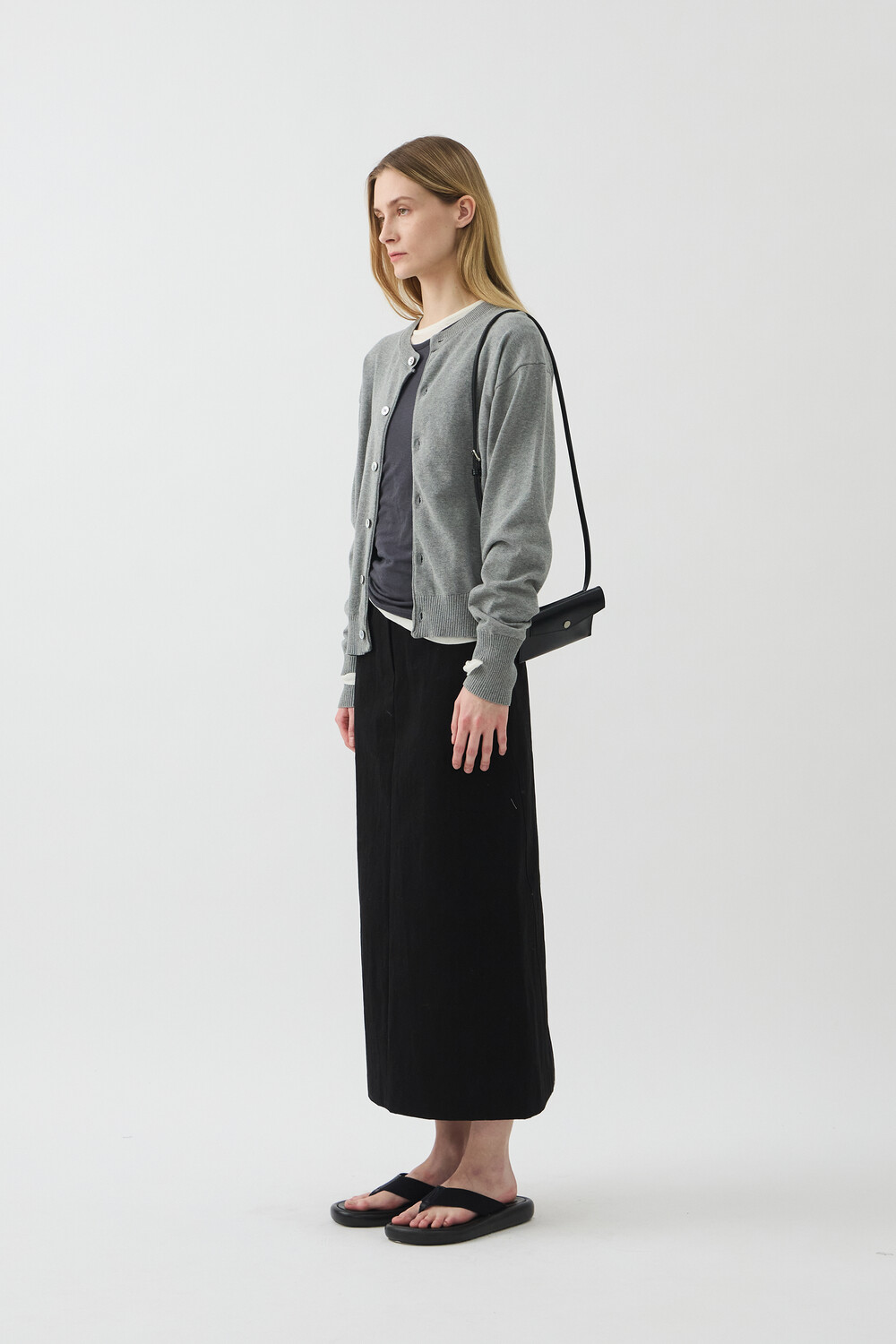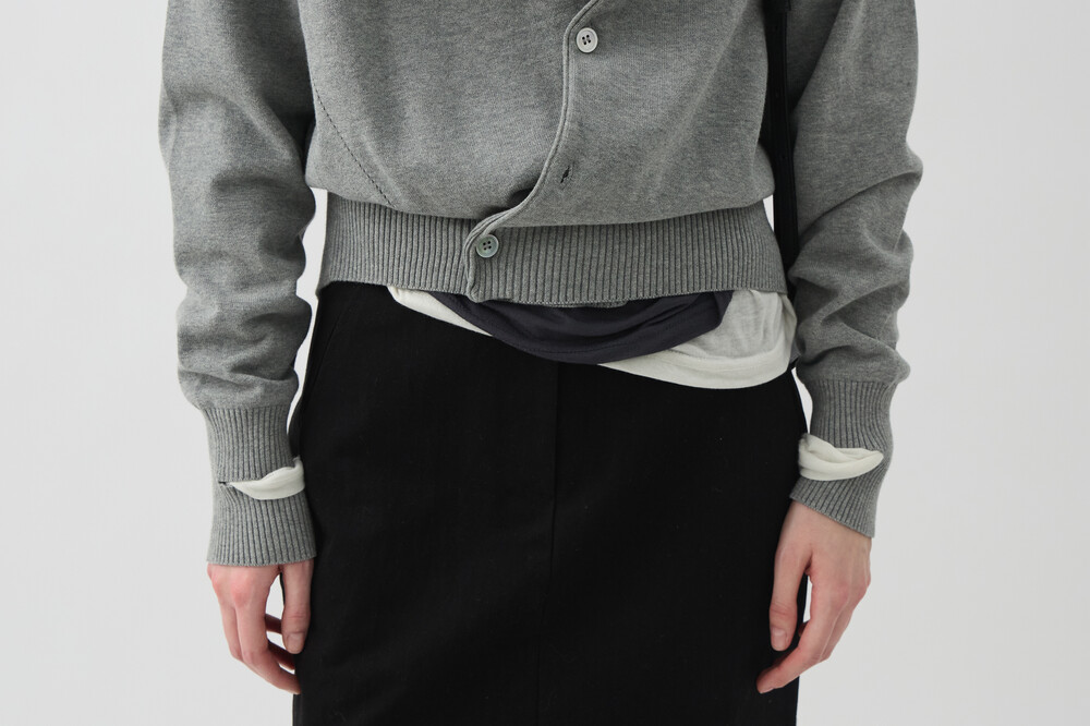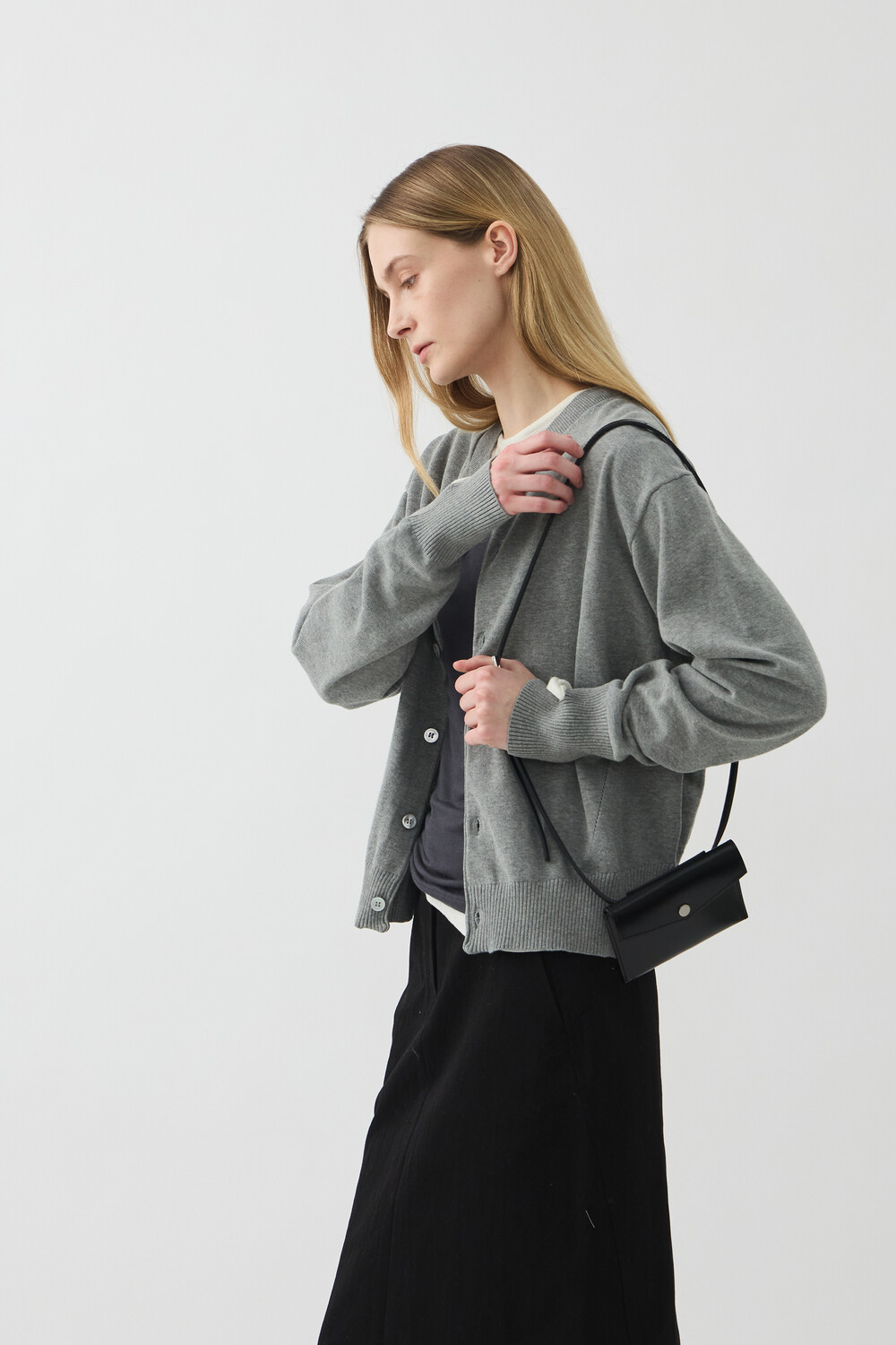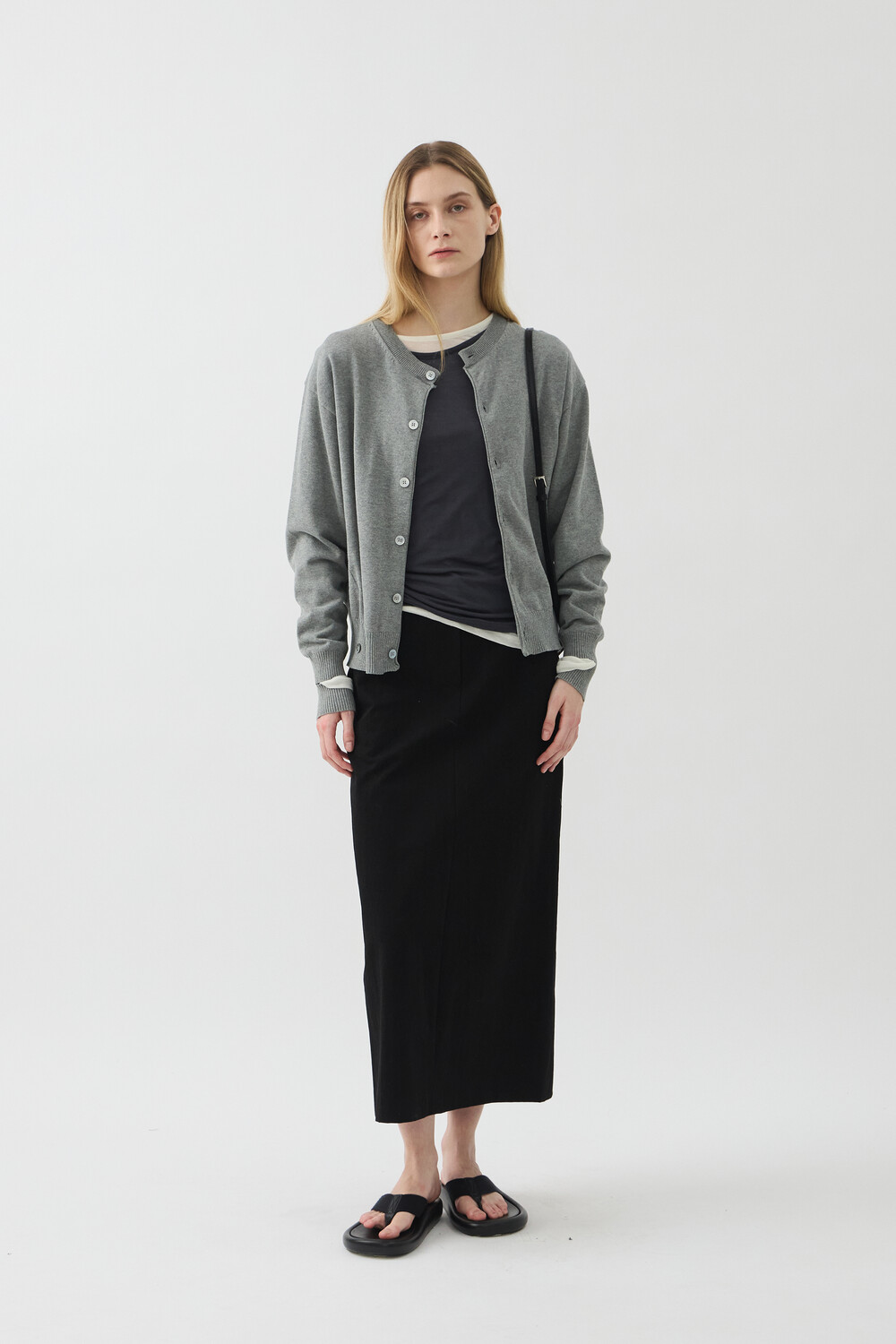 SLEEVE-CUT FINE COTTON CARDIGAN - MELANGE GREY (W)
