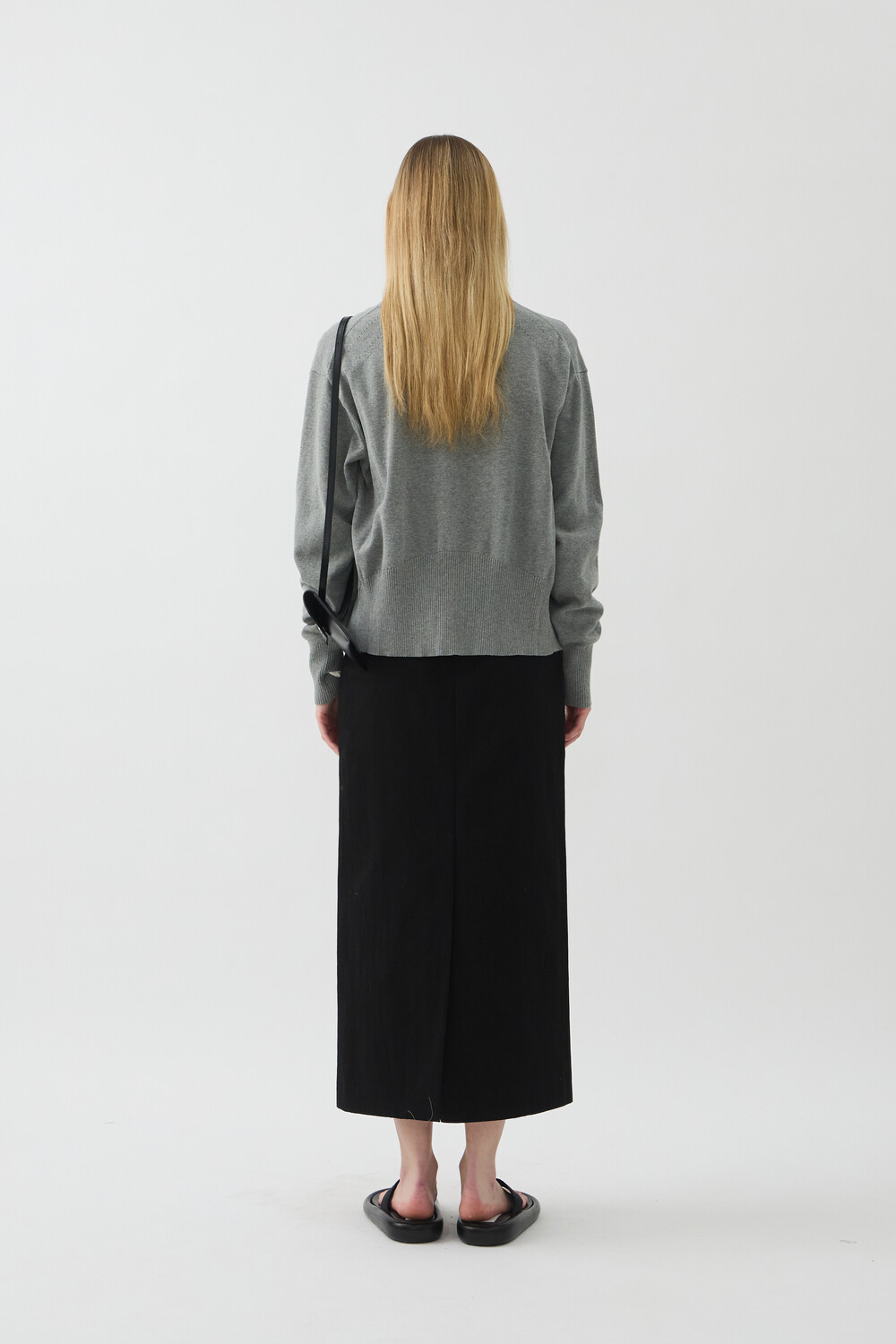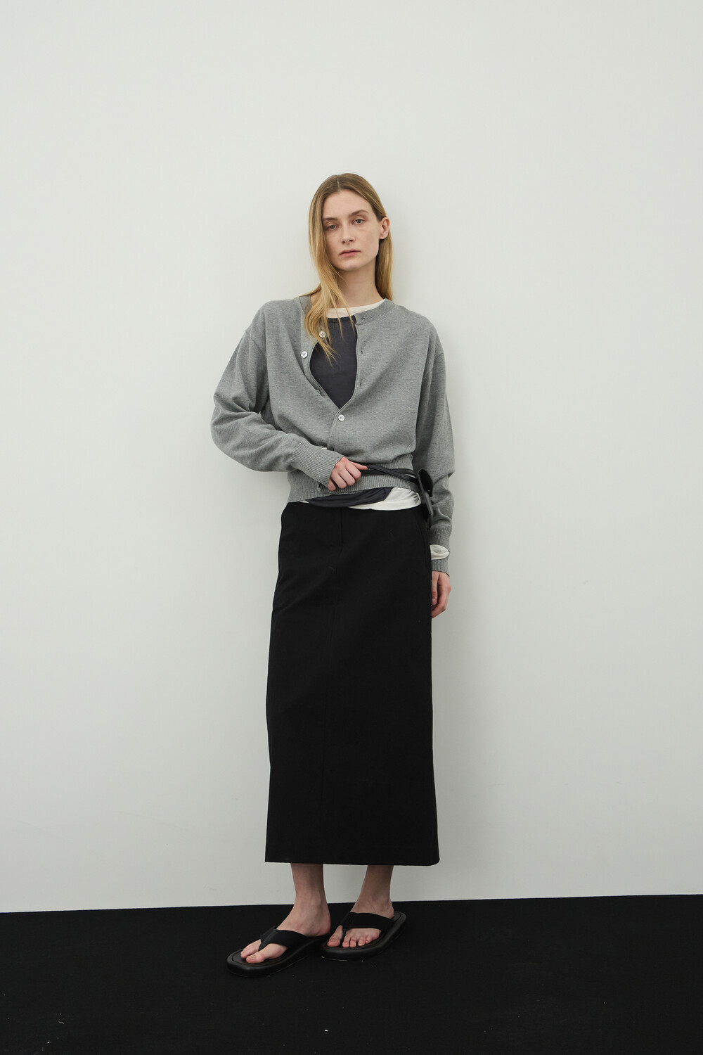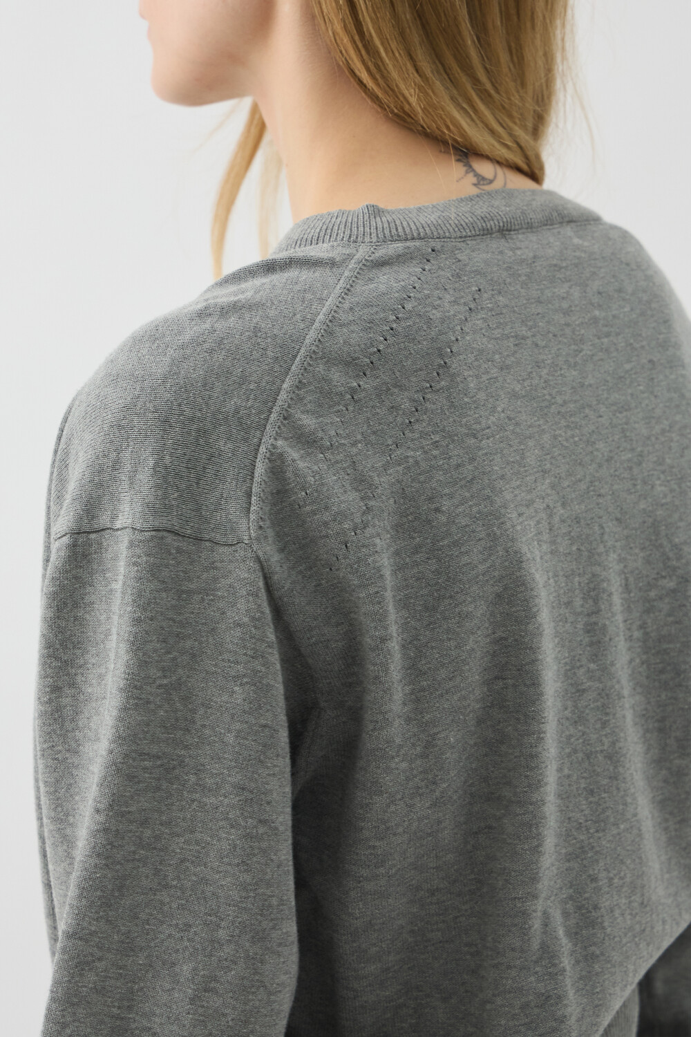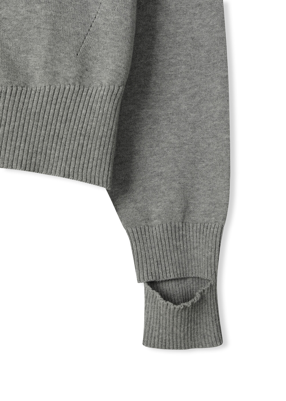 SLEEVE-CUT FINE COTTON CARDIGAN - MELANGE GREY (W)