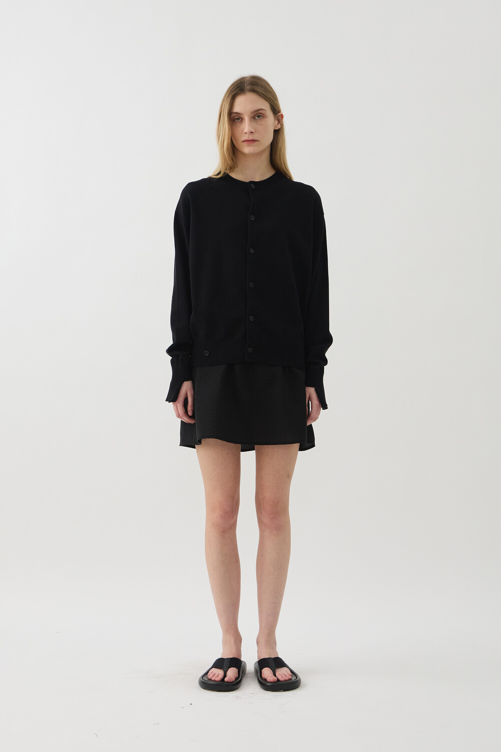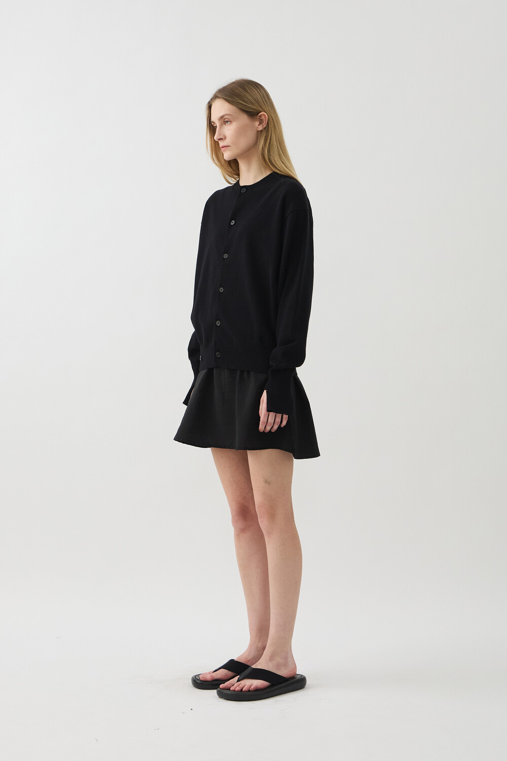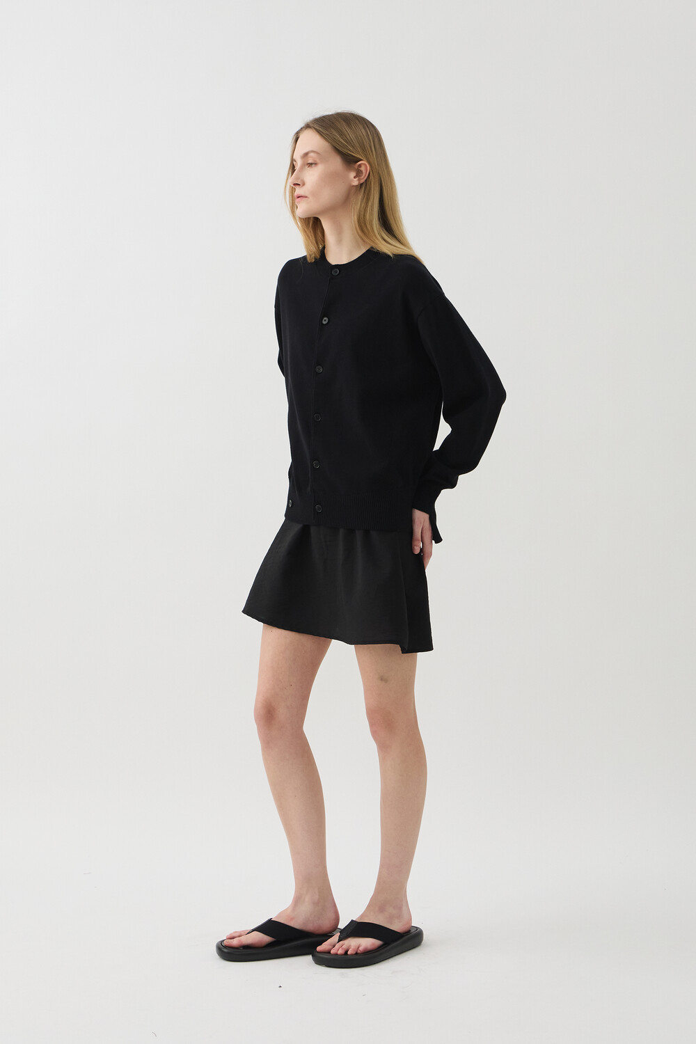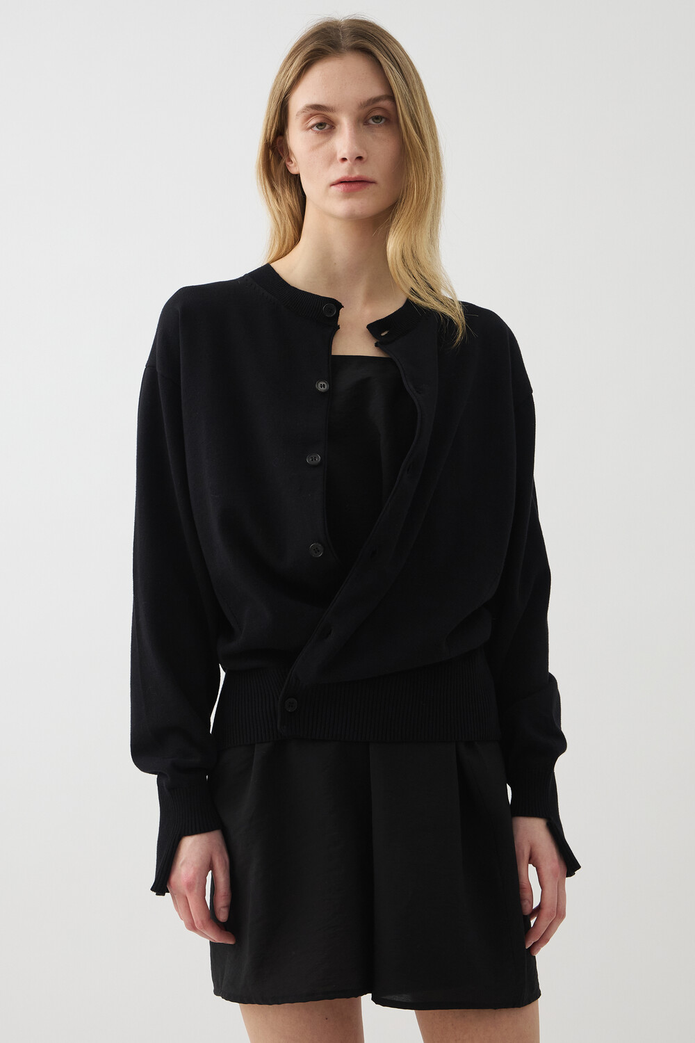 SLEEVE-CUT FINE COTTON CARDIGAN - BLACK (W)